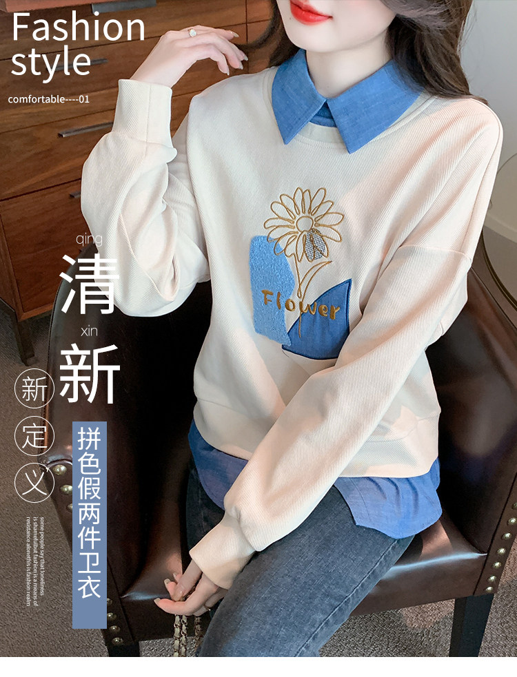 RM26010#新款卫衣/绒衫娃娃领落肩袖简约韩版套头休闲