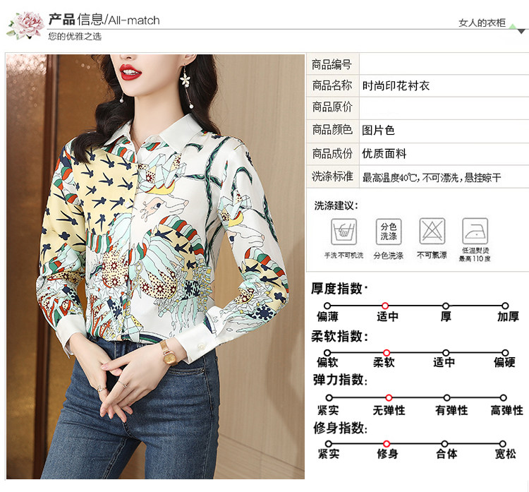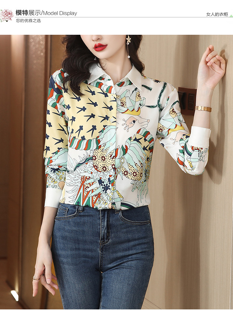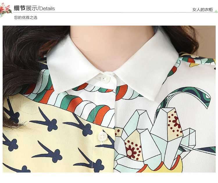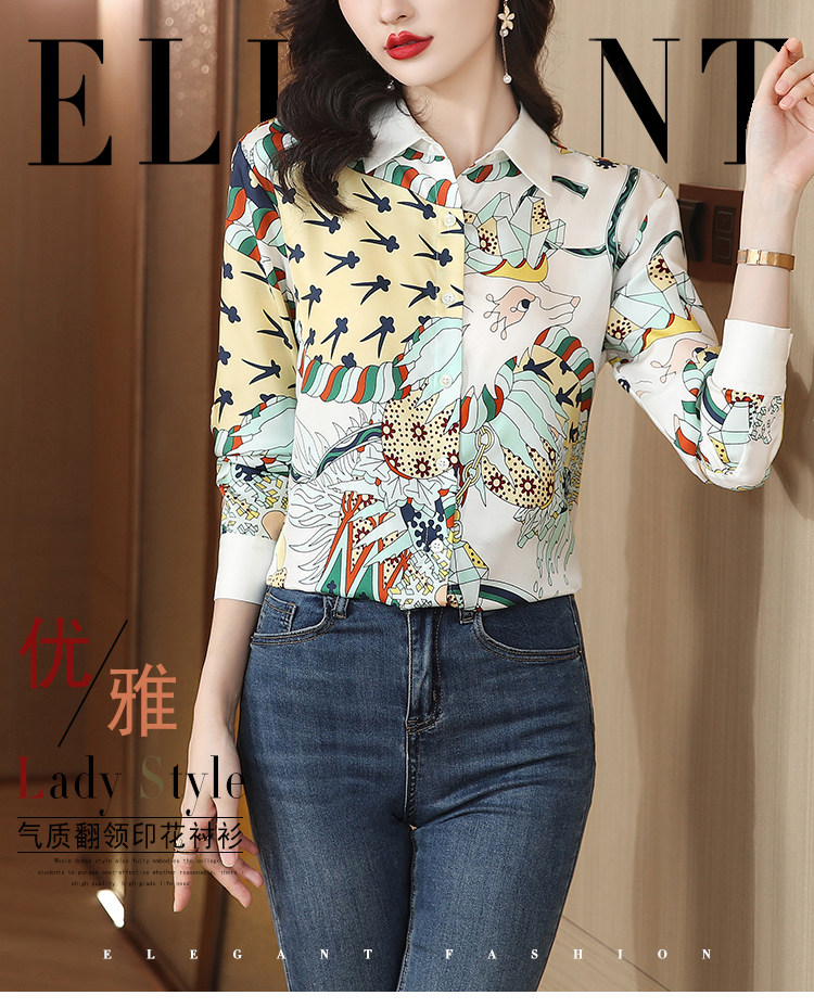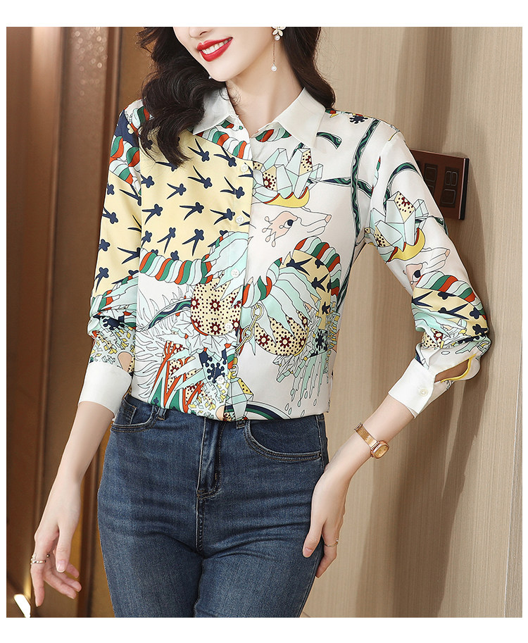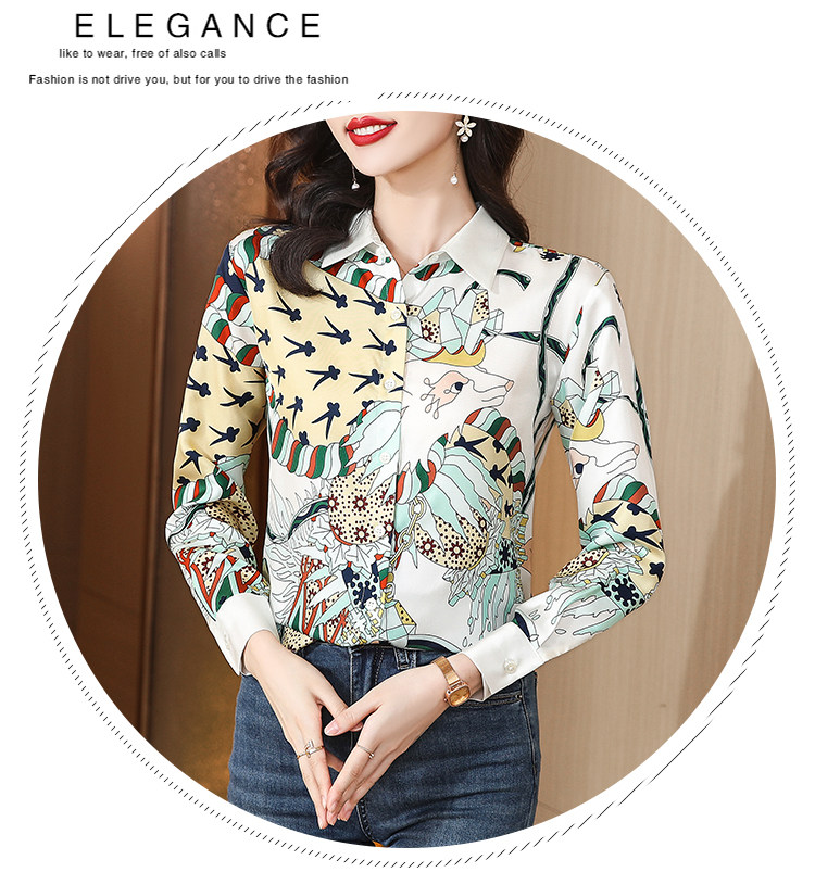 PF21803#新款印花重磅真丝长袖POLO领女士通勤显瘦桑蚕丝OL衬衫女...