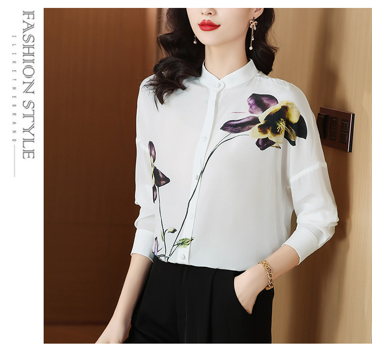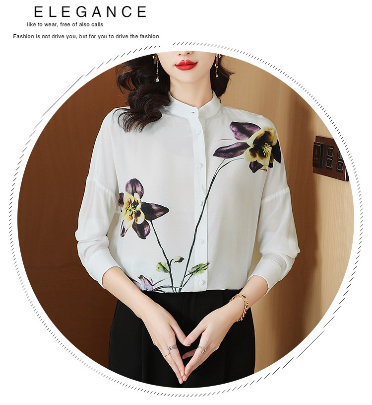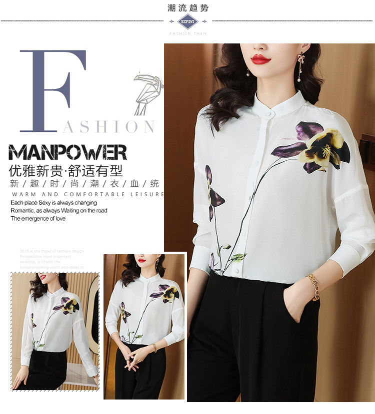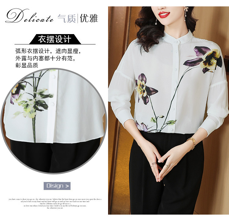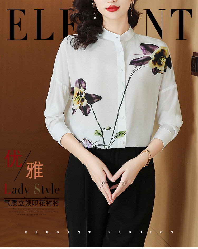 RM26026#高级有品位~立领包扣定位印花重磅真丝衬衫女桑蚕丝衬衣上衣