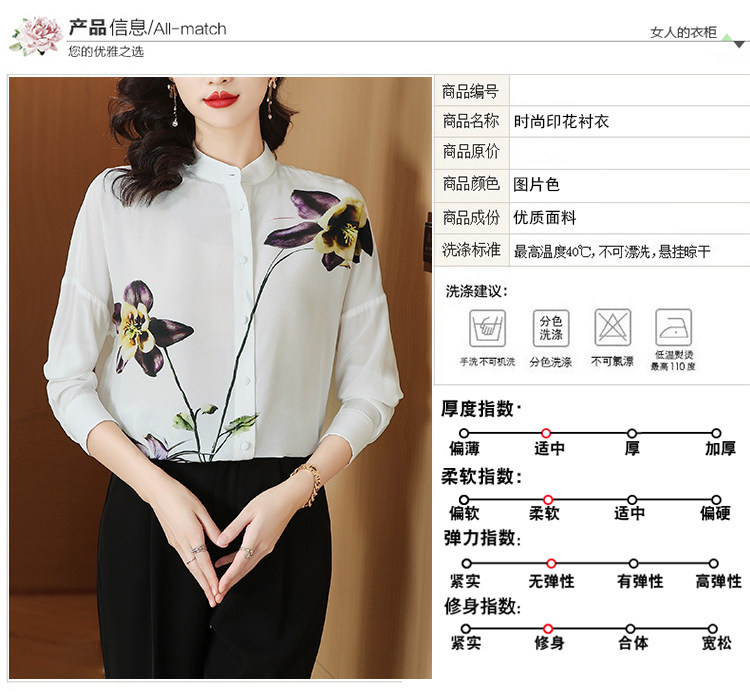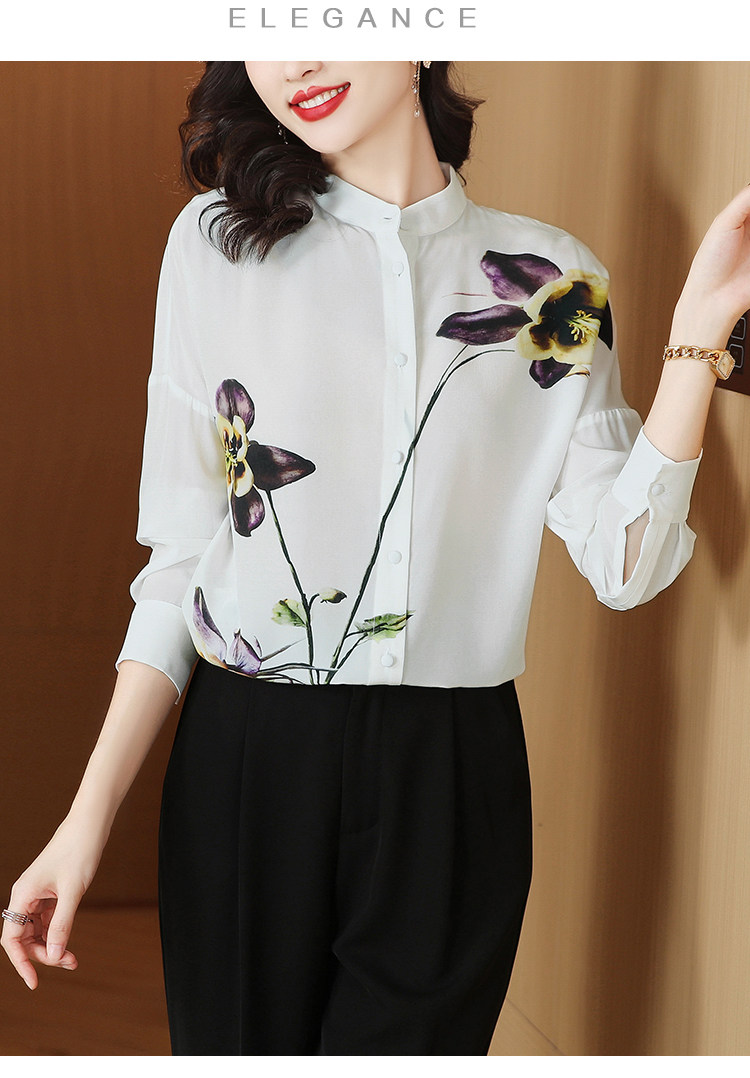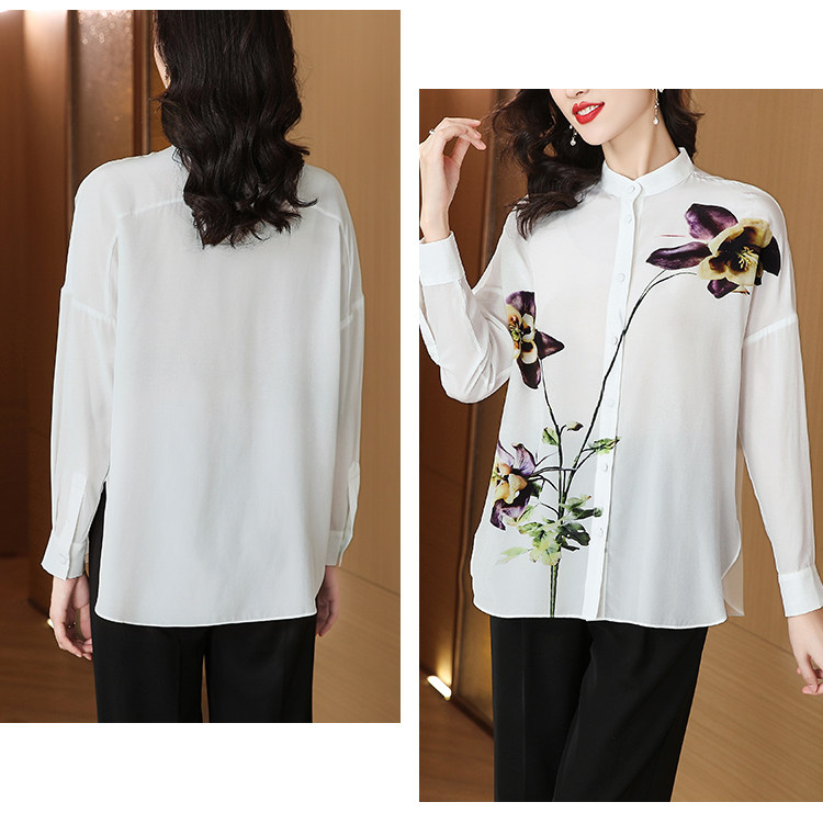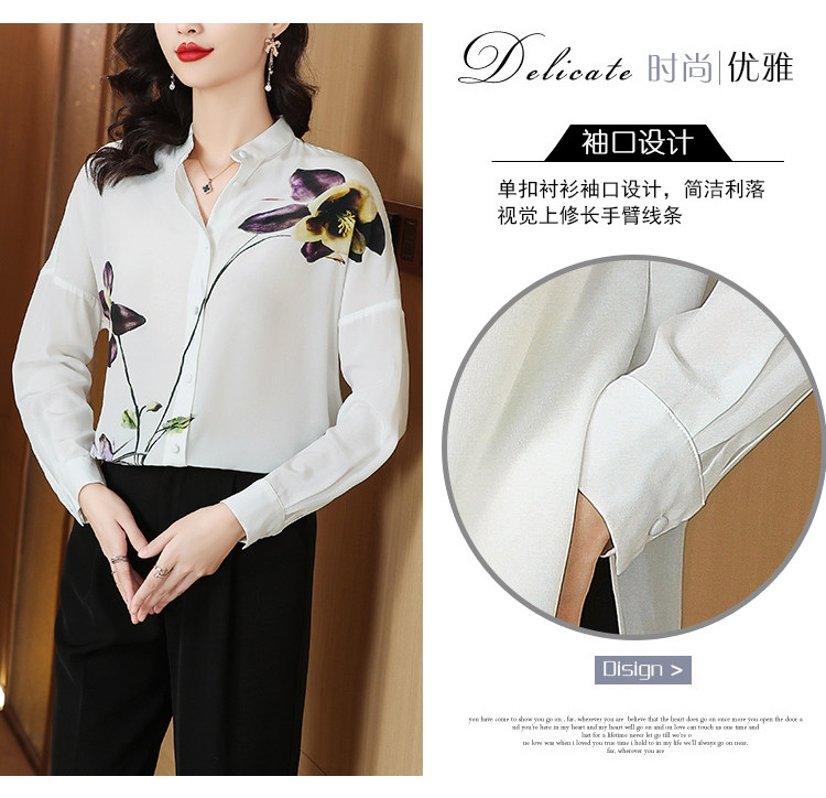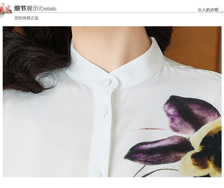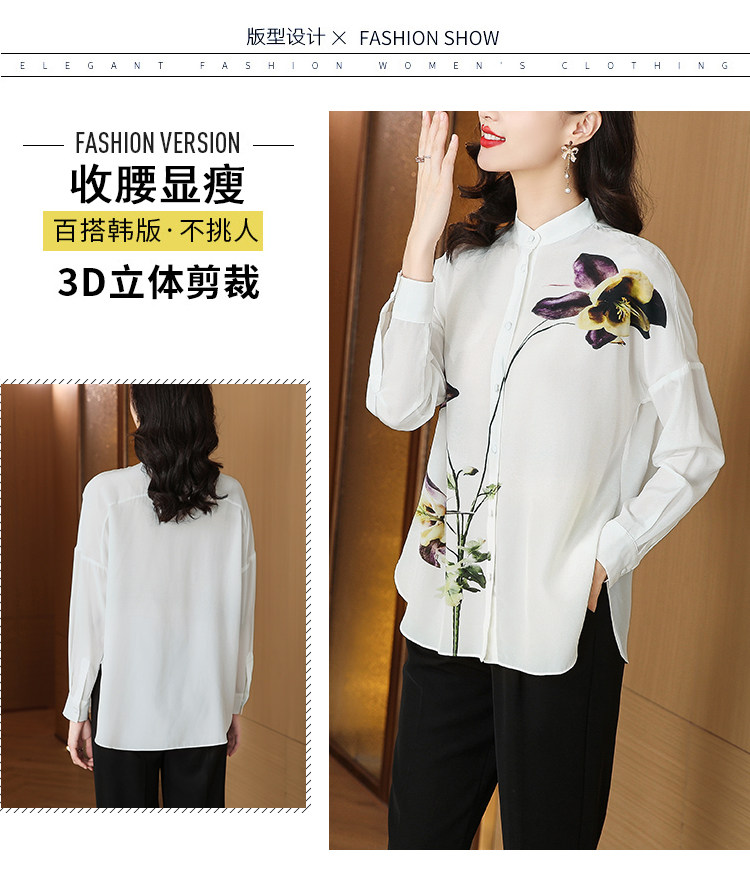 RM26026#高级有品位~立领包扣定位印花重磅真丝衬衫女桑蚕丝衬衣上衣