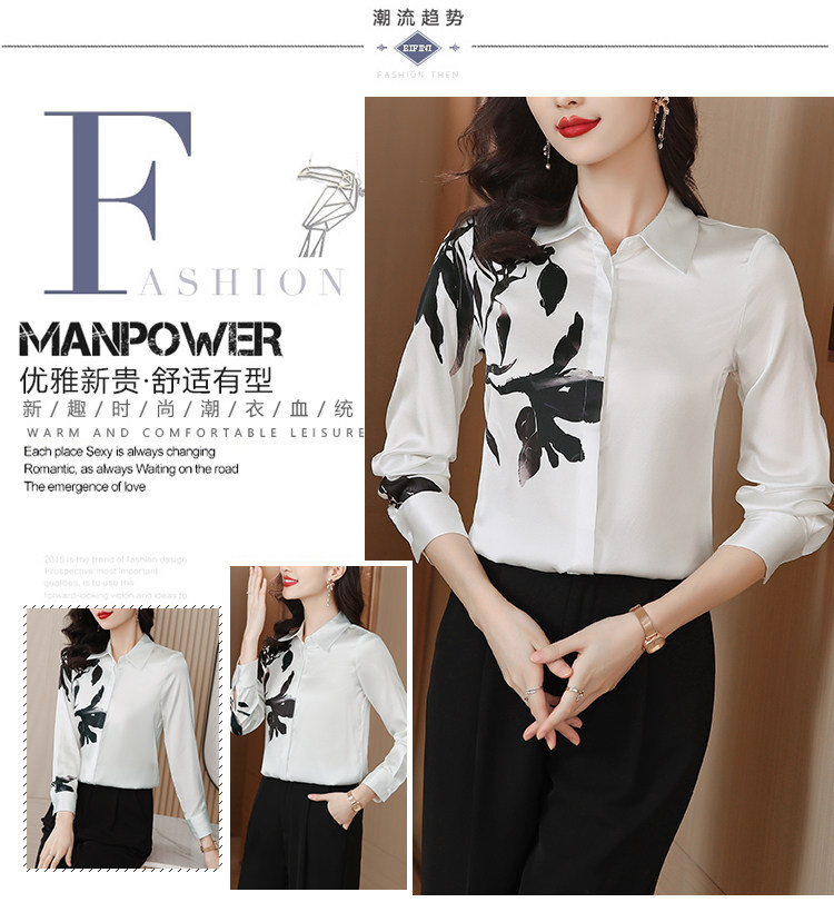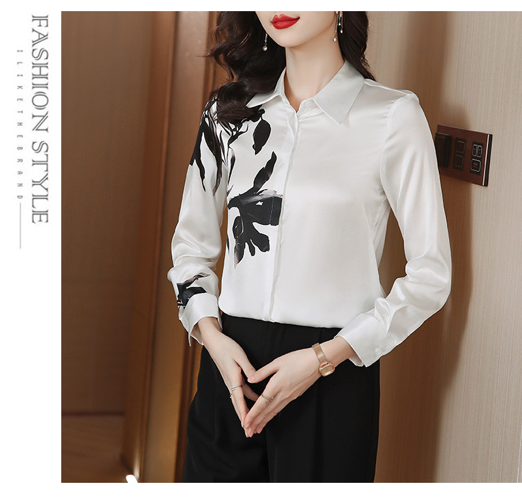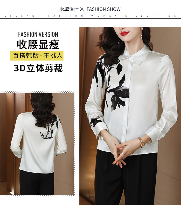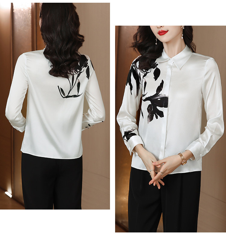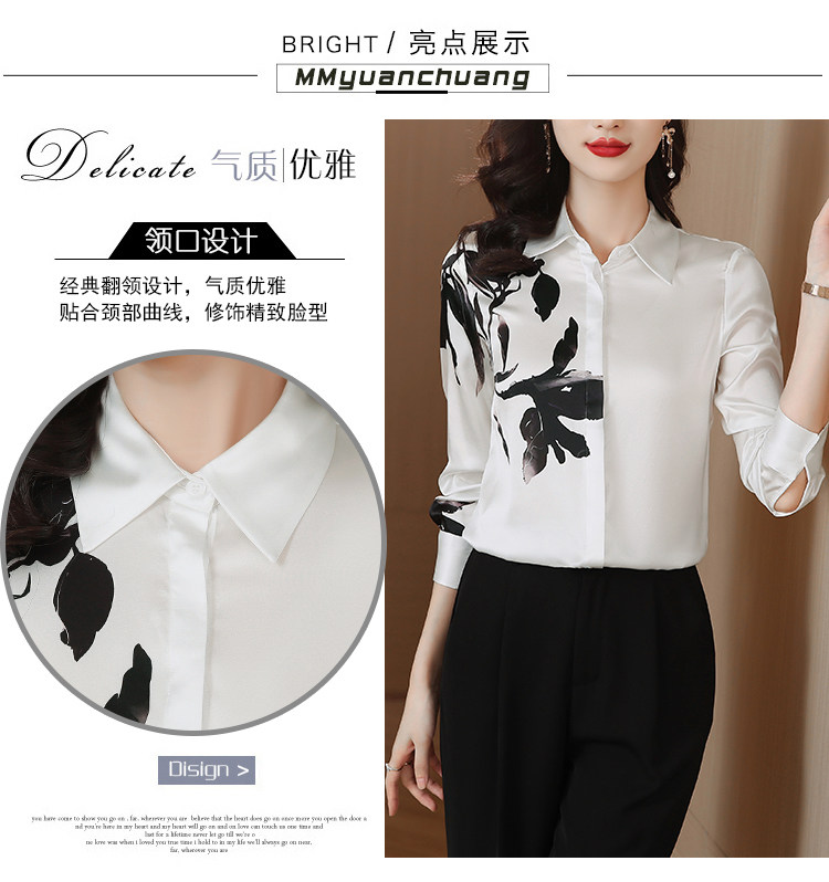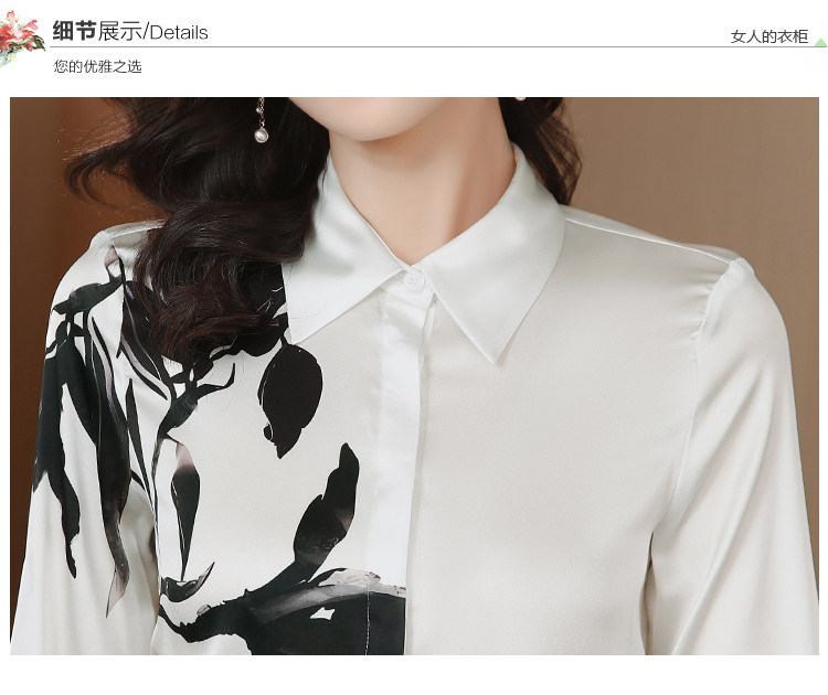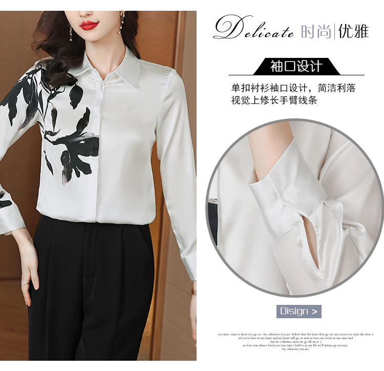 RM26027#高及有品位!重磅水墨画定位印花真丝长袖衬衫翻领上衣女