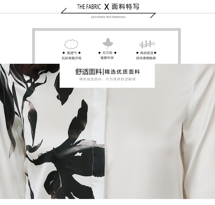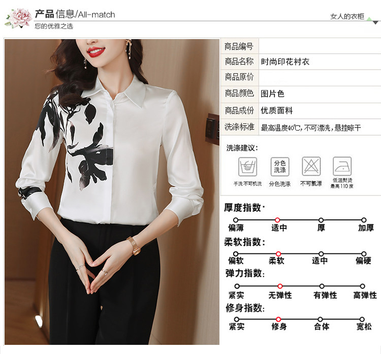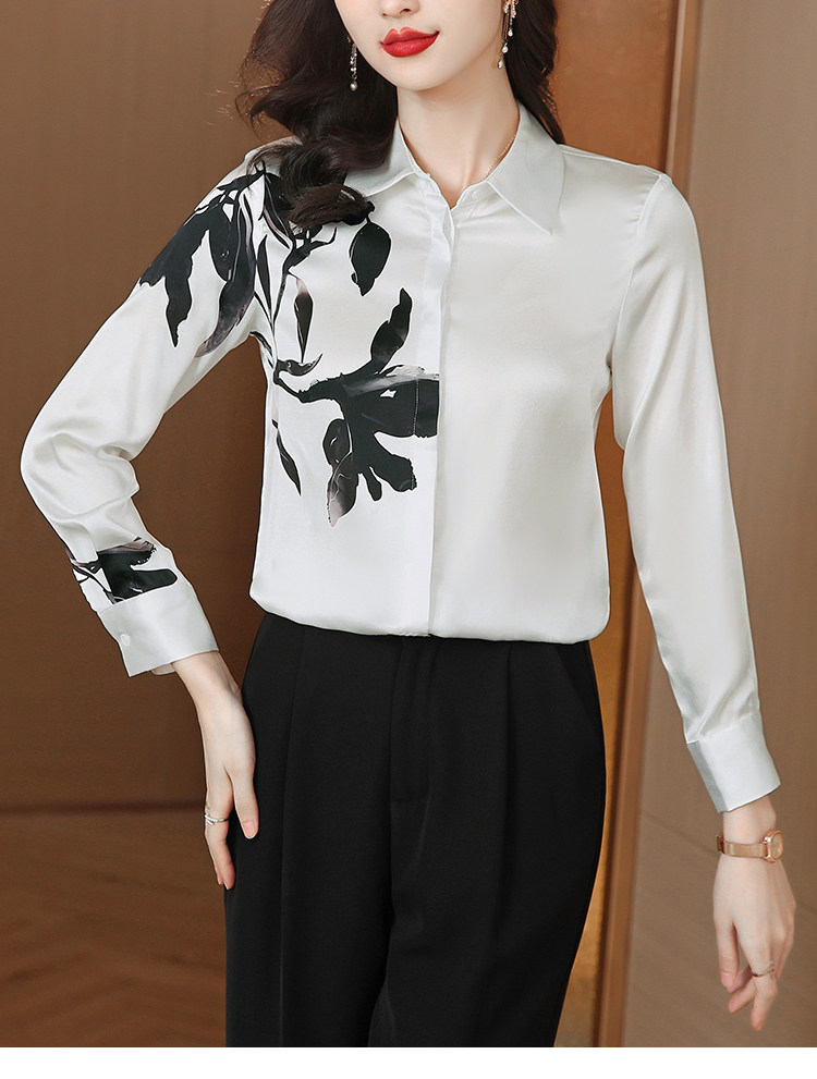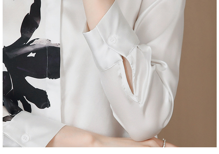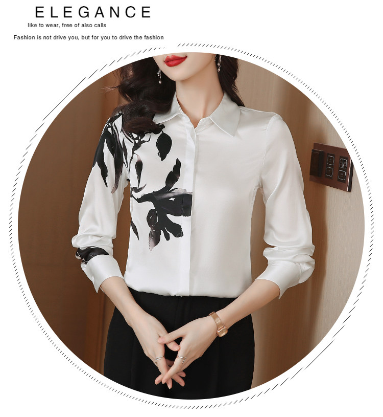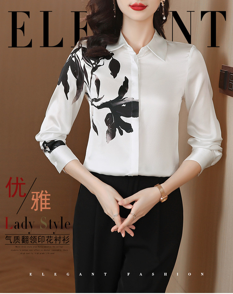 RM26027#高及有品位!重磅水墨画定位印花真丝长袖衬衫翻领上衣女