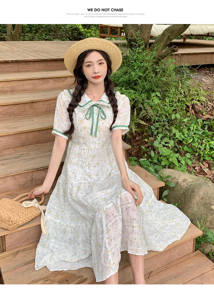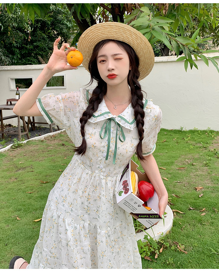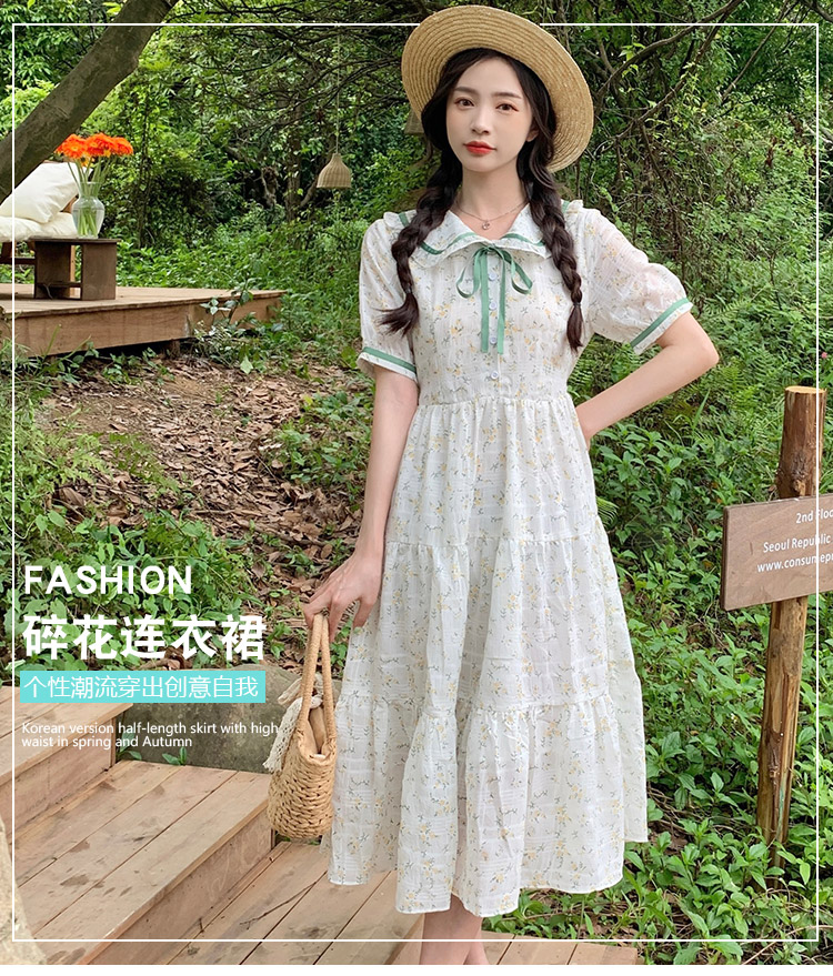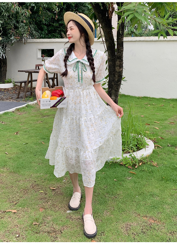 RY1900#胖女孩连衣裙夏季薄款新款洋气公主雪纺初中学生过膝