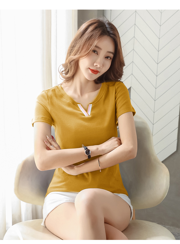 RY1901#夏季衣服女纯色v领宽松时尚短袖t恤女纯棉百搭体恤小衫