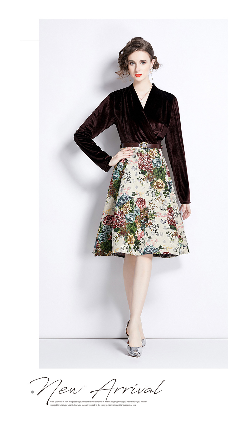 RM26371#新款法式秋冬法式高级金丝绒拼接提花大摆长裙有内衬
