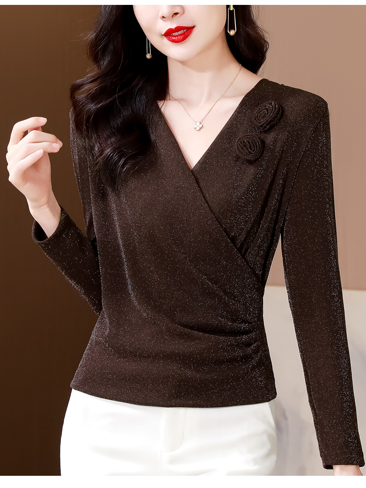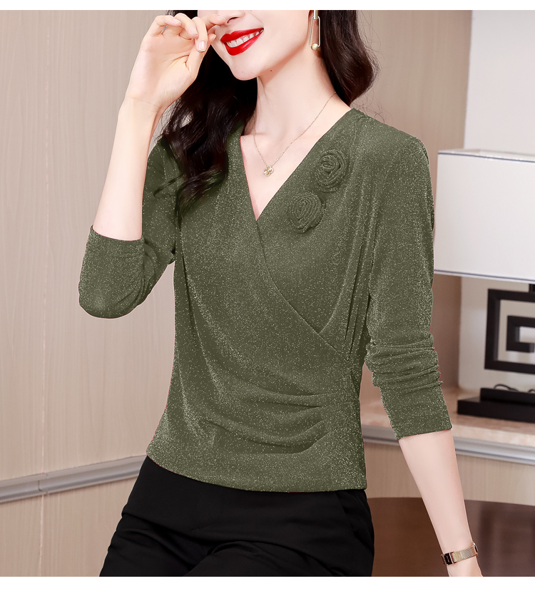 RM26402#高档打底衫女新款2023秋季弹力网纱遮肉显瘦长袖T恤女外穿V领上衣