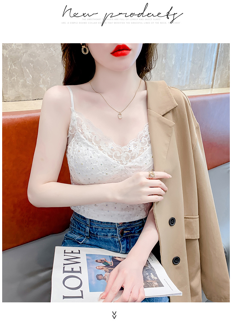 RM26591#法式重工水钻丝绒吊带背心配小西服内搭打底带胸垫上衣