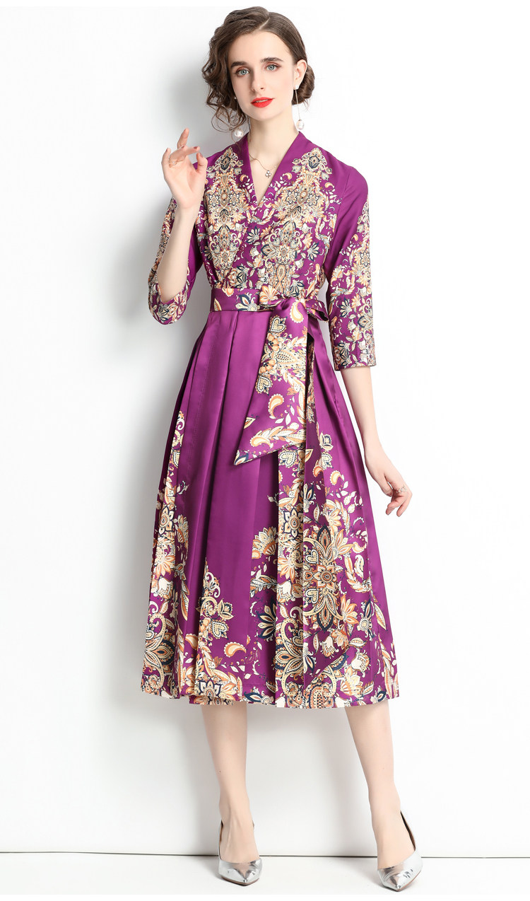 RM8221#大码时尚高腰短袖轻奢时髦2023洋气夏装新款遮肚子高档连衣裙