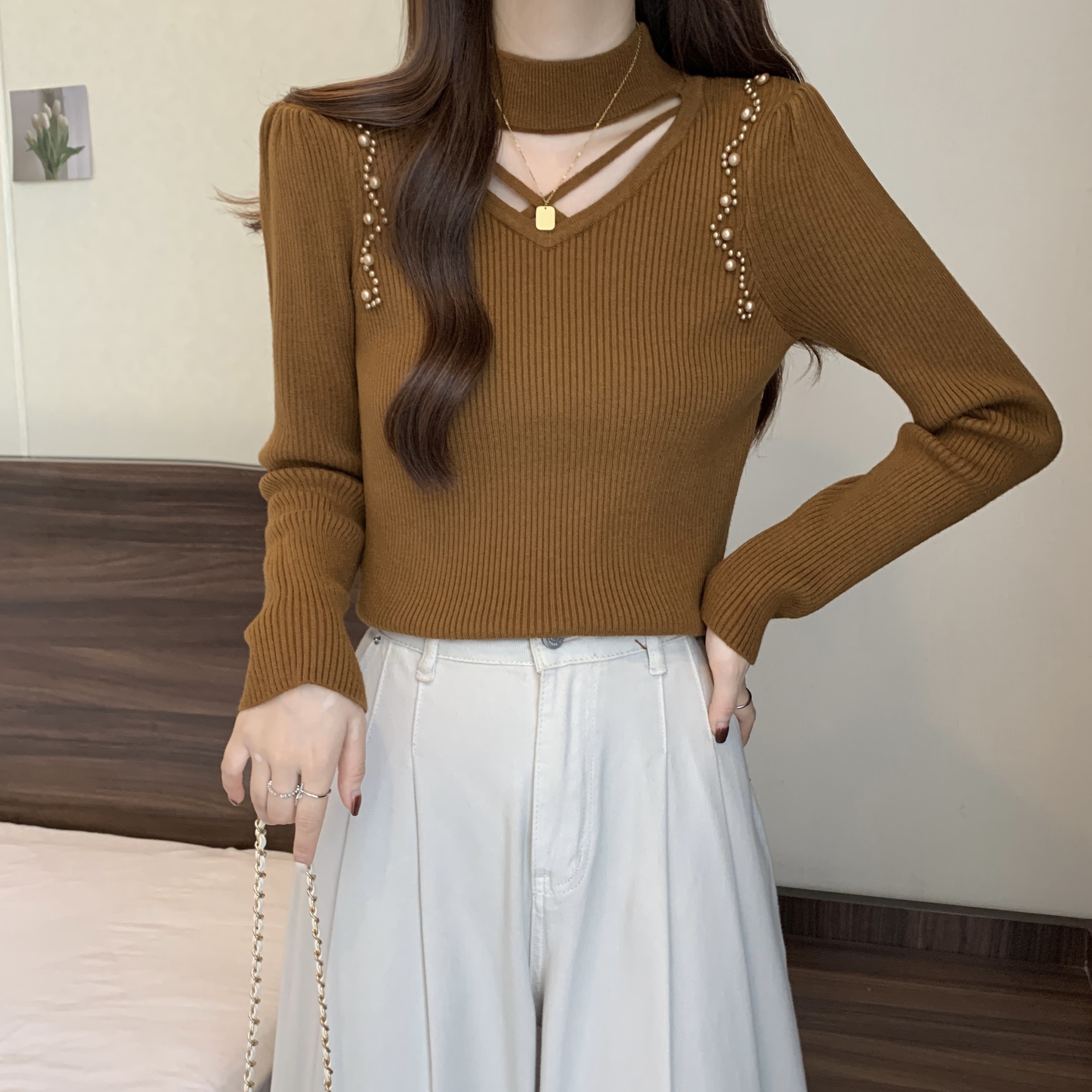 RM27311#大码胖mm秋冬新款设计感内搭镂空小心机遮肉显瘦百搭毛衣女