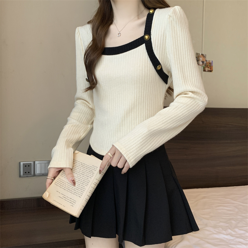 RM27334#大码长袖上衣女不规则设计感胖MM遮肉显瘦圆领撞色打底秋冬款