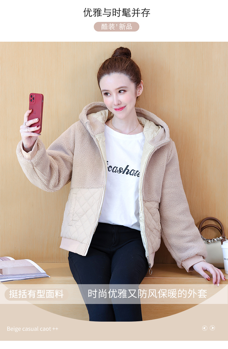 RM27341#连帽羊羔毛菱格棉服女2024冬季新款夹棉外套棉袄加厚保暖棉衣