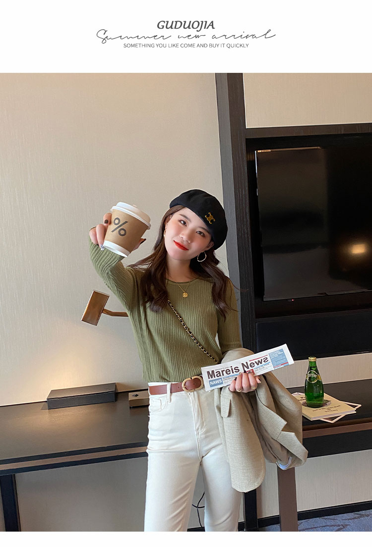 RM27365#白色打底衫女春秋款内搭圆领针织衫宽松上衣2023新款秋冬羊绒毛衣
