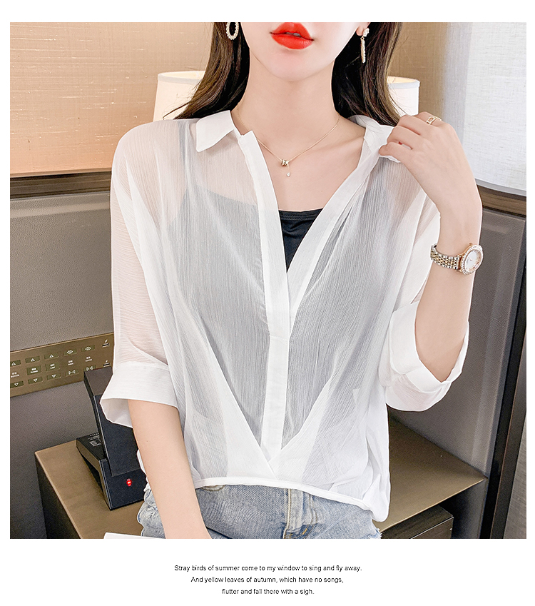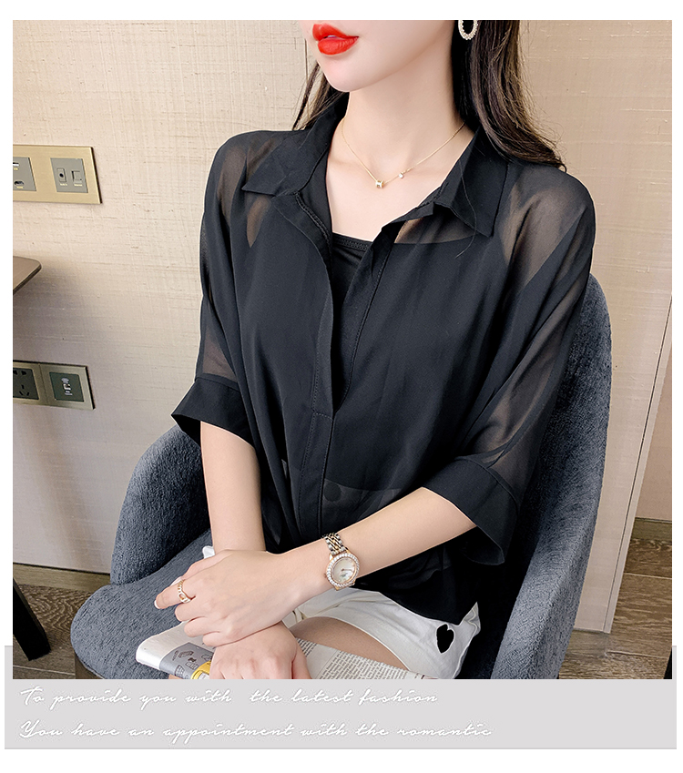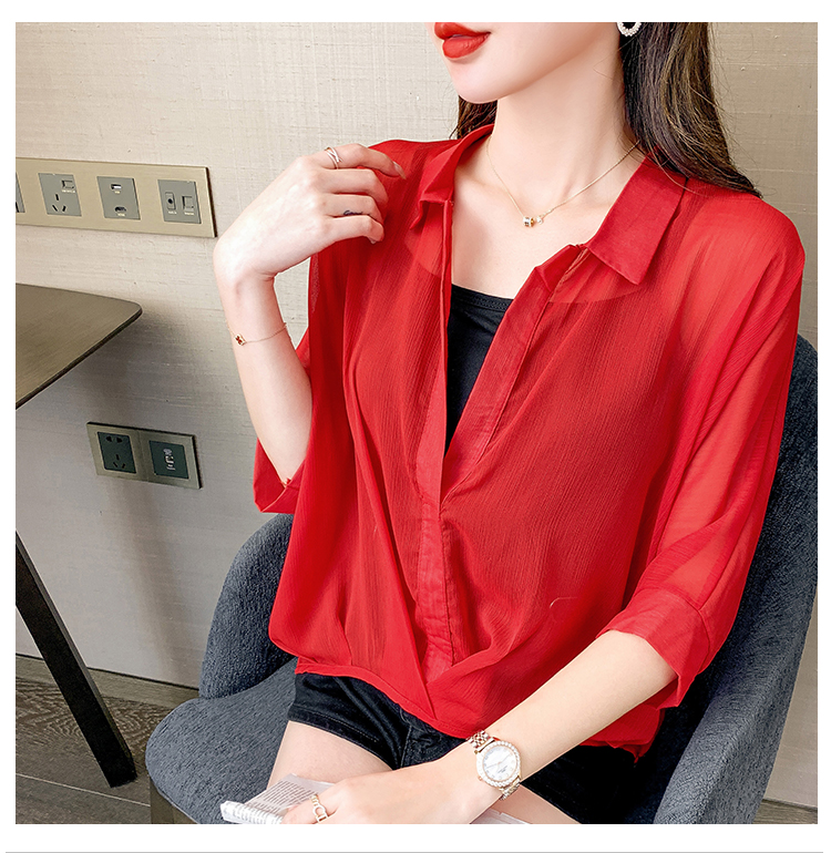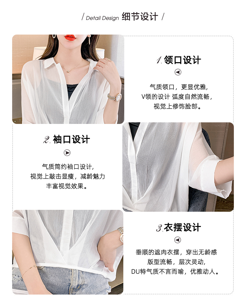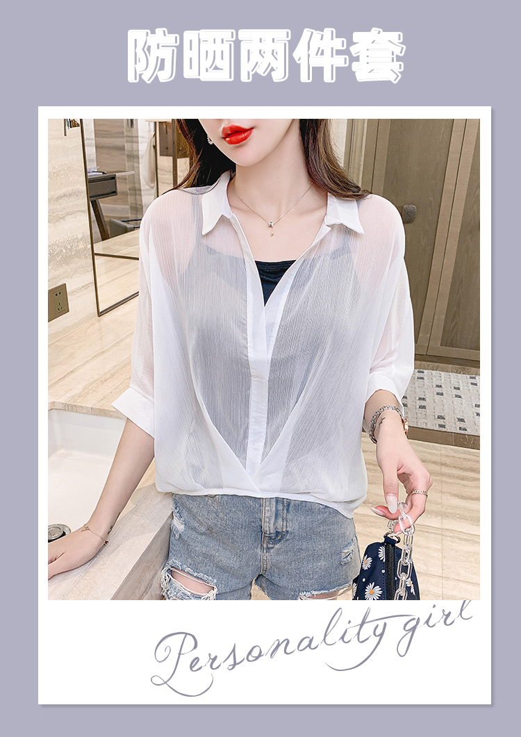 RY1939#夏装雪纺衫吊带两件套女上衣蝙蝠袖韩版显瘦短袖衬衫上衣