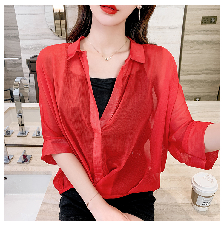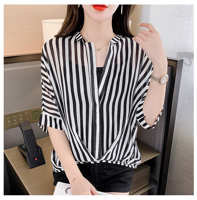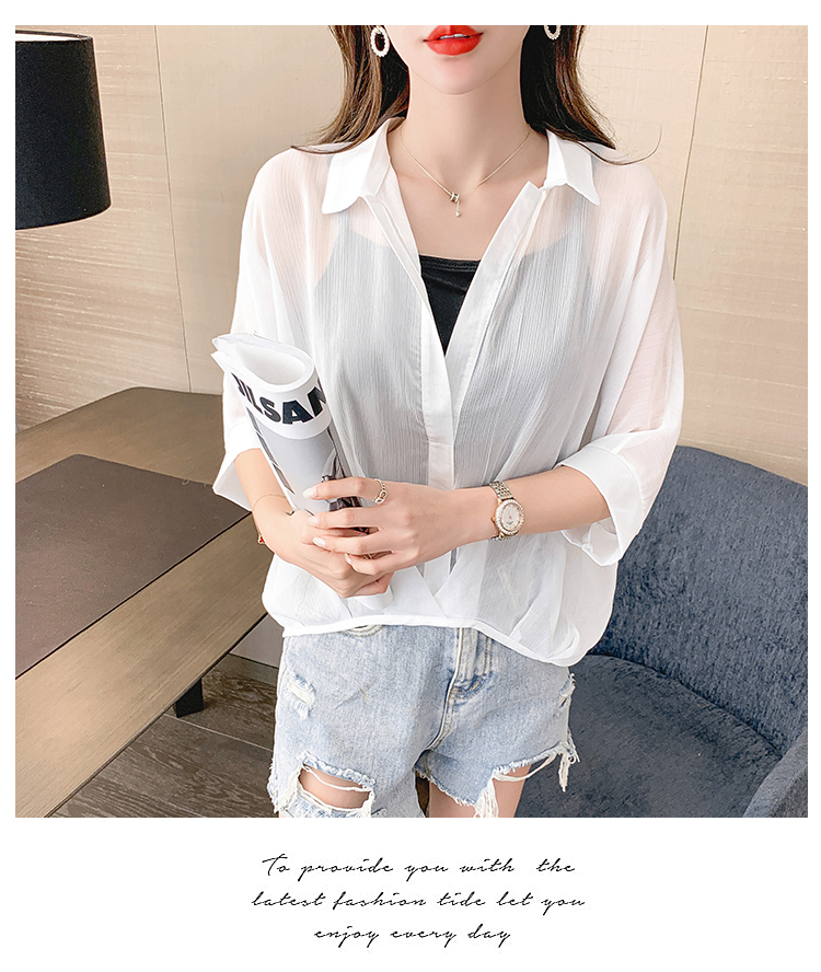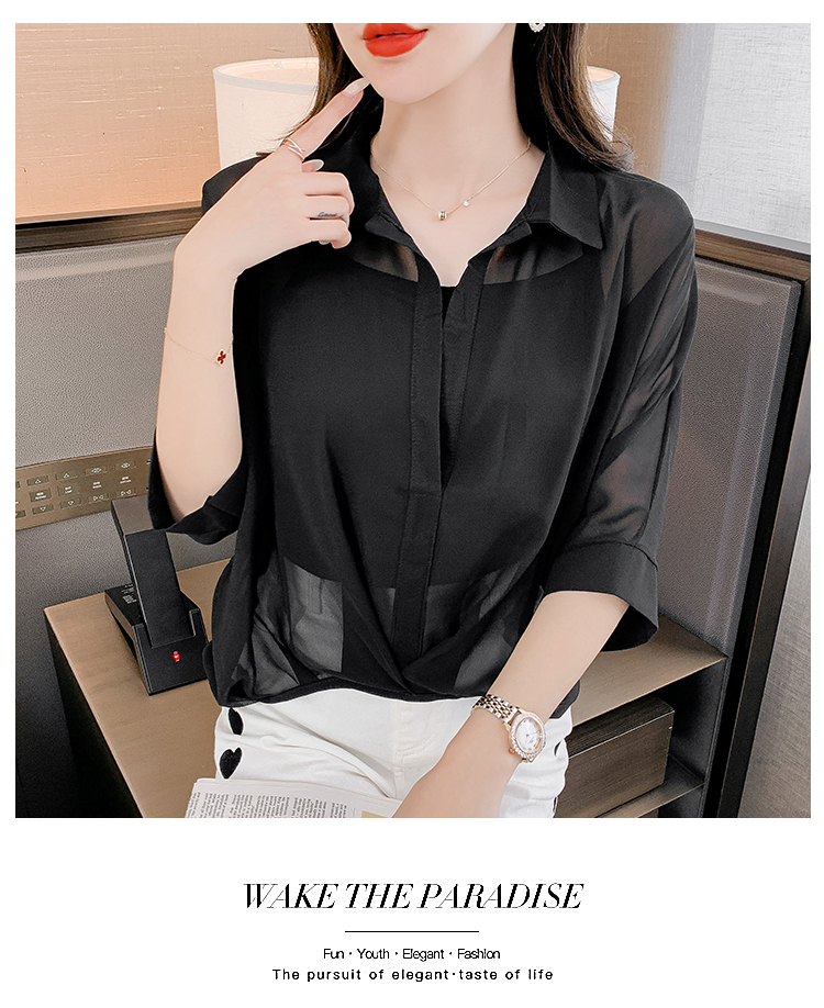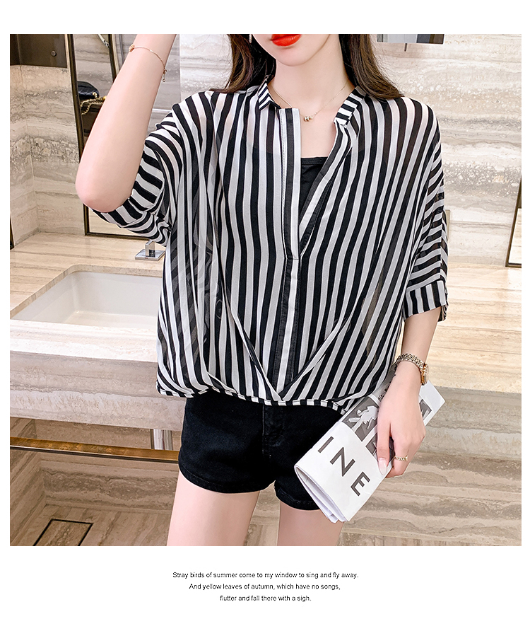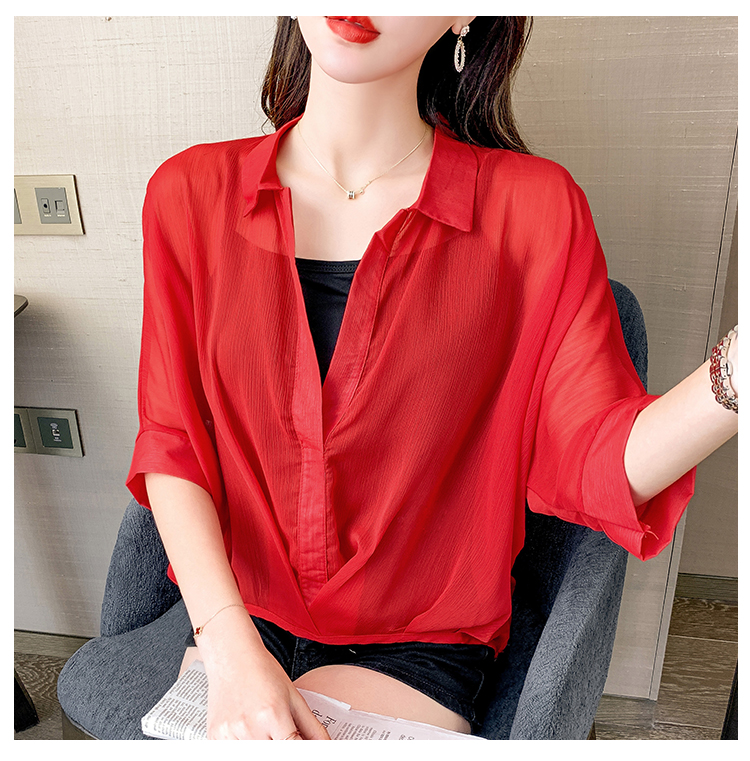 RY1939#夏装雪纺衫吊带两件套女上衣蝙蝠袖韩版显瘦短袖衬衫上衣