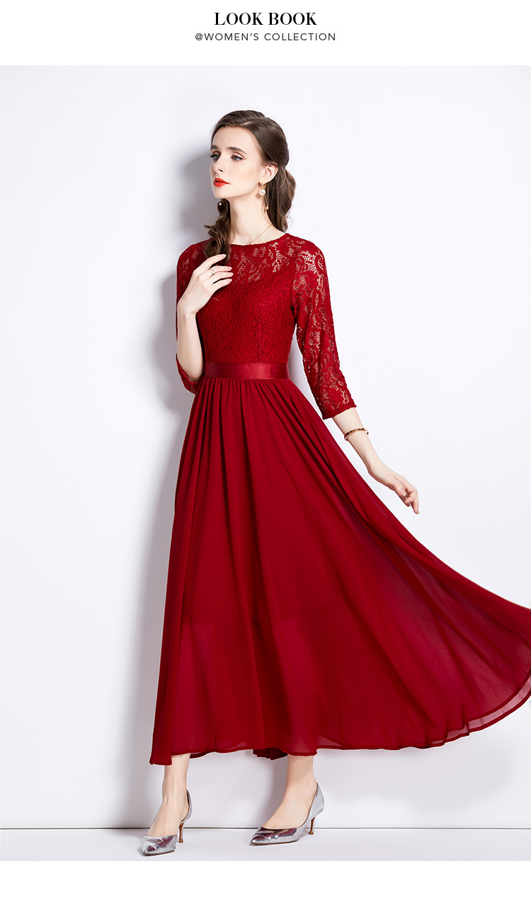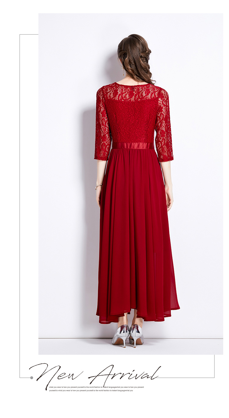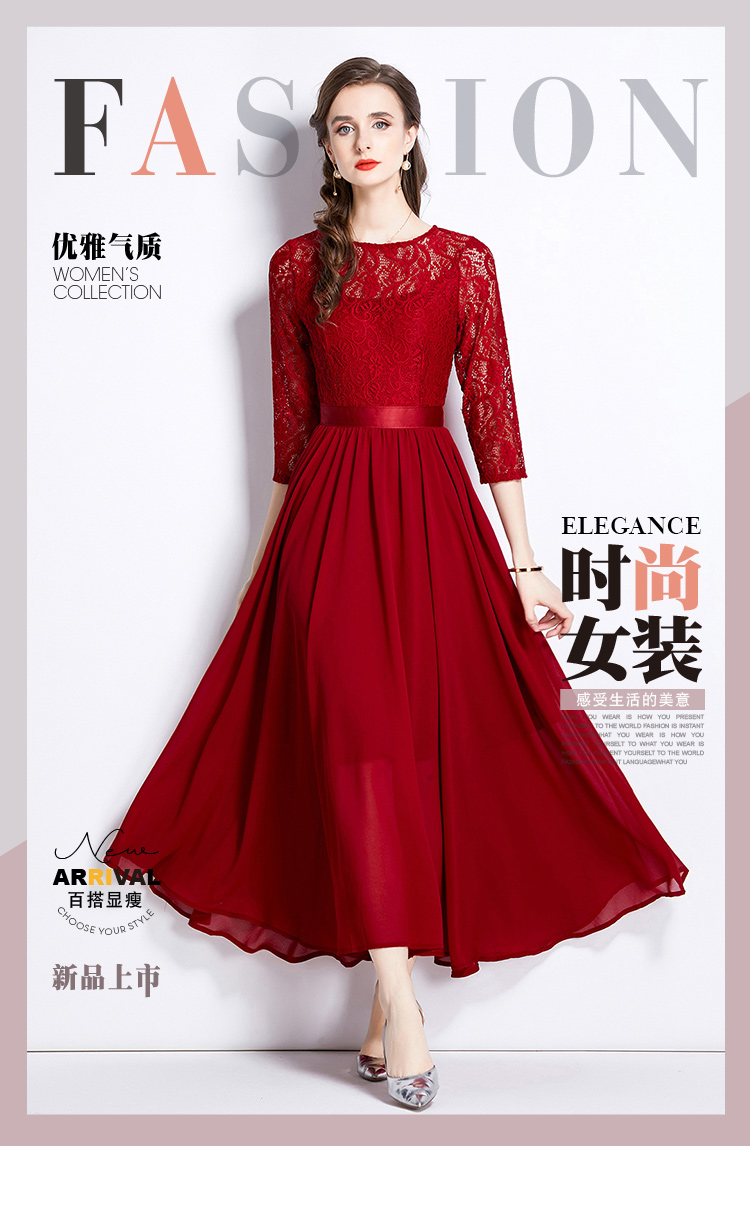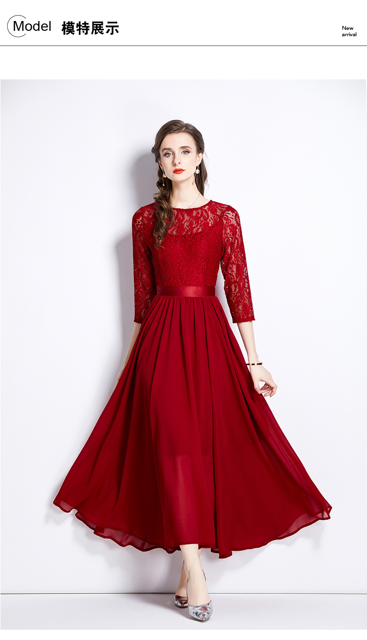 RM27376#新款蕾丝拼接大摆连衣裙