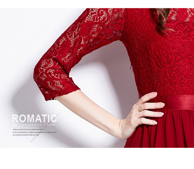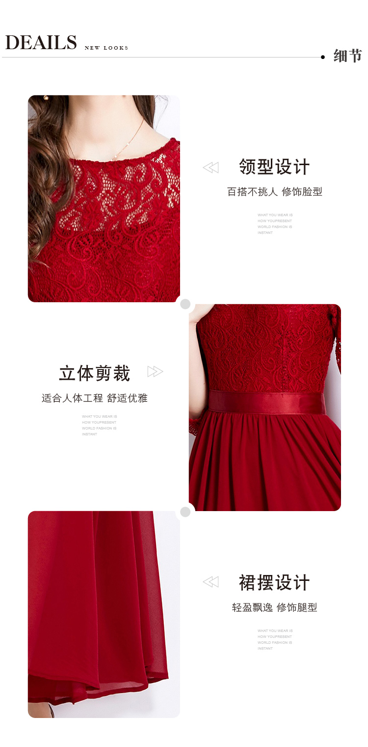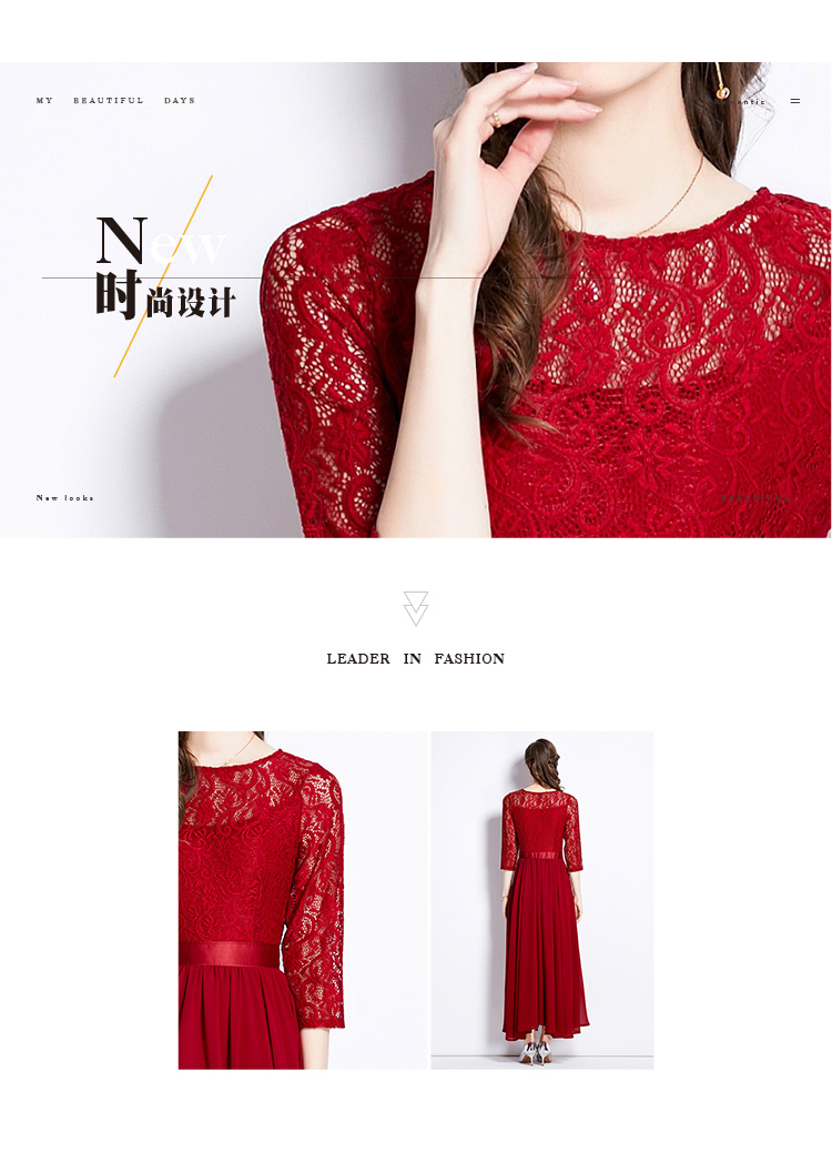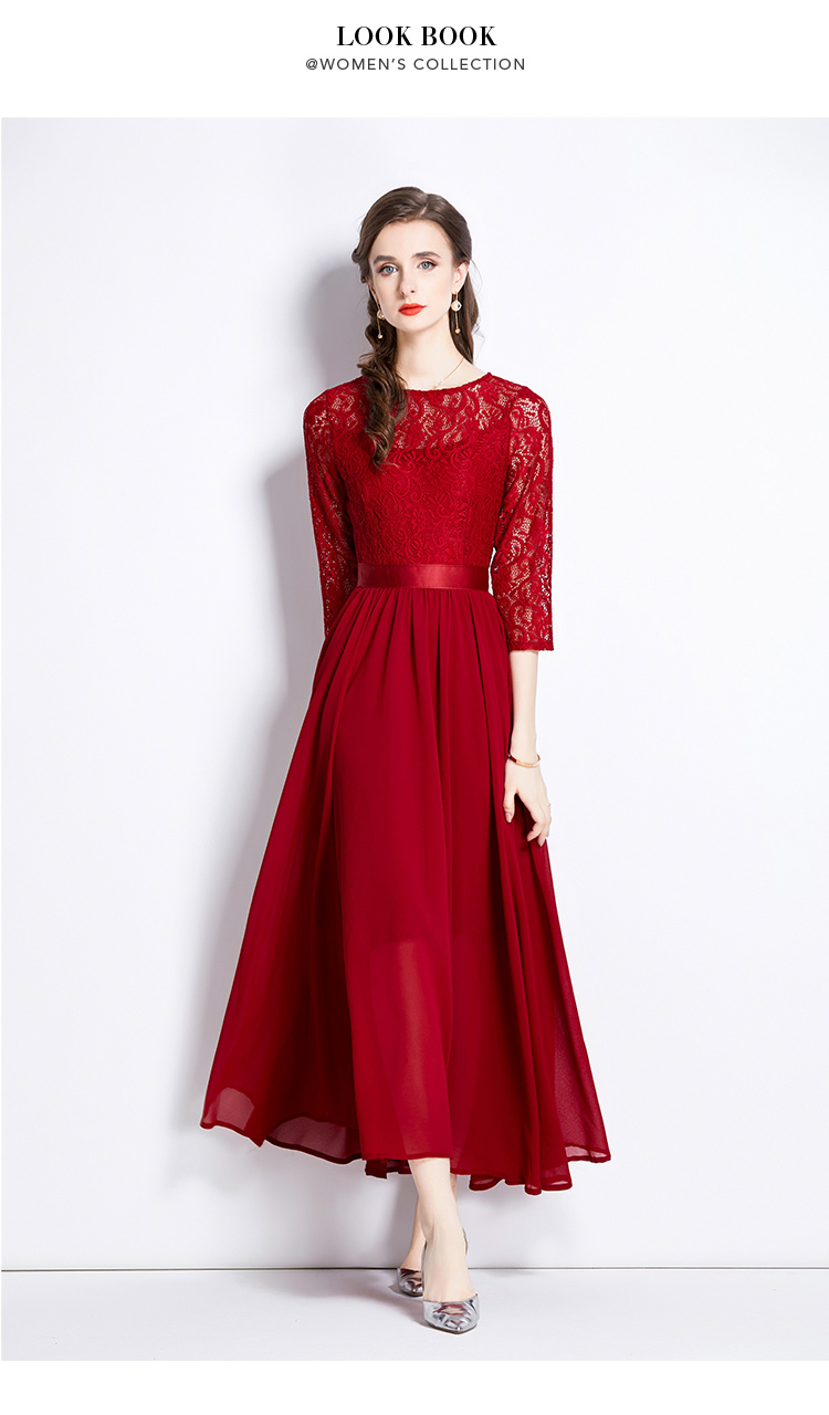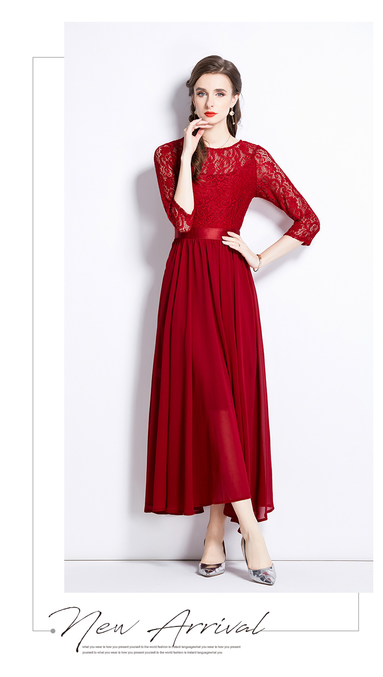 RM27376#新款蕾丝拼接大摆连衣裙