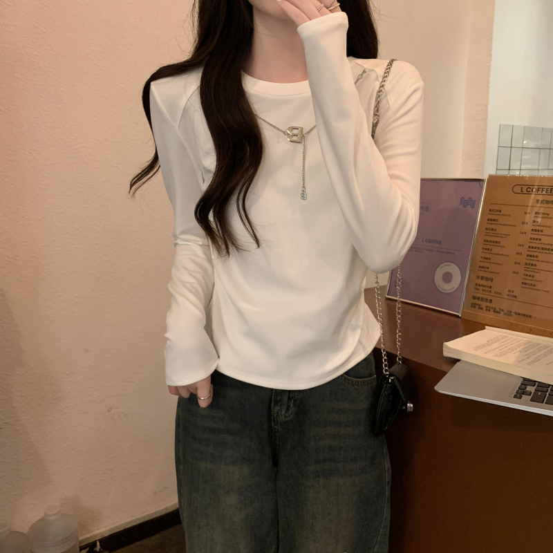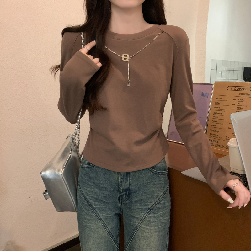RM27389#纯色圆领个性链子装饰可拆休闲百搭加厚长袖打底衫上衣女