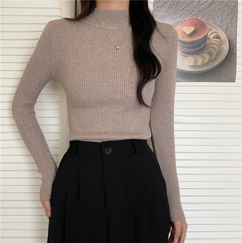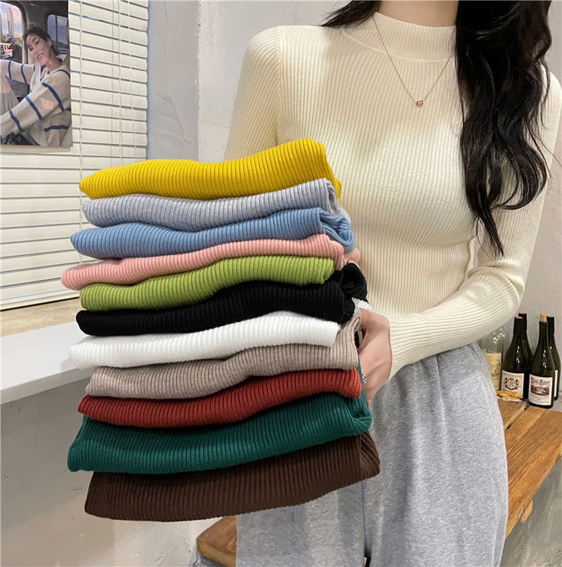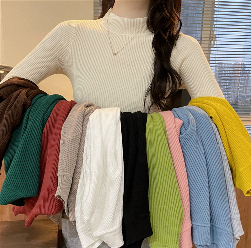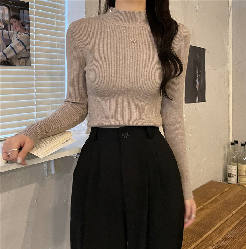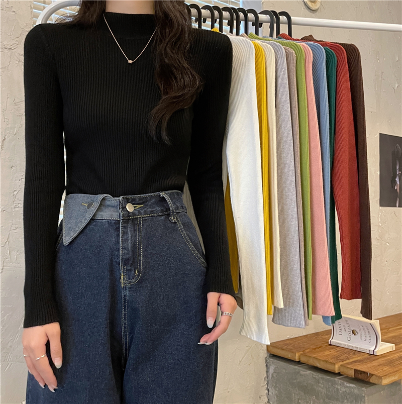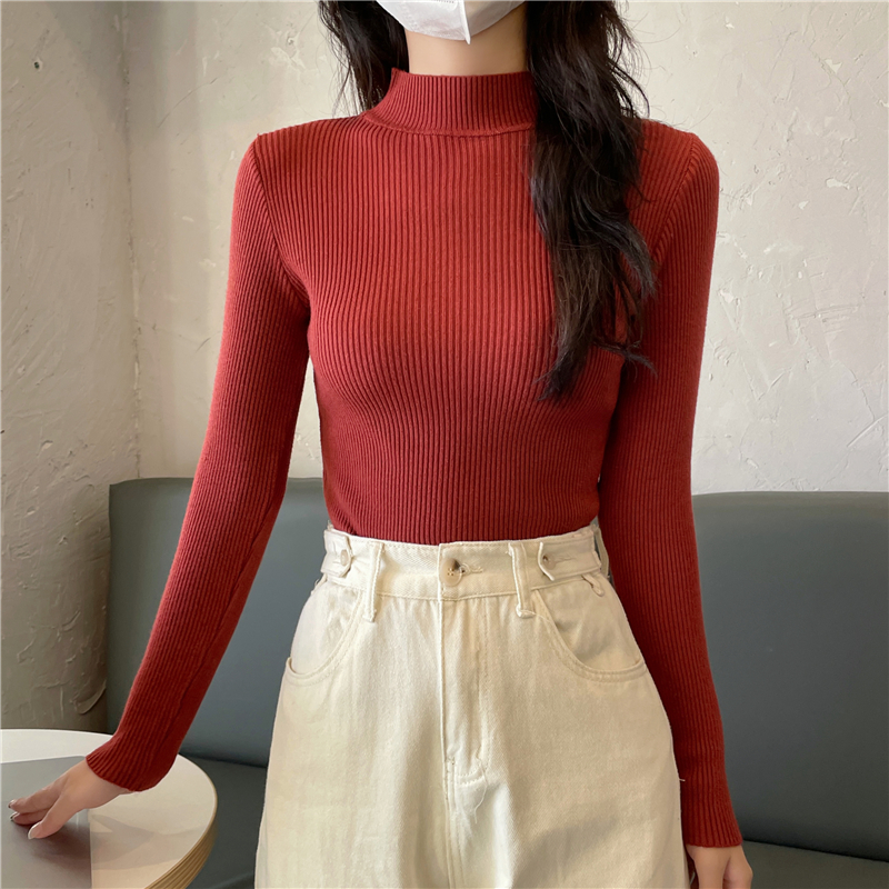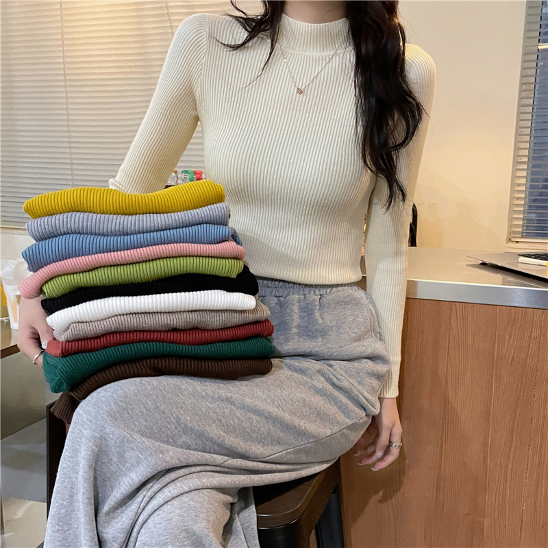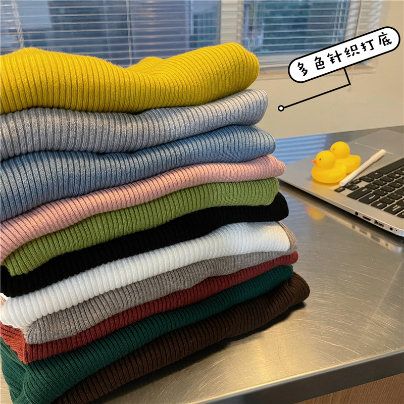RM27402#长袖针织衫上衣内搭打底衫修身紧身半高领毛衣