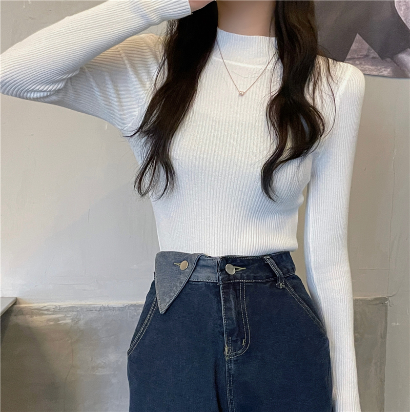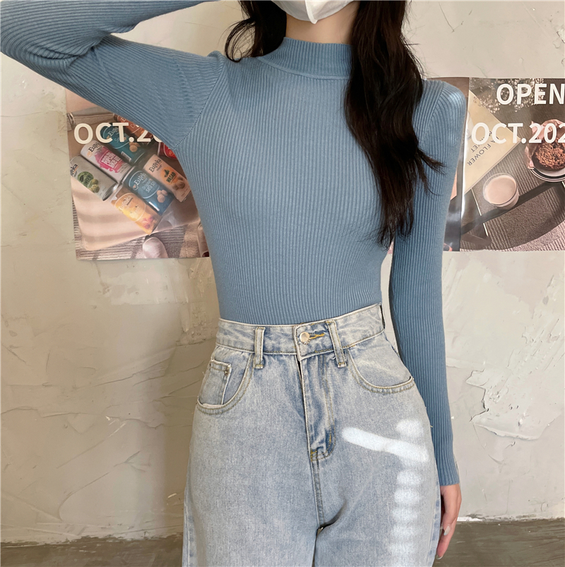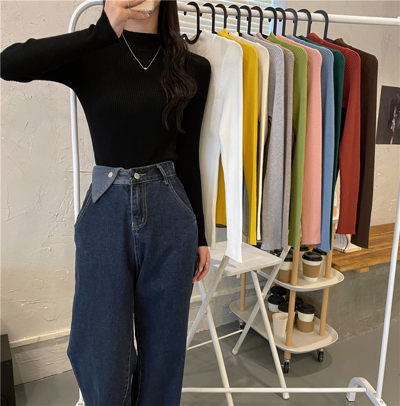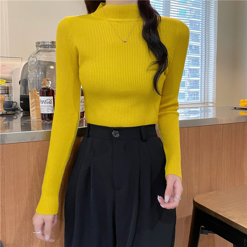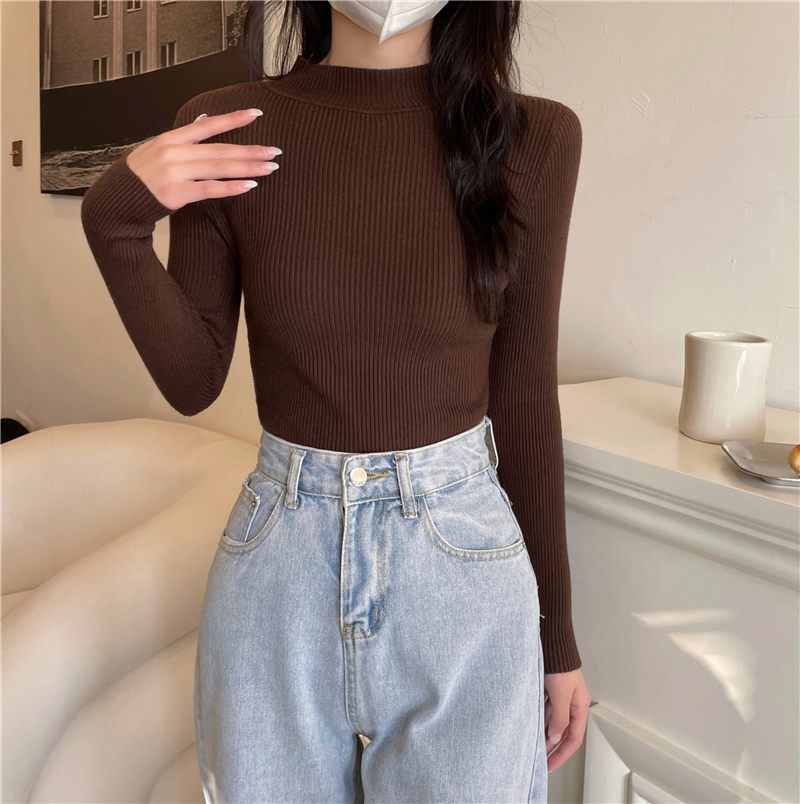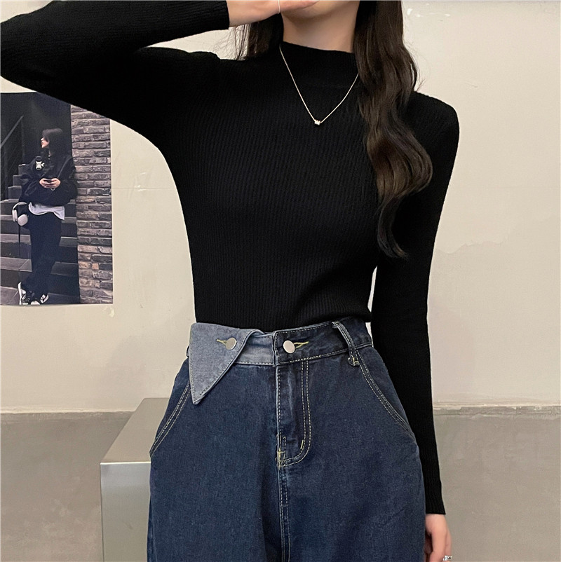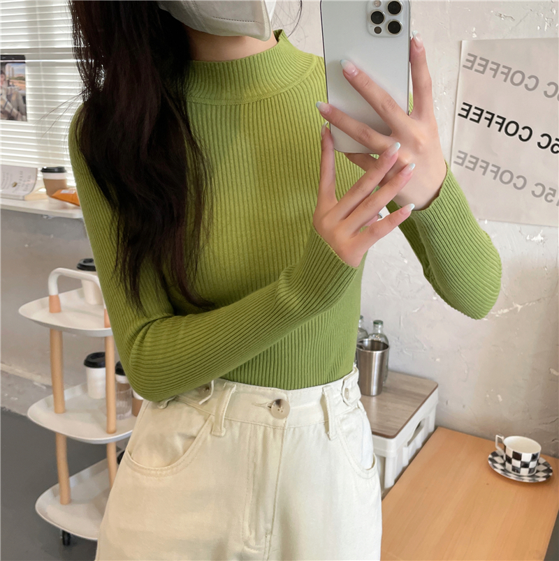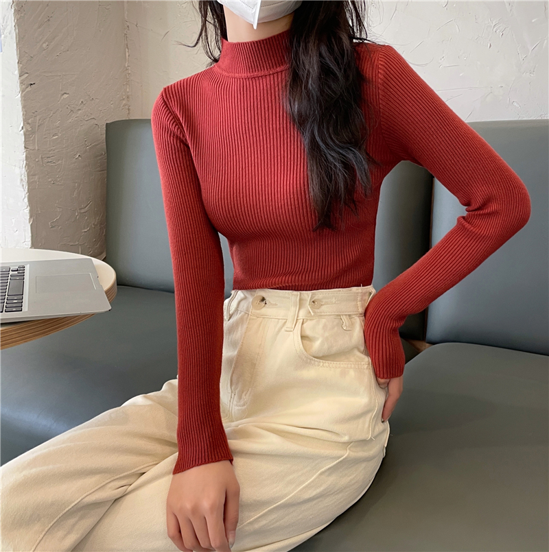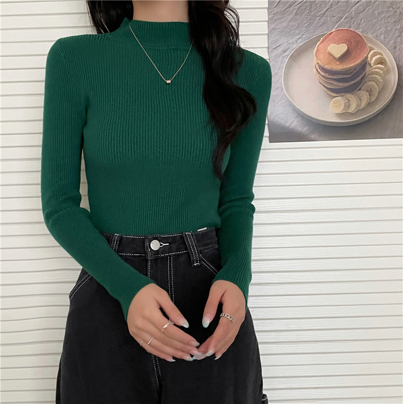 RM27402#长袖针织衫上衣内搭打底衫修身紧身半高领毛衣