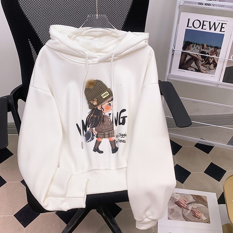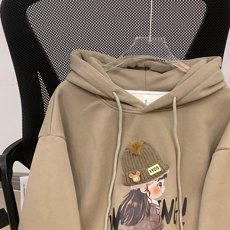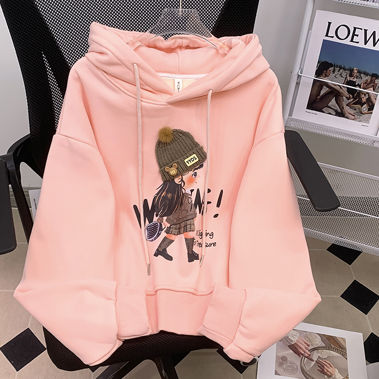 RM27844#加绒卫衣女2023秋冬新款爆款加厚宽松显瘦连帽套头小个子上衣