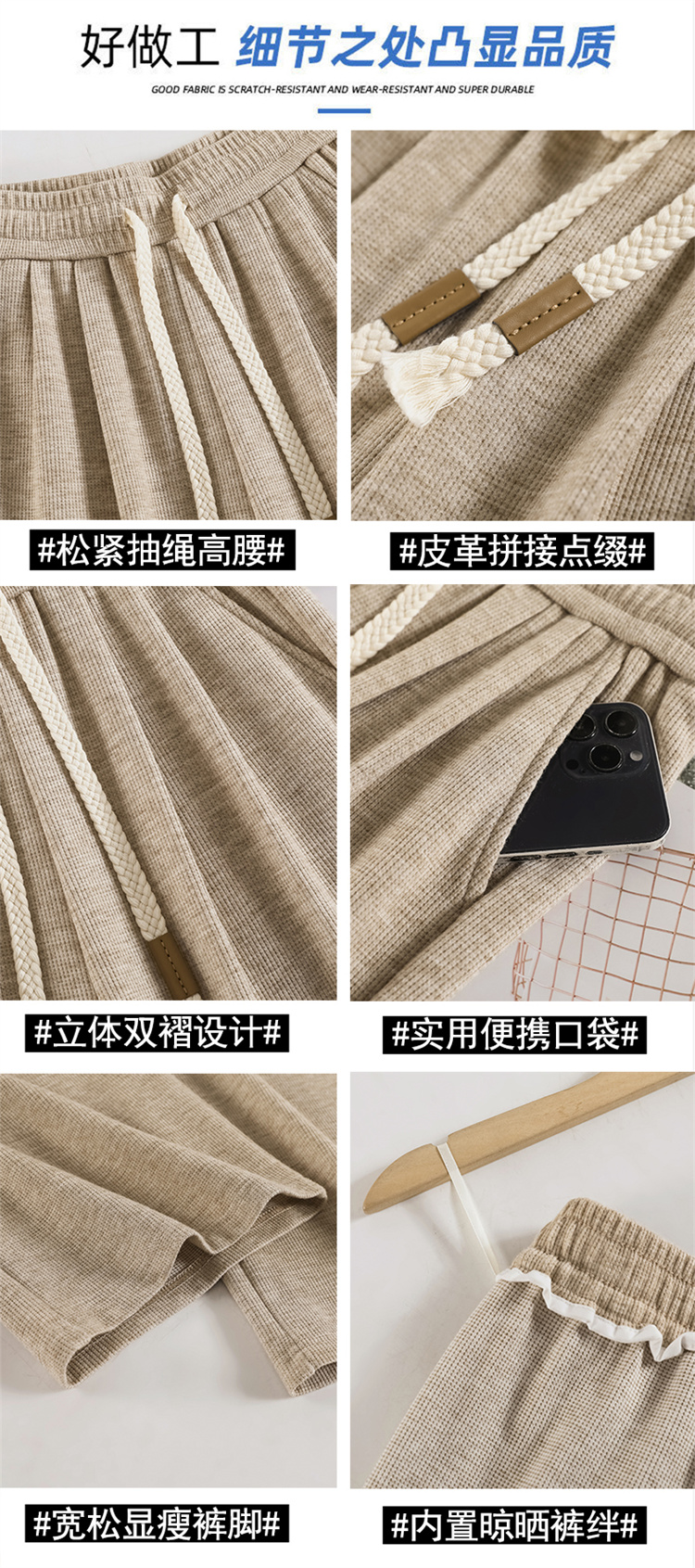 RM27852#糯米裤女2023秋冬新款加绒高腰阔腿裤慵懒针织宽松拖地裤