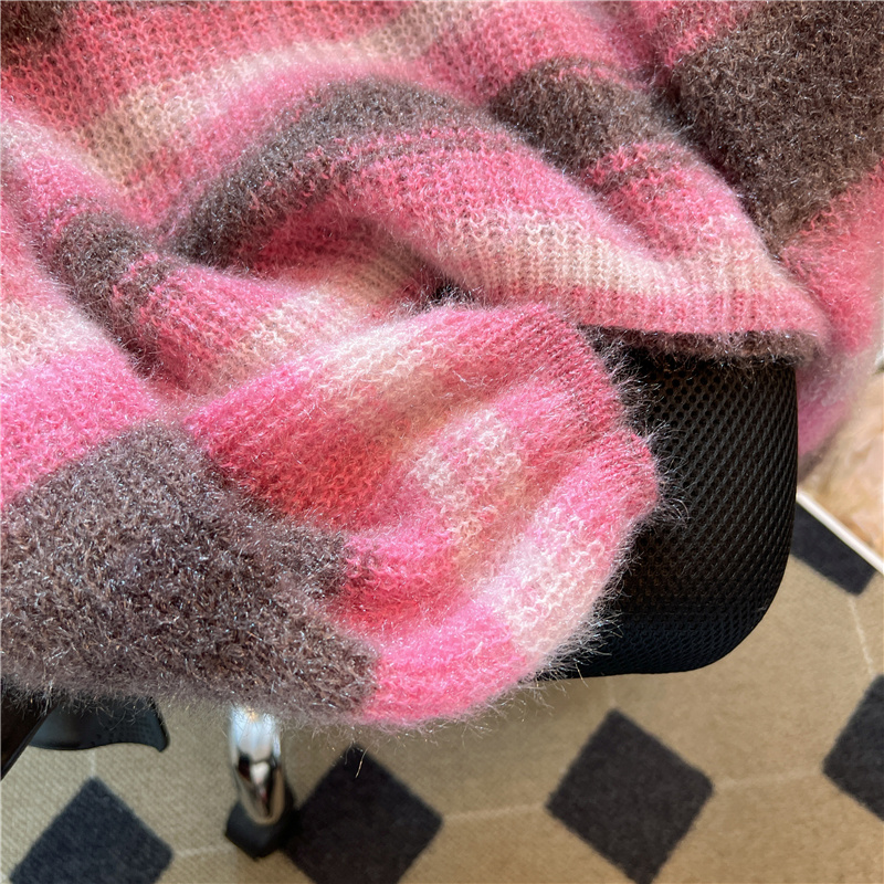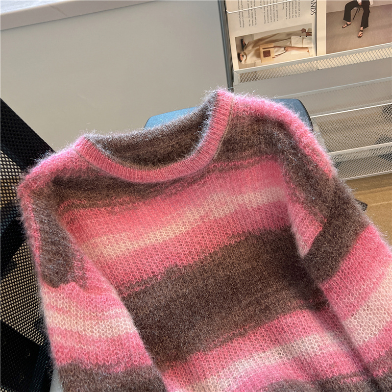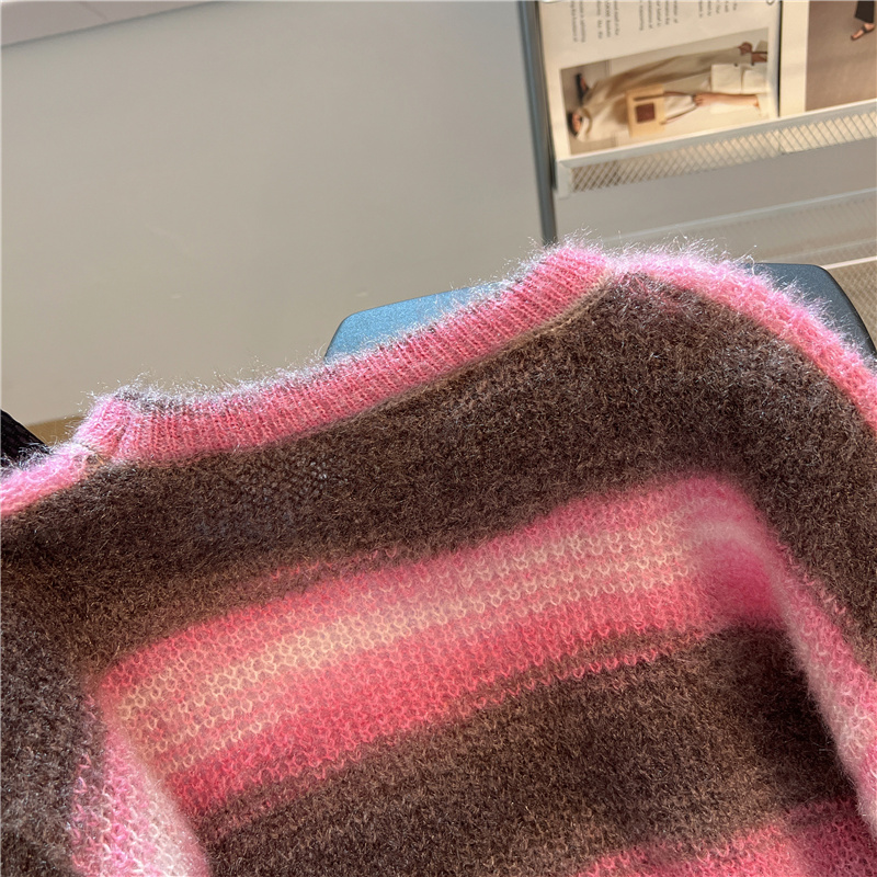 RM28244#渐变色圆领马海毛毛衣秋季女2023慵懒软糯宽松休闲套头短款针织衫