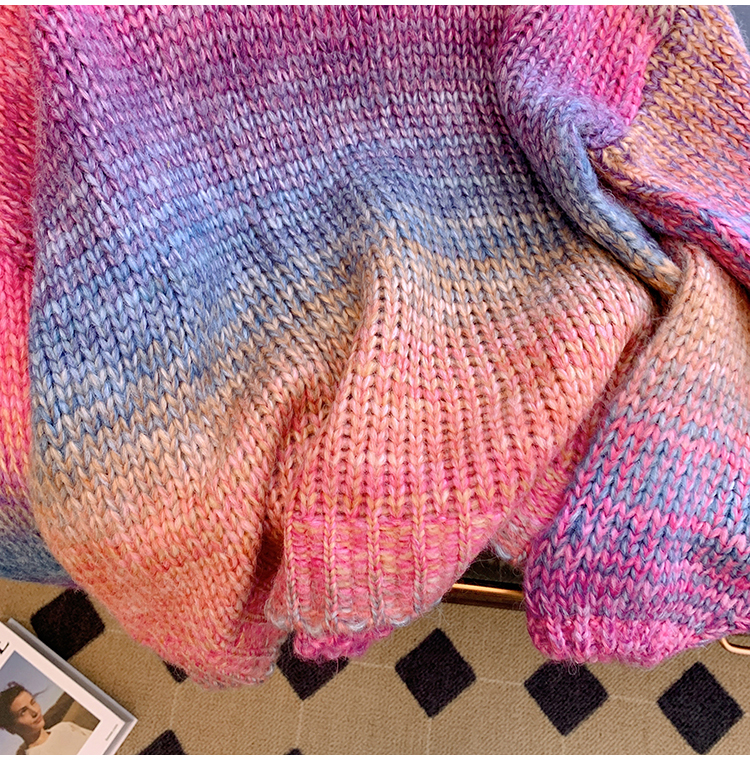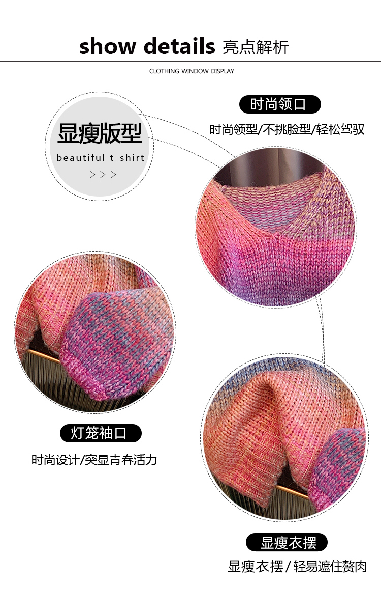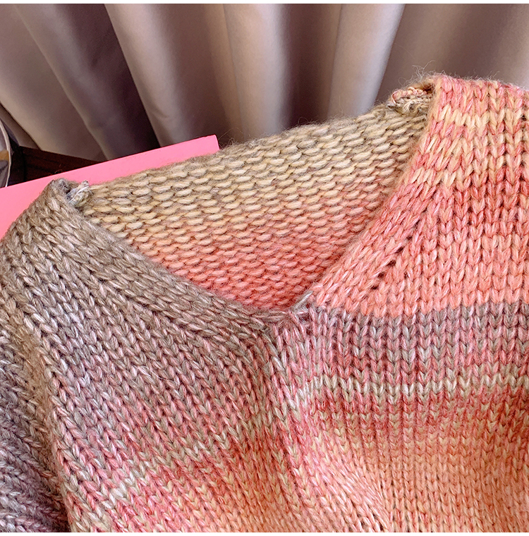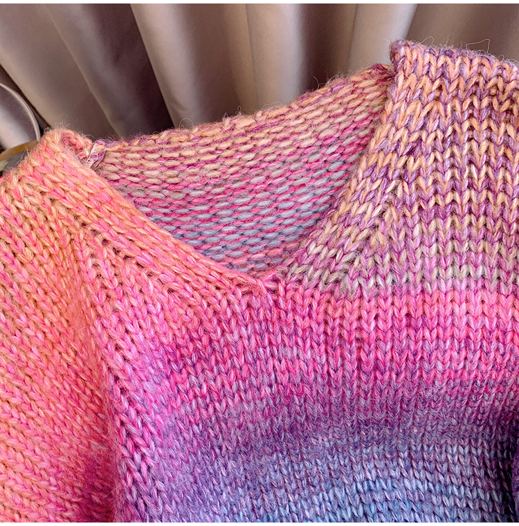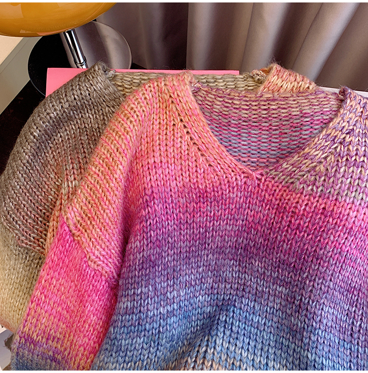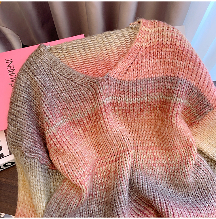 RM28249#扎染渐变V领套头软糯马海毛毛衣女秋冬外穿宽松慵懒风针织衫上衣