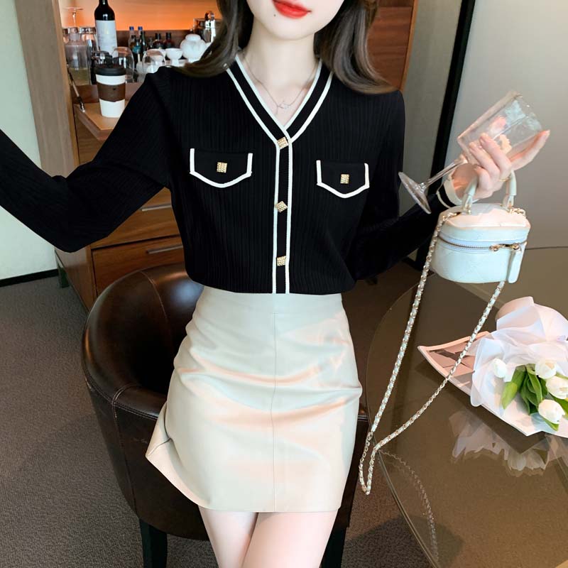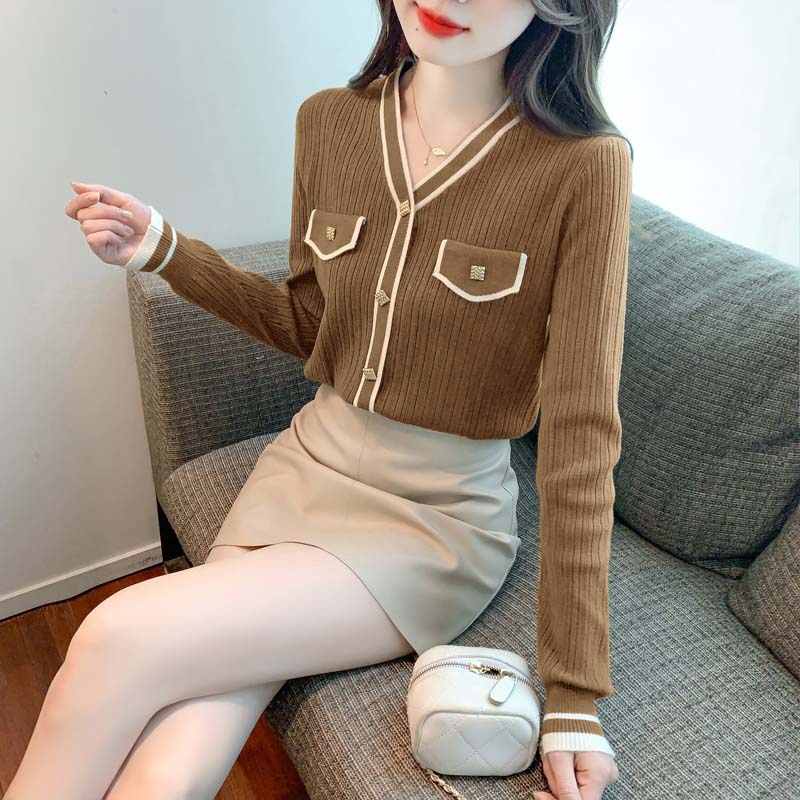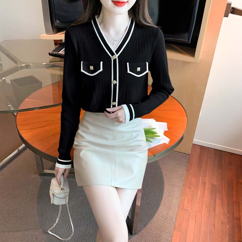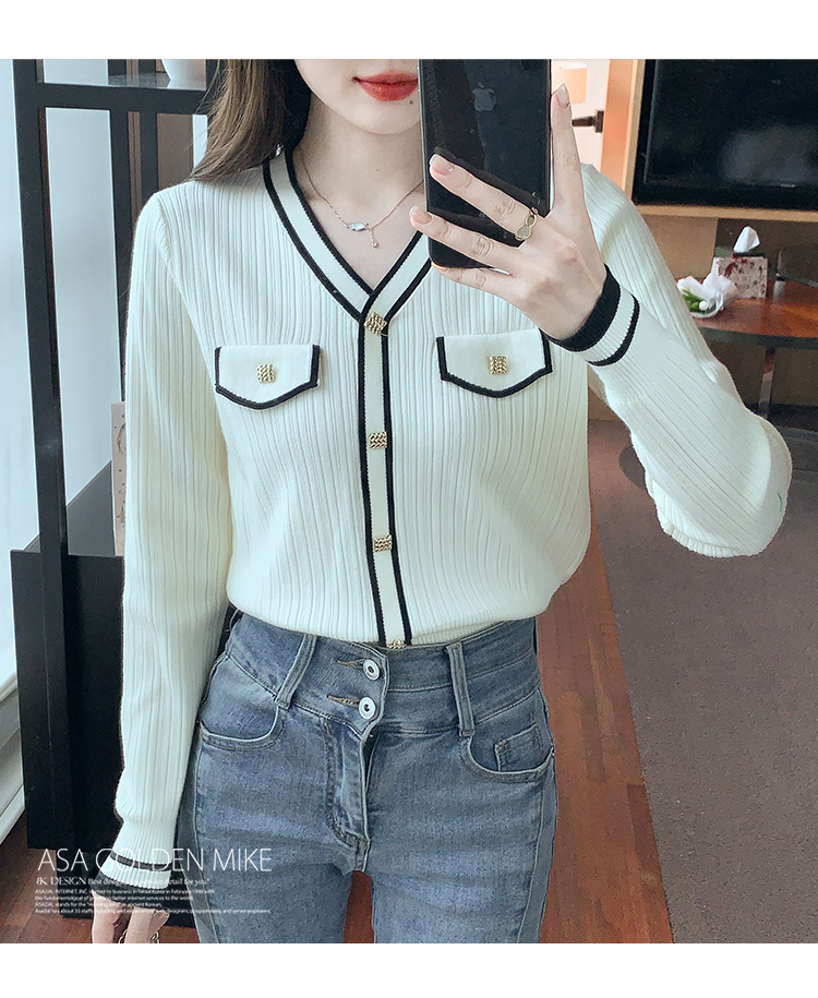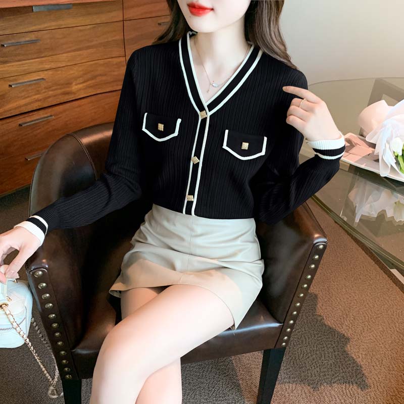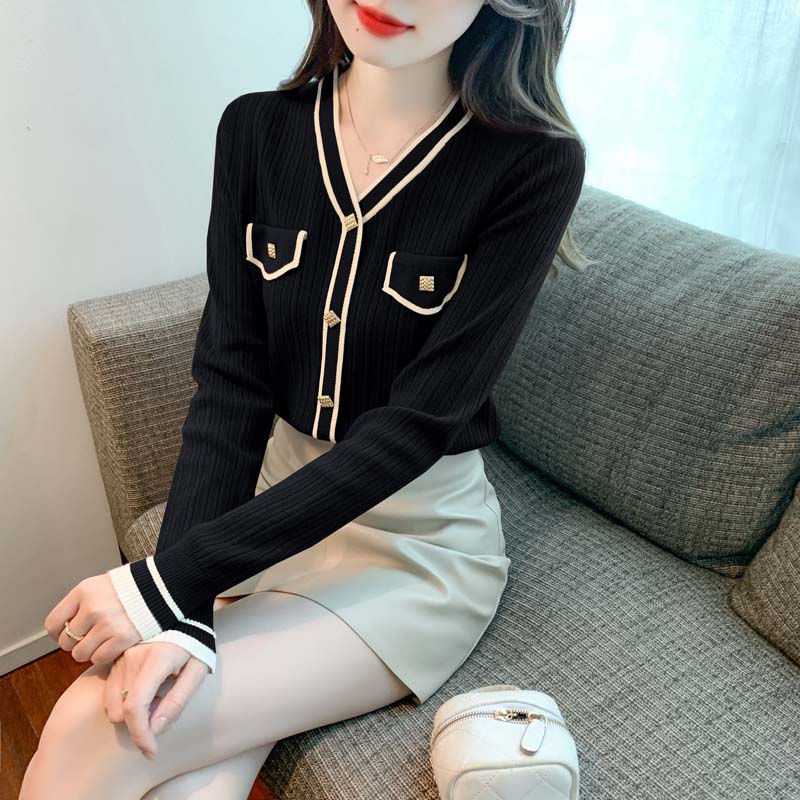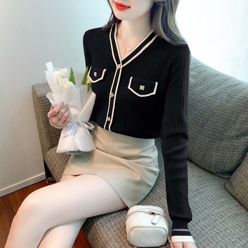 RM28265#小香风时尚毛衣2023秋冬内搭新款洋气拼接设计感针织衫上衣