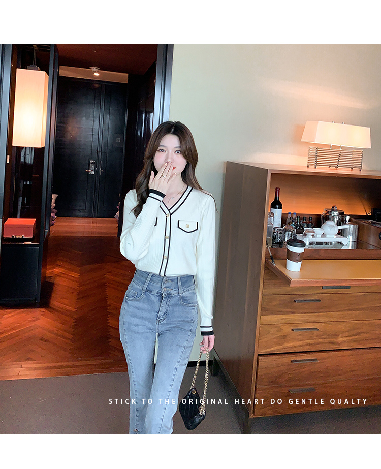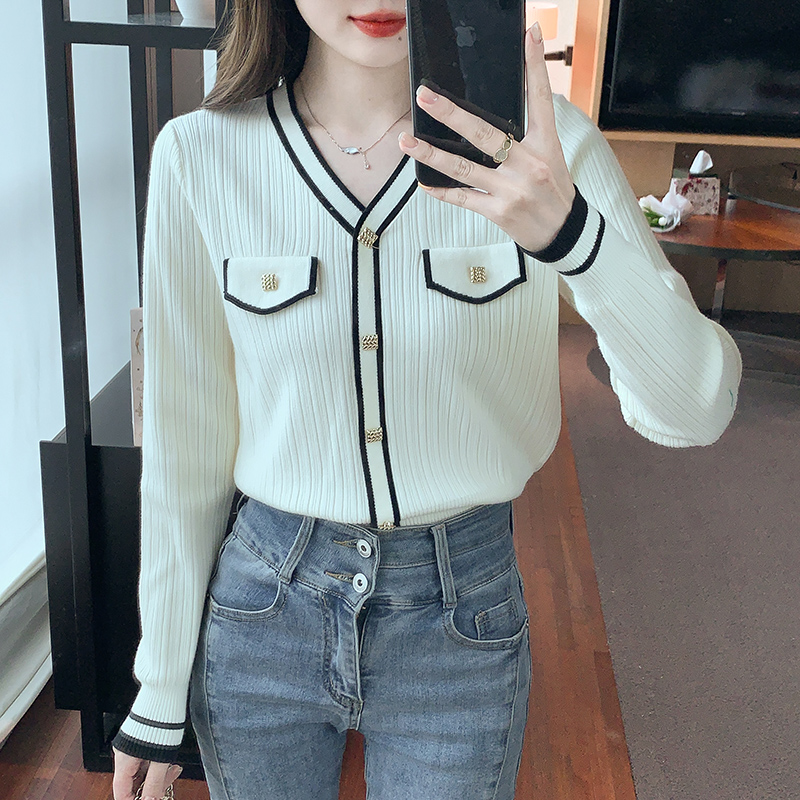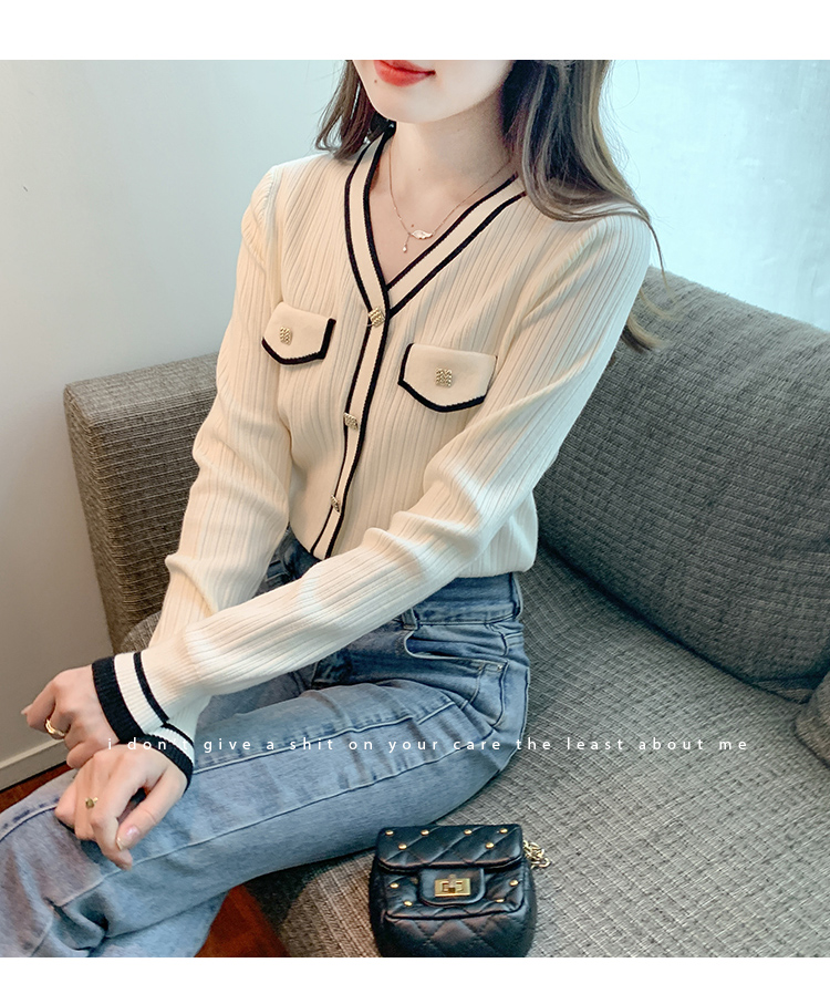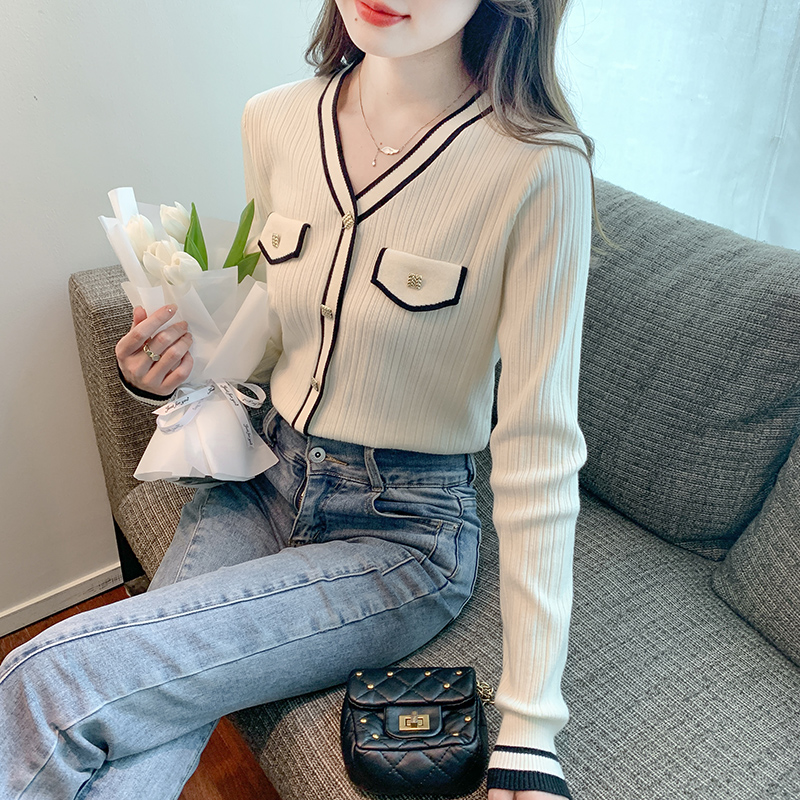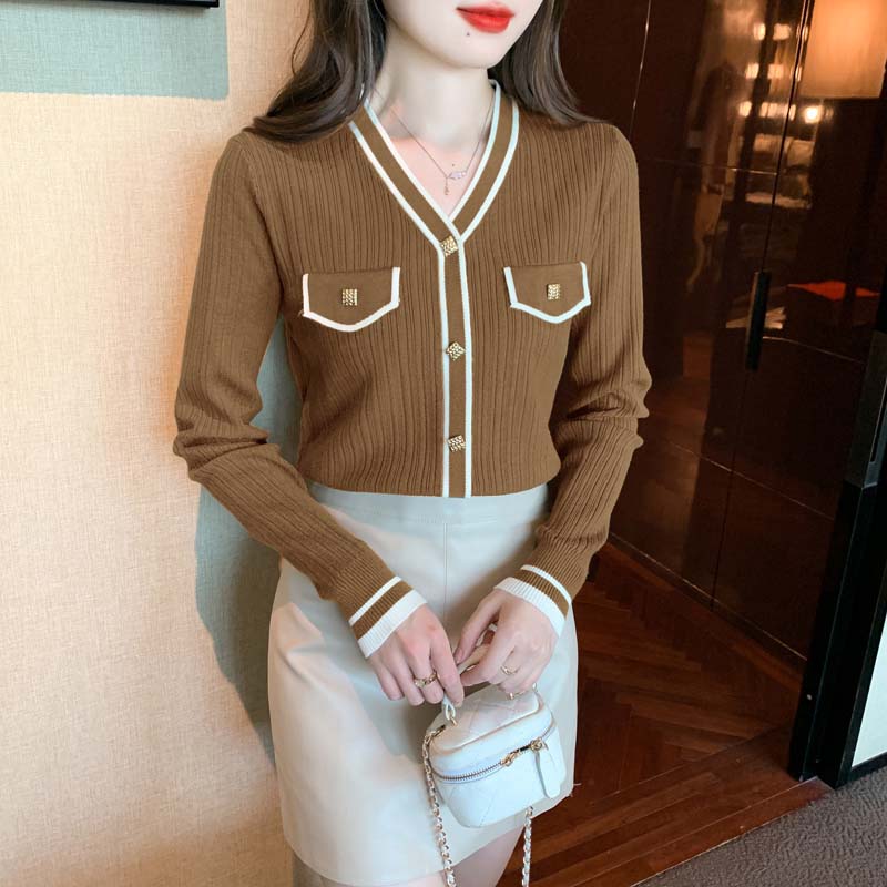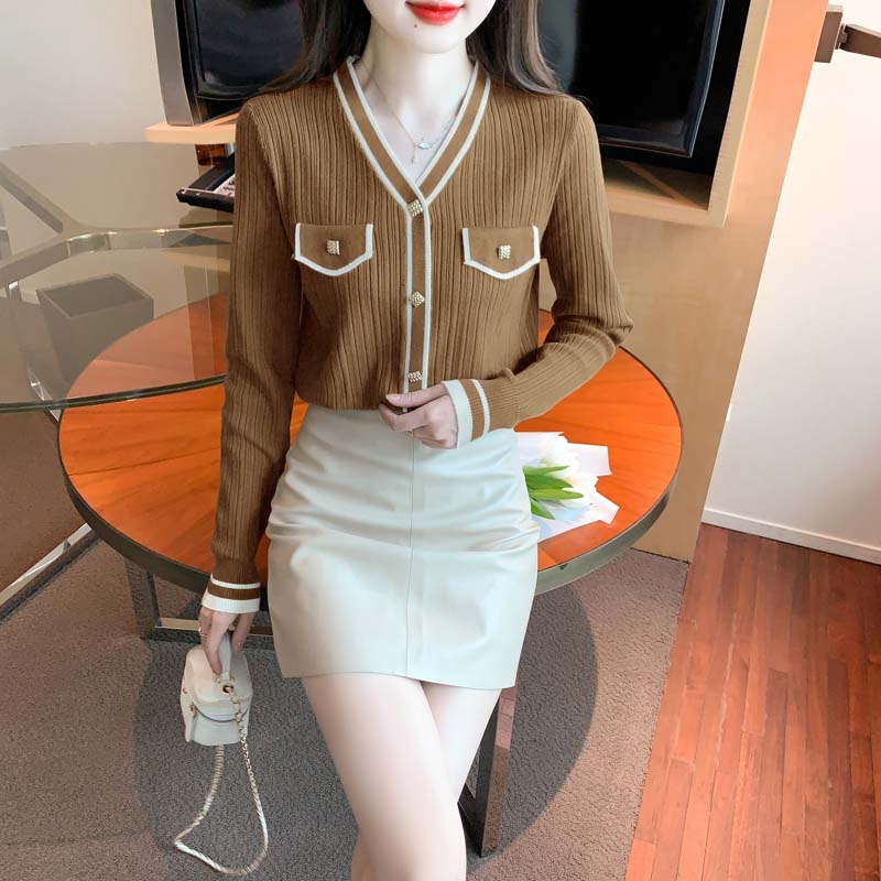 RM28265#小香风时尚毛衣2023秋冬内搭新款洋气拼接设计感针织衫上衣