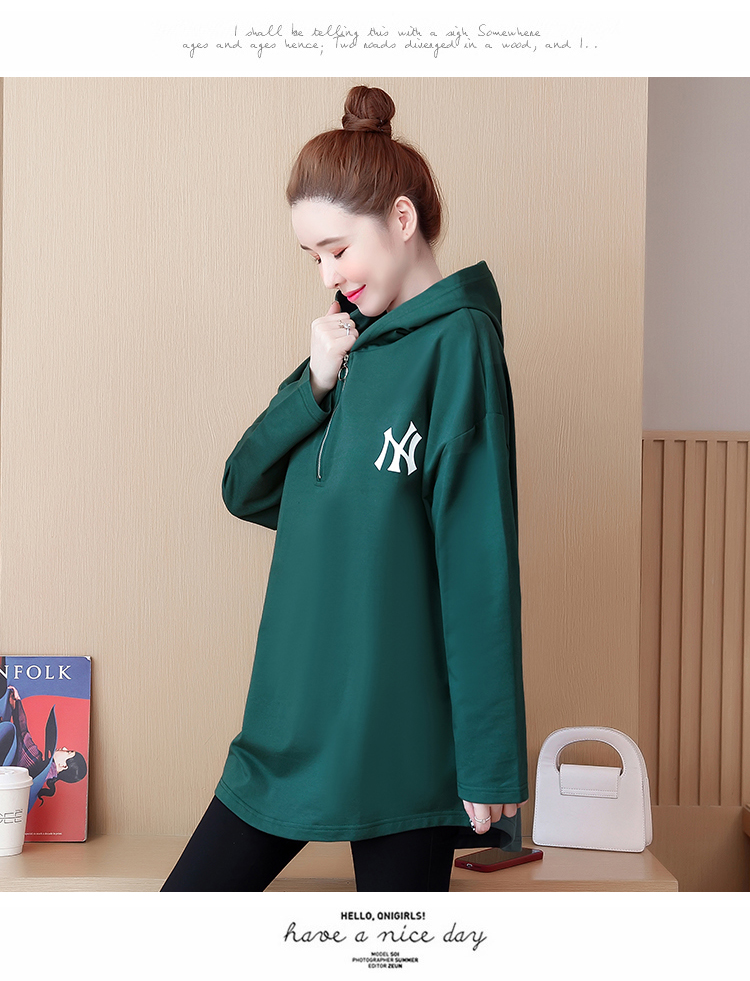 RM28284#大码女装中长款遮肚子连帽卫衣200斤胖mm春秋宽松藏肉外套上衣服
