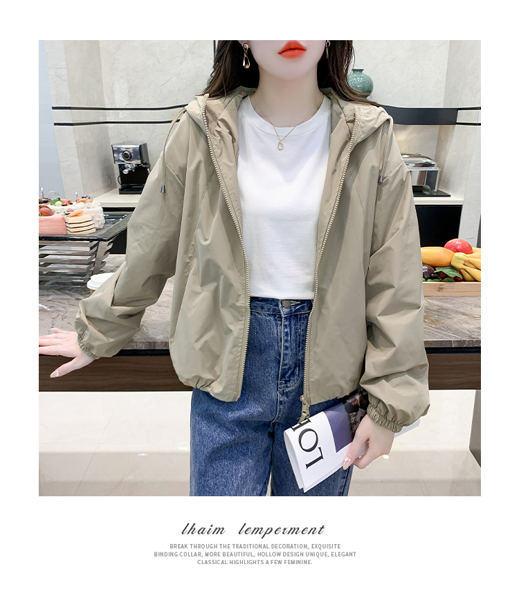 RM28359#新款连帽短款休闲风衣薄款夹克冲锋衣双拉链上衣