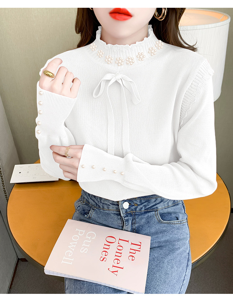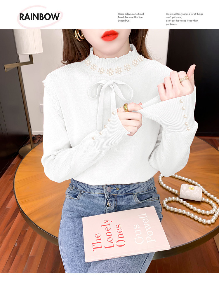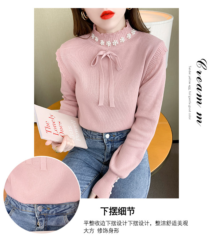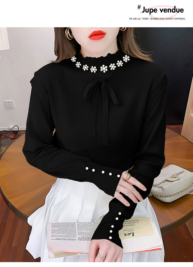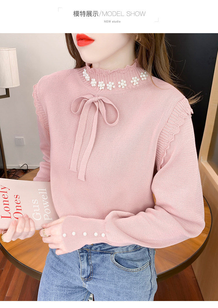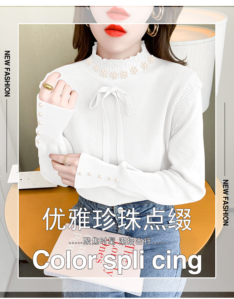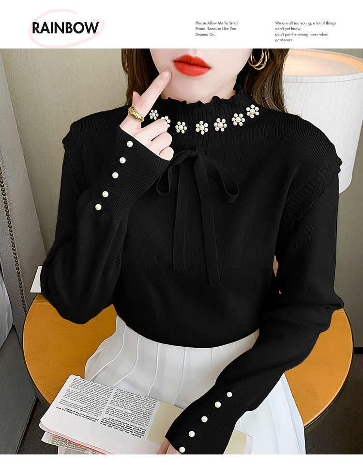 RM28368#百搭新款修身打底泡珠系蝴蝶结假两件长袖打底上衣