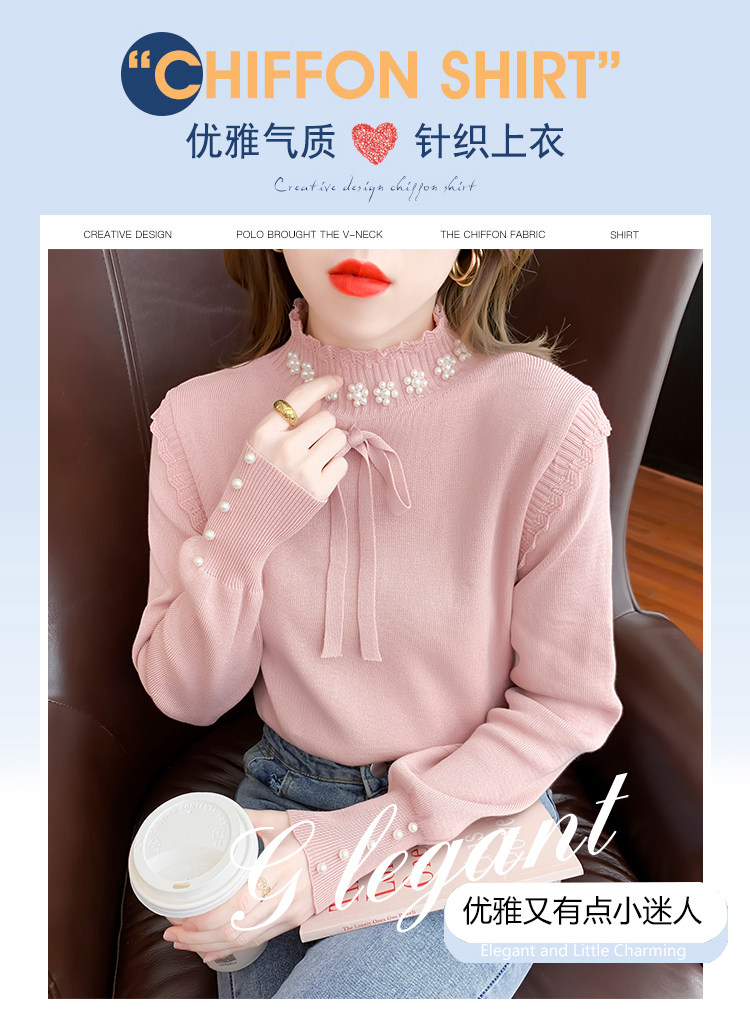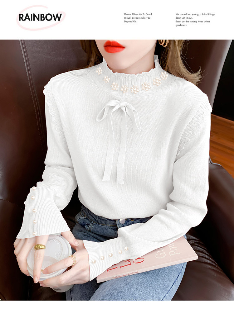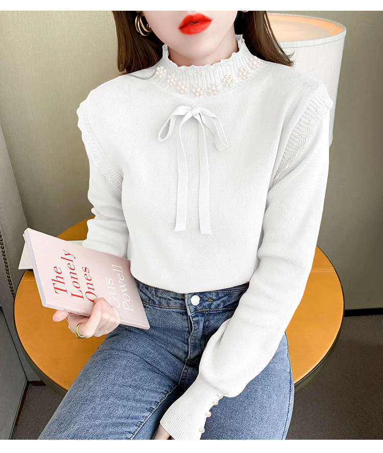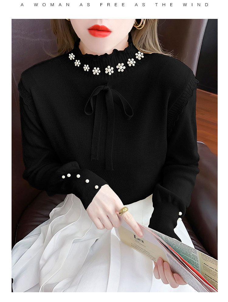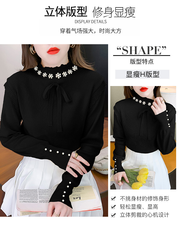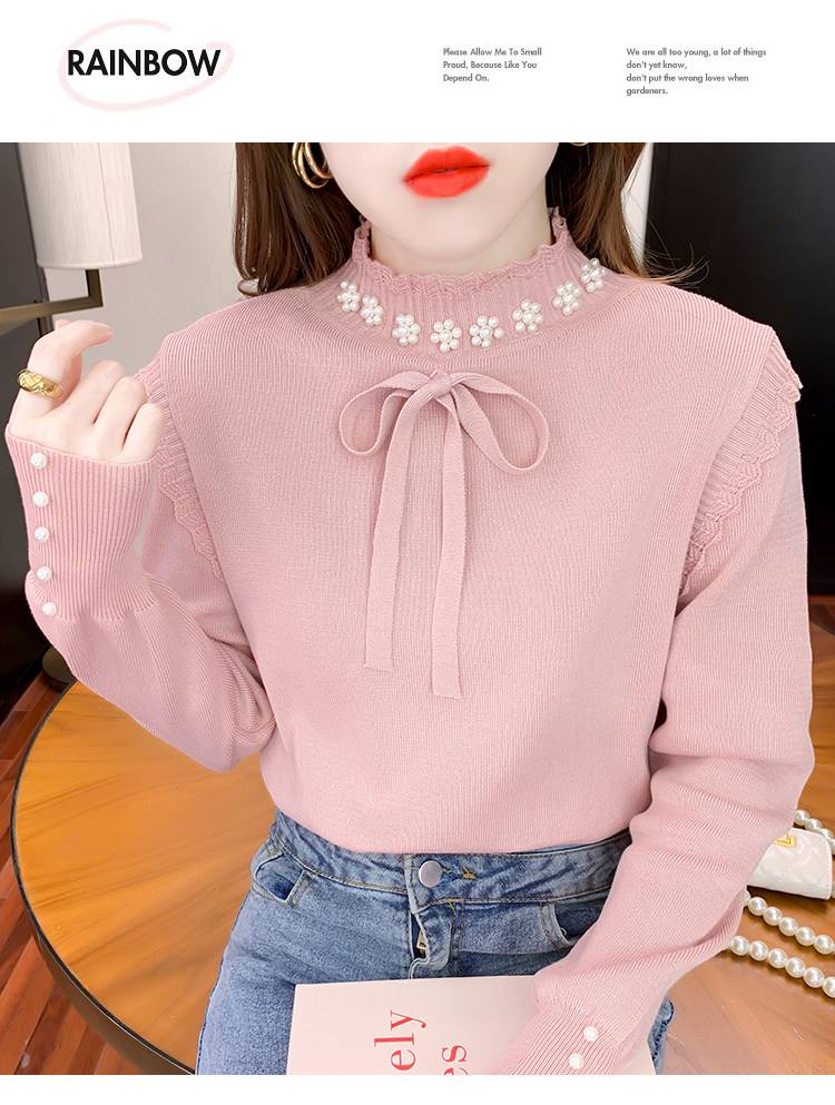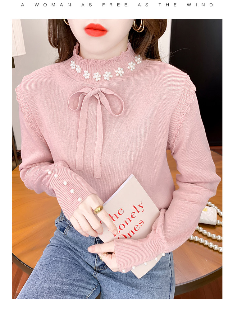 RM28368#百搭新款修身打底泡珠系蝴蝶结假两件长袖打底上衣