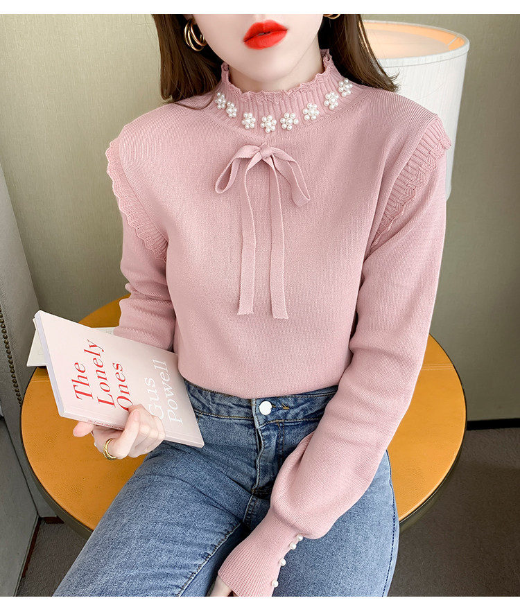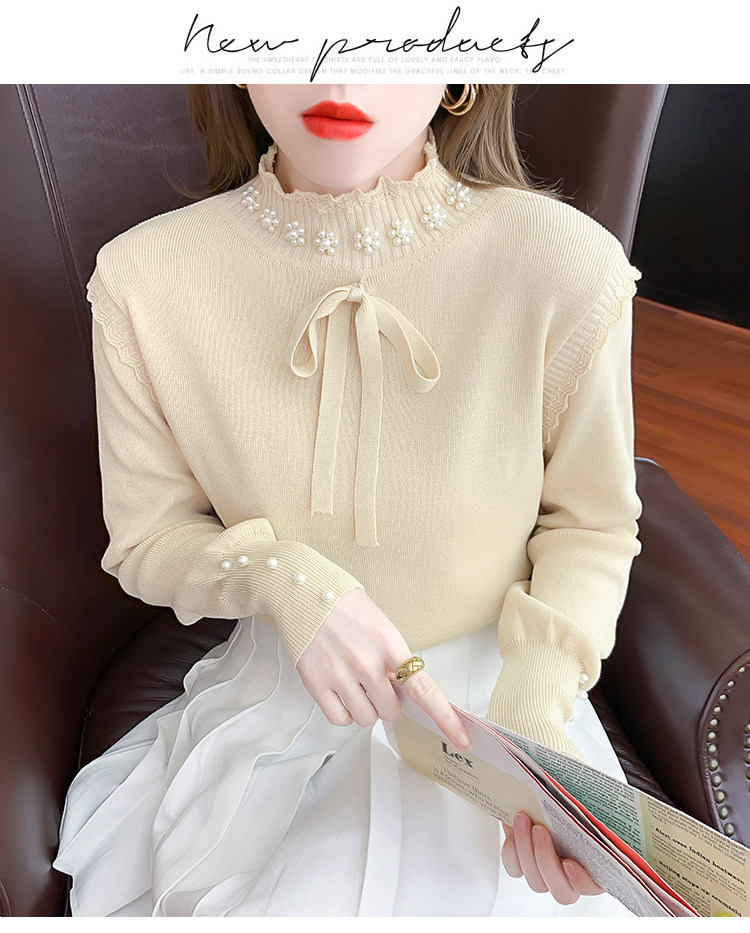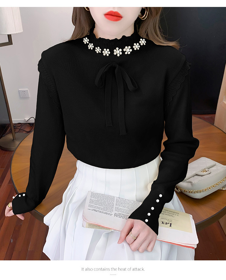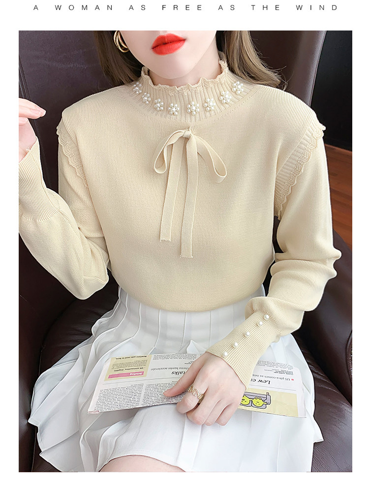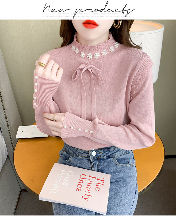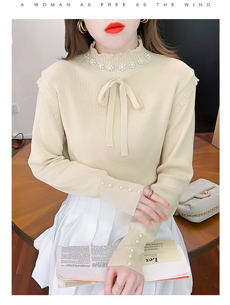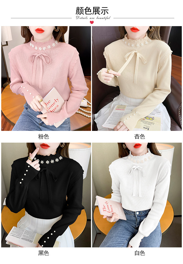 RM28368#百搭新款修身打底泡珠系蝴蝶结假两件长袖打底上衣
