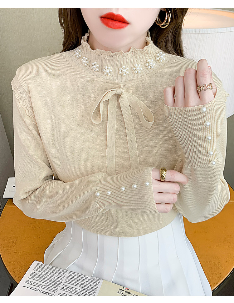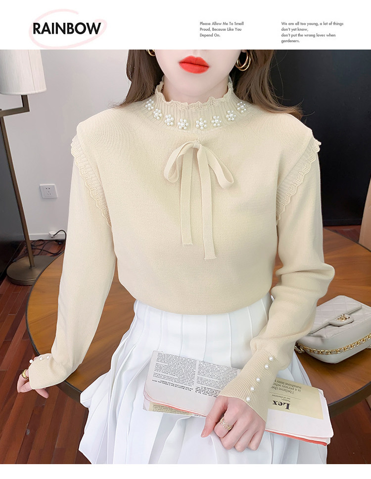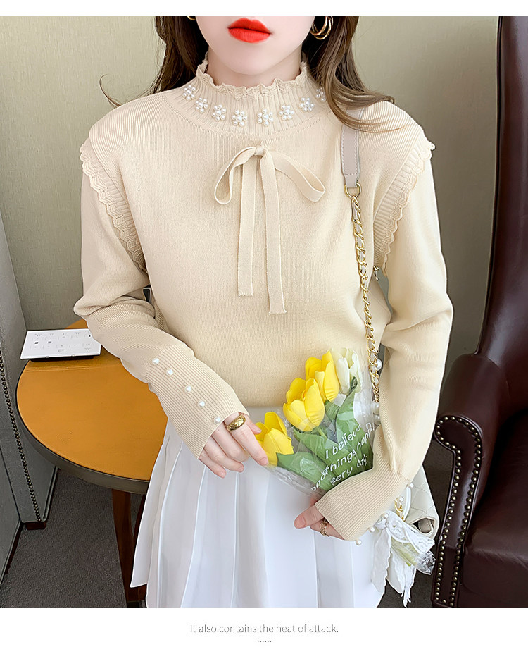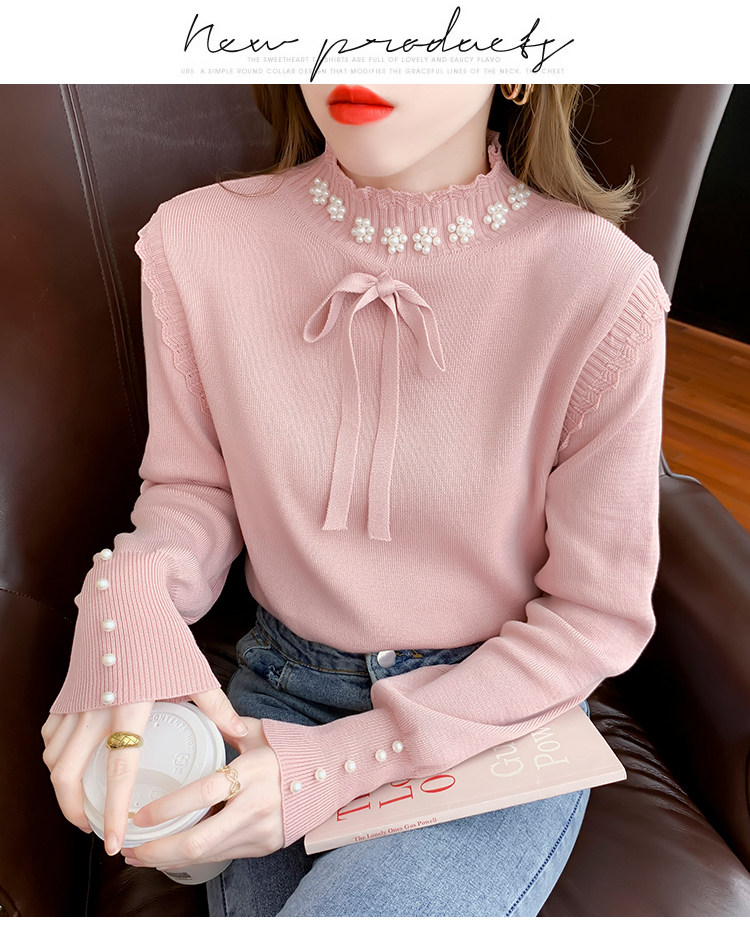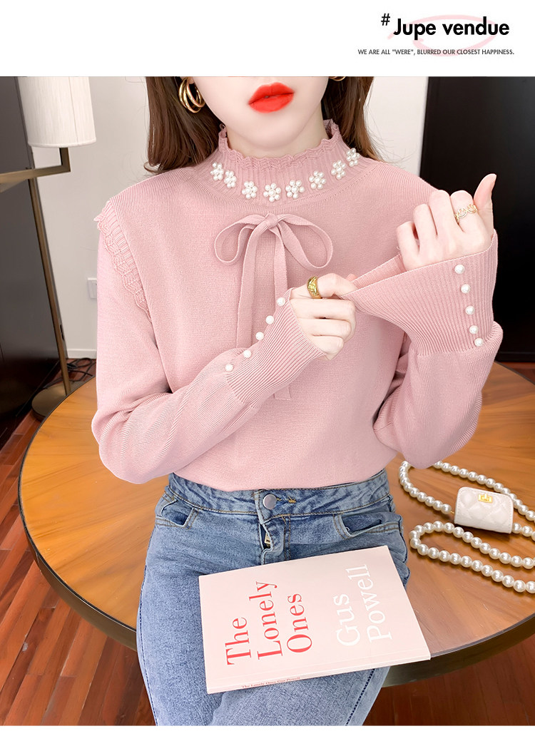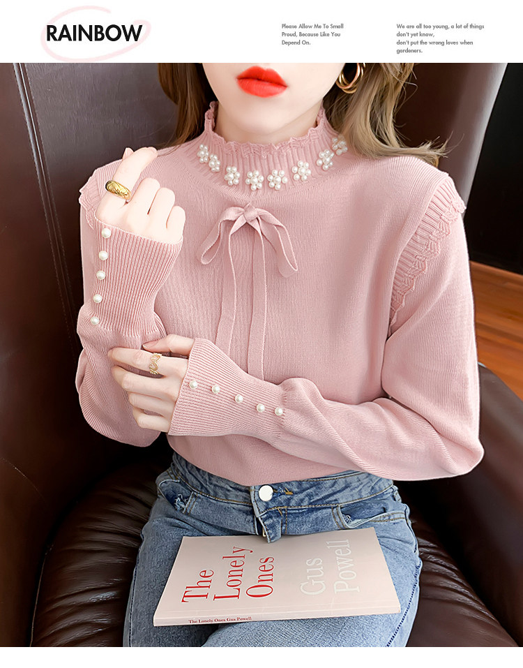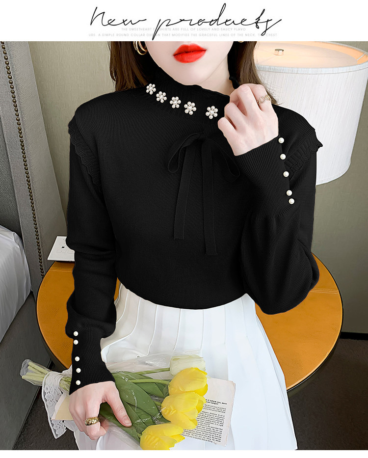 RM28368#百搭新款修身打底泡珠系蝴蝶结假两件长袖打底上衣