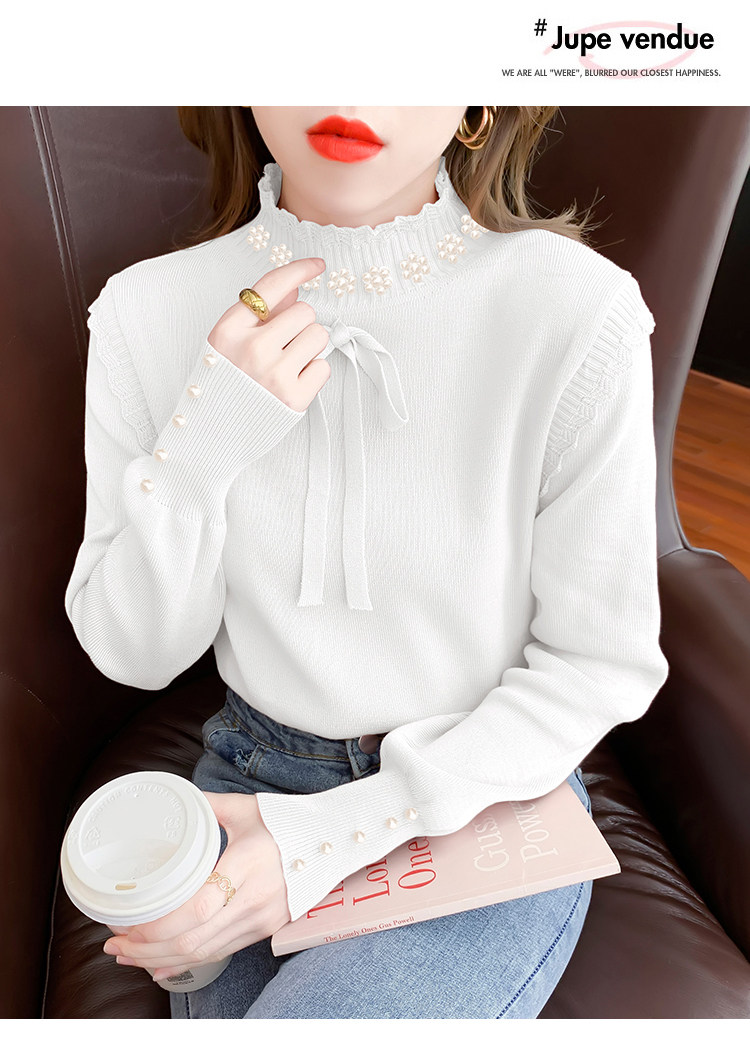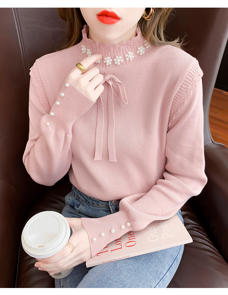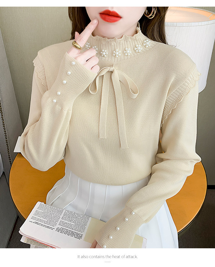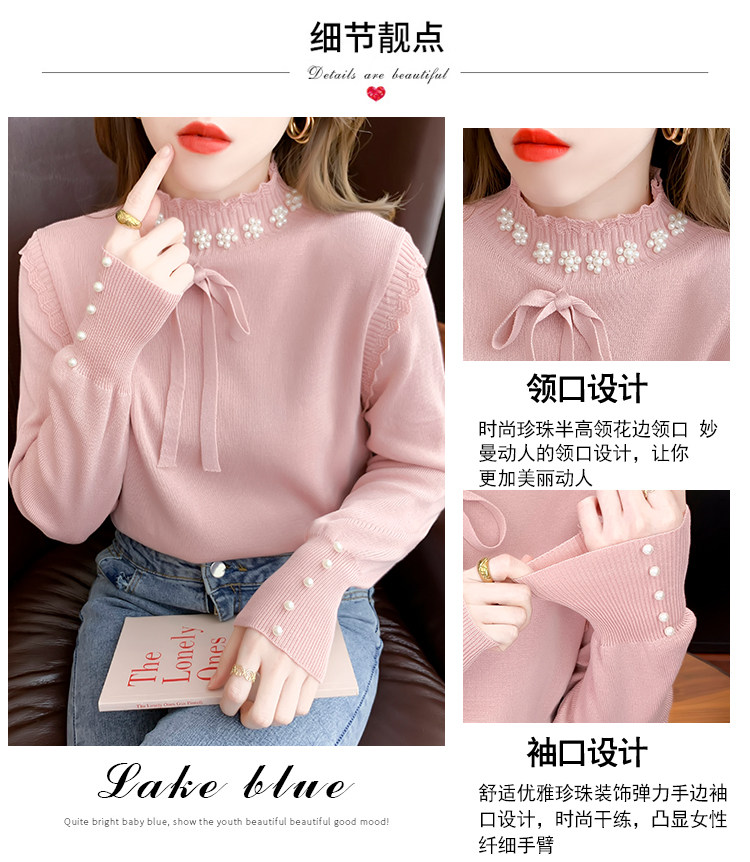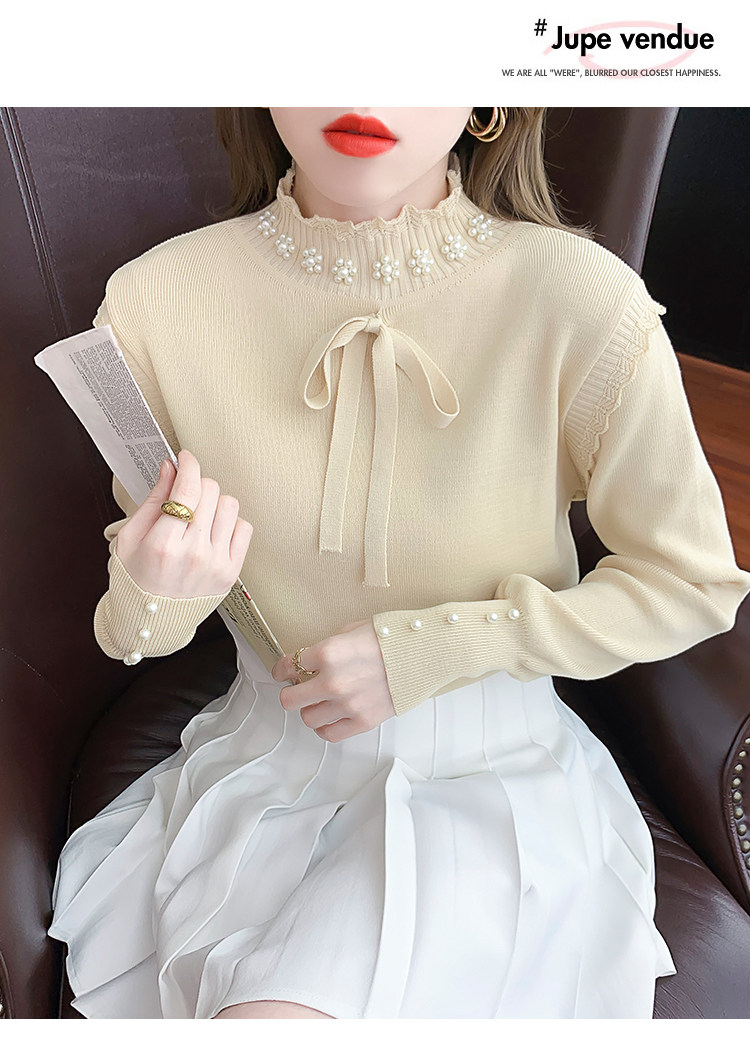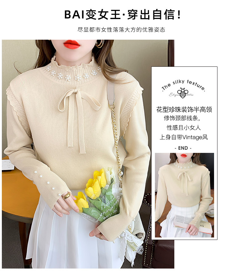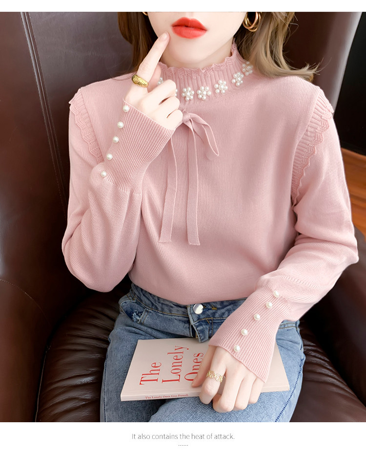 RM28368#百搭新款修身打底泡珠系蝴蝶结假两件长袖打底上衣
