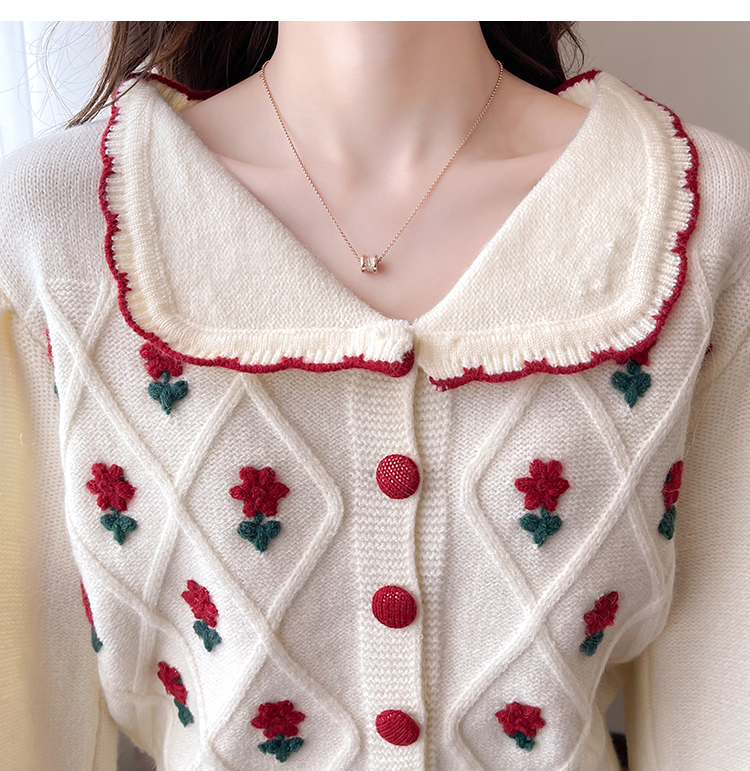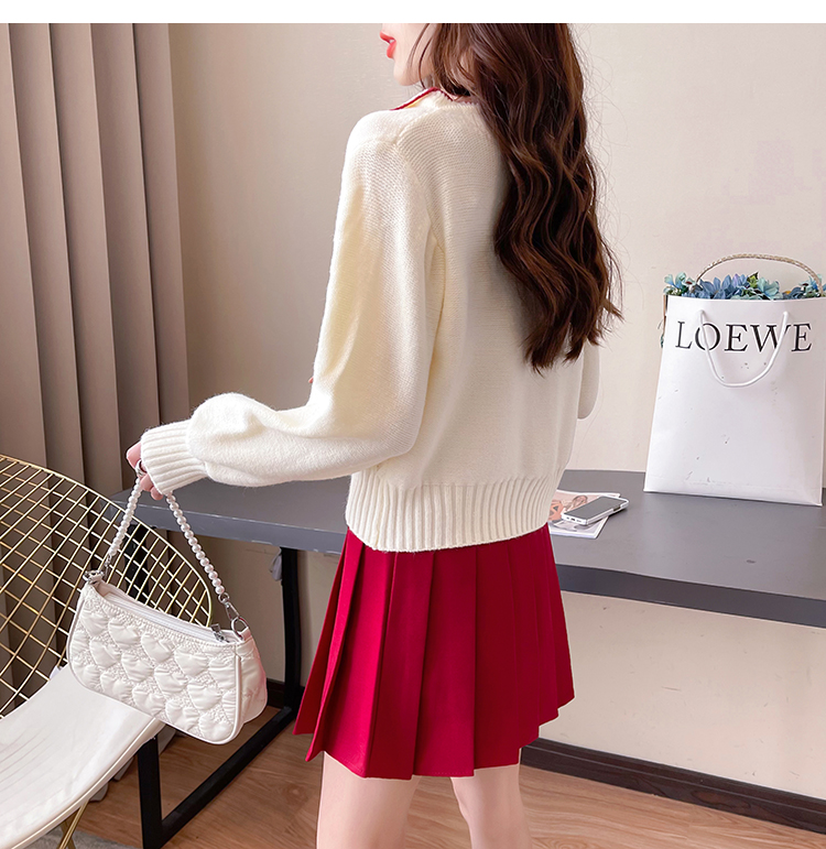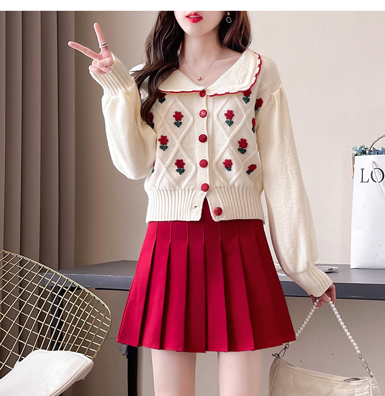 RM28387#日系复古法式温柔风娃娃领刺绣毛衣百褶半身裙两件套