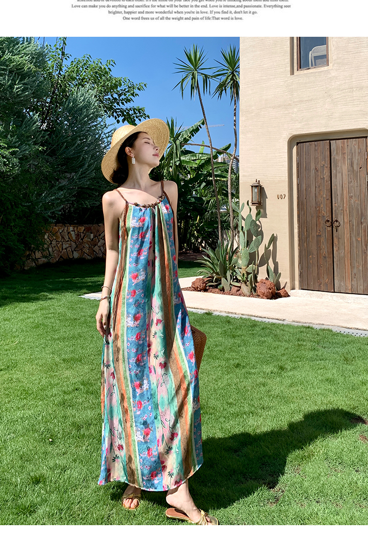 RM28419#清冷缪斯 新中式碎花中长款吊带连衣裙女复古度假长裙