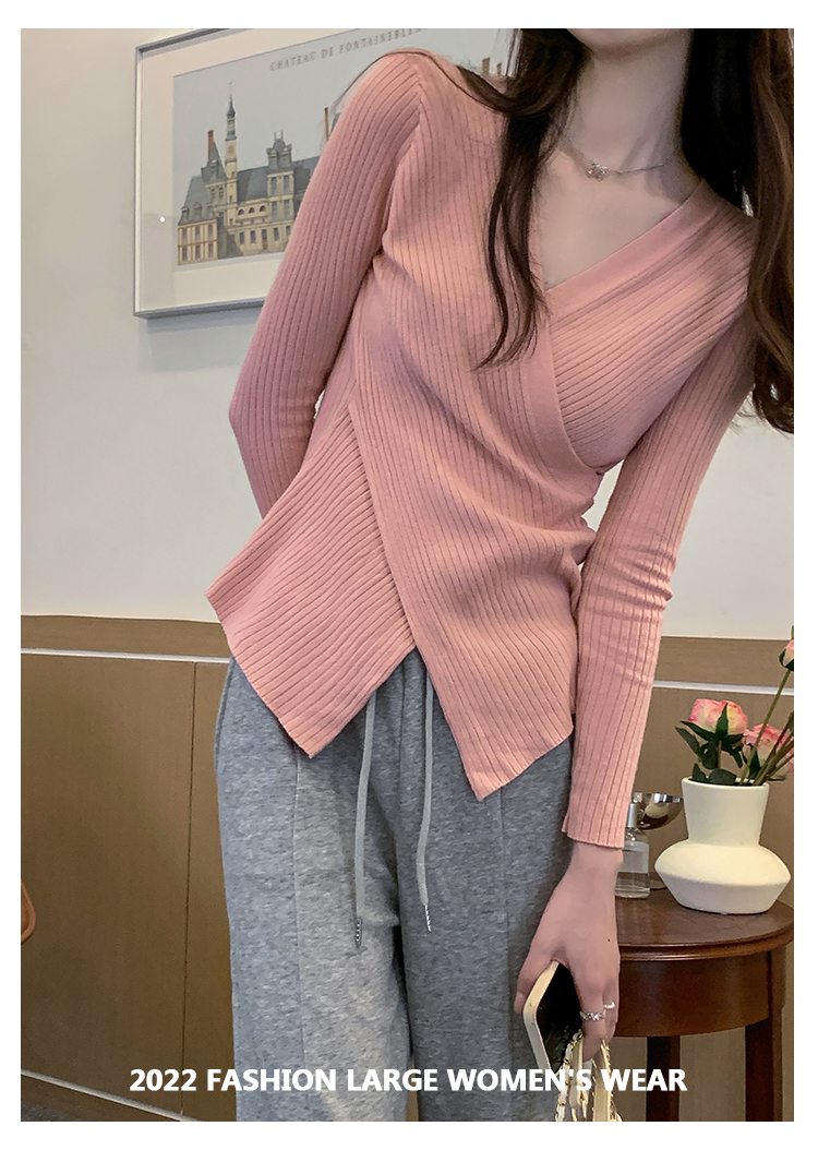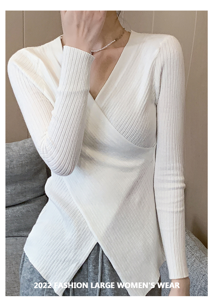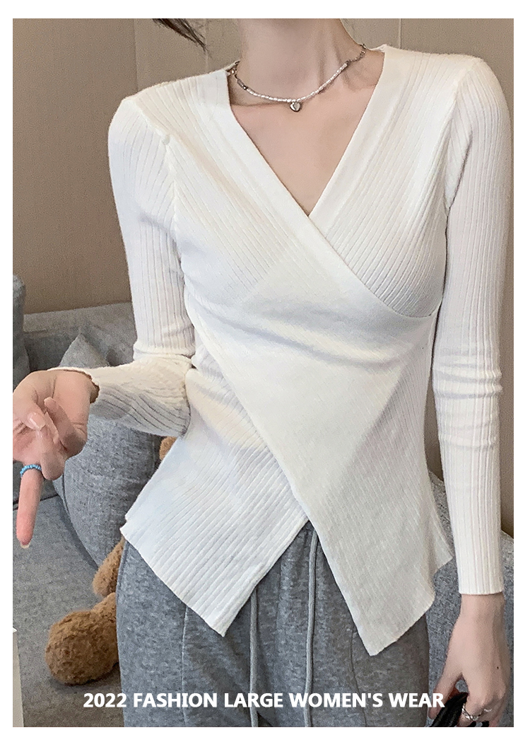 RM28431#大码女装包芯纱毛衣洋气交叉不规则长袖打底毛衣