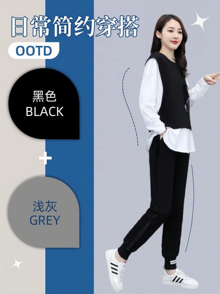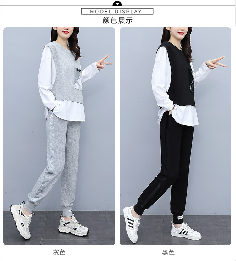 RM28444#大码女装休闲时尚套装2023春秋新款长袖圆领卫衣裤宽松显瘦两件套