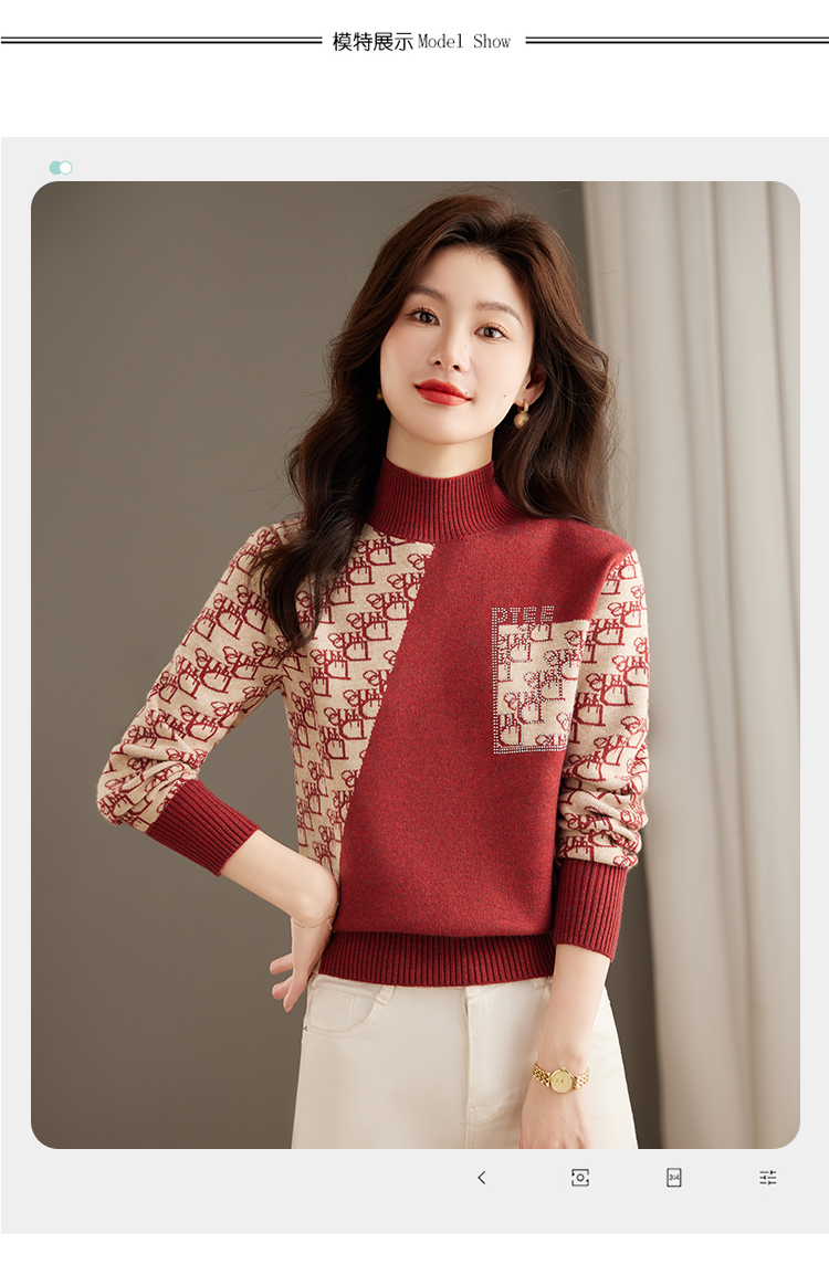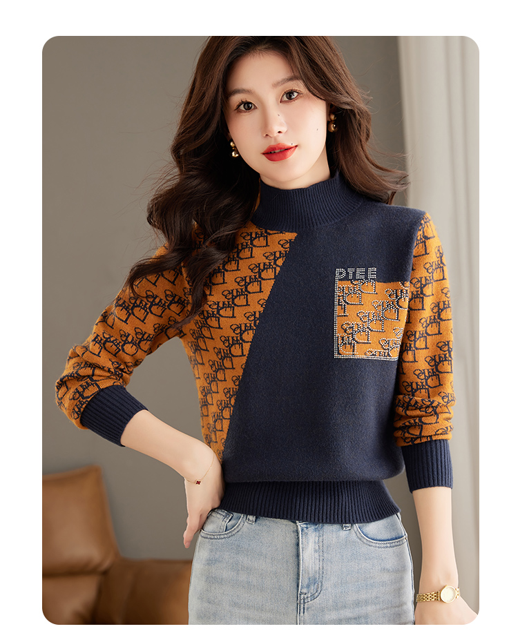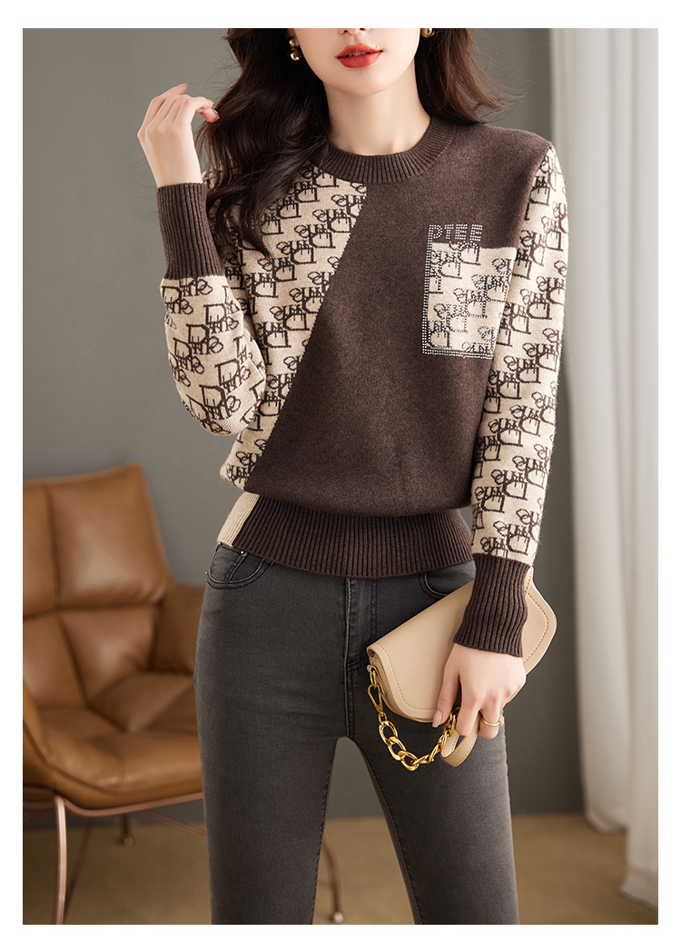 RM28475#镶钻毛衣修身显瘦针织衫潮