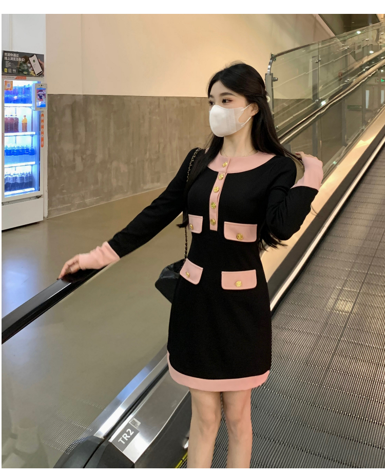 RM26688#新款格子拼接时尚复古格子简约假两件拼接连衣裙