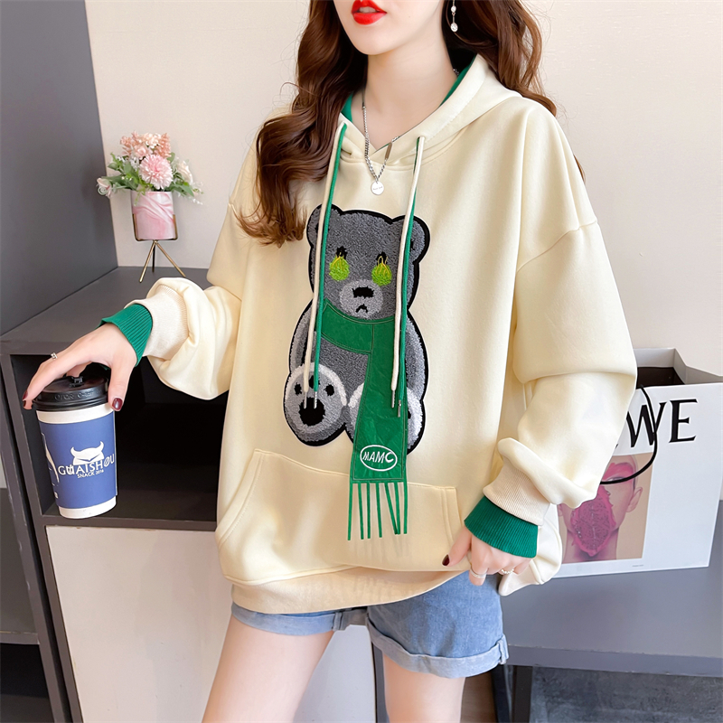 RM28494#交织布 双层帽 加绒加厚学院风卫衣女