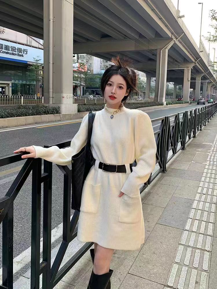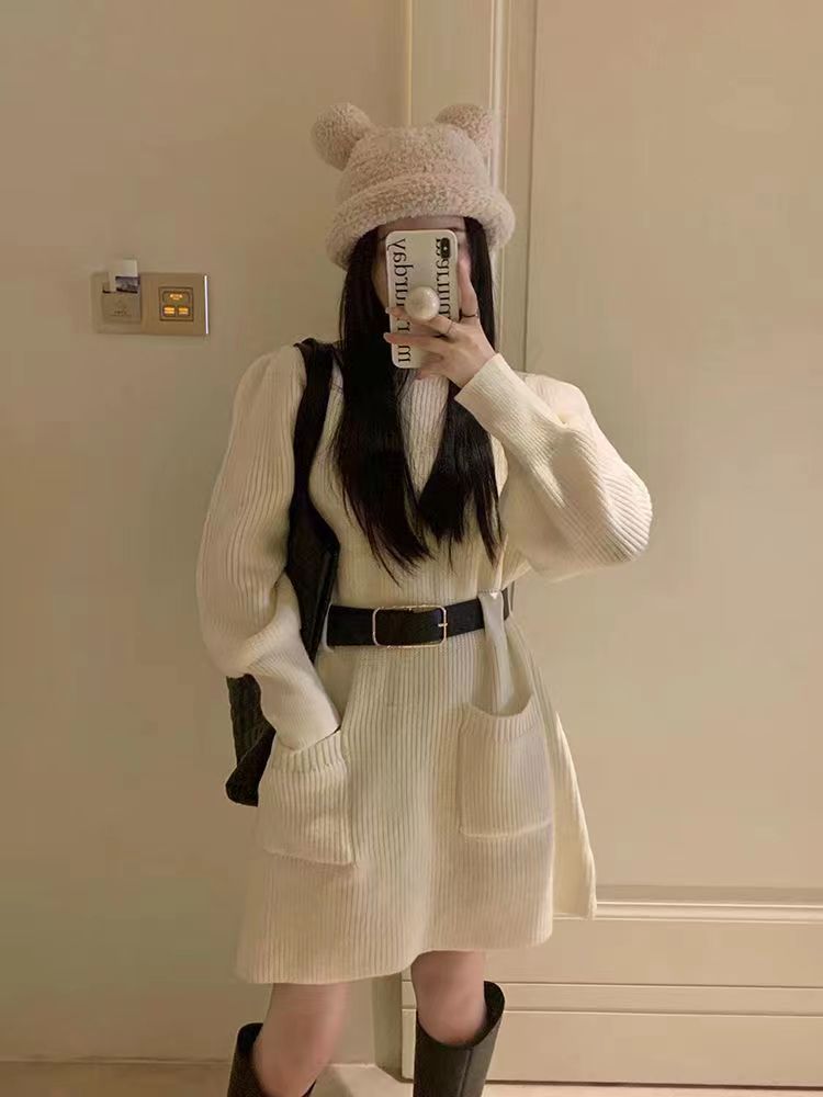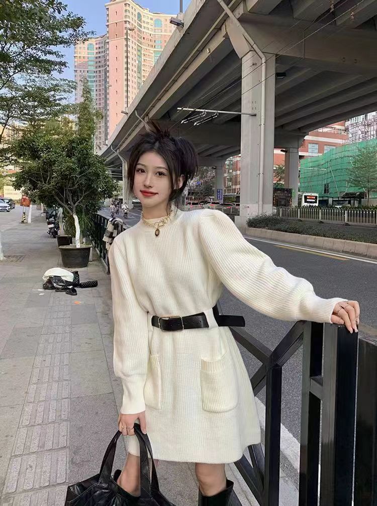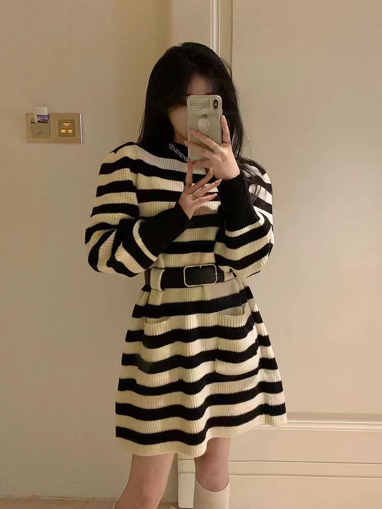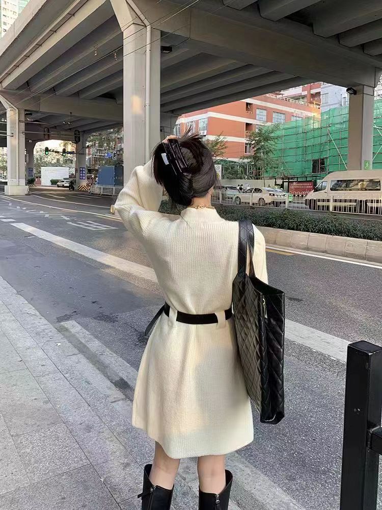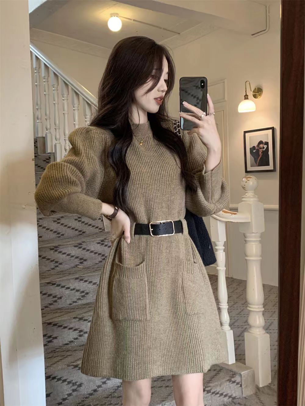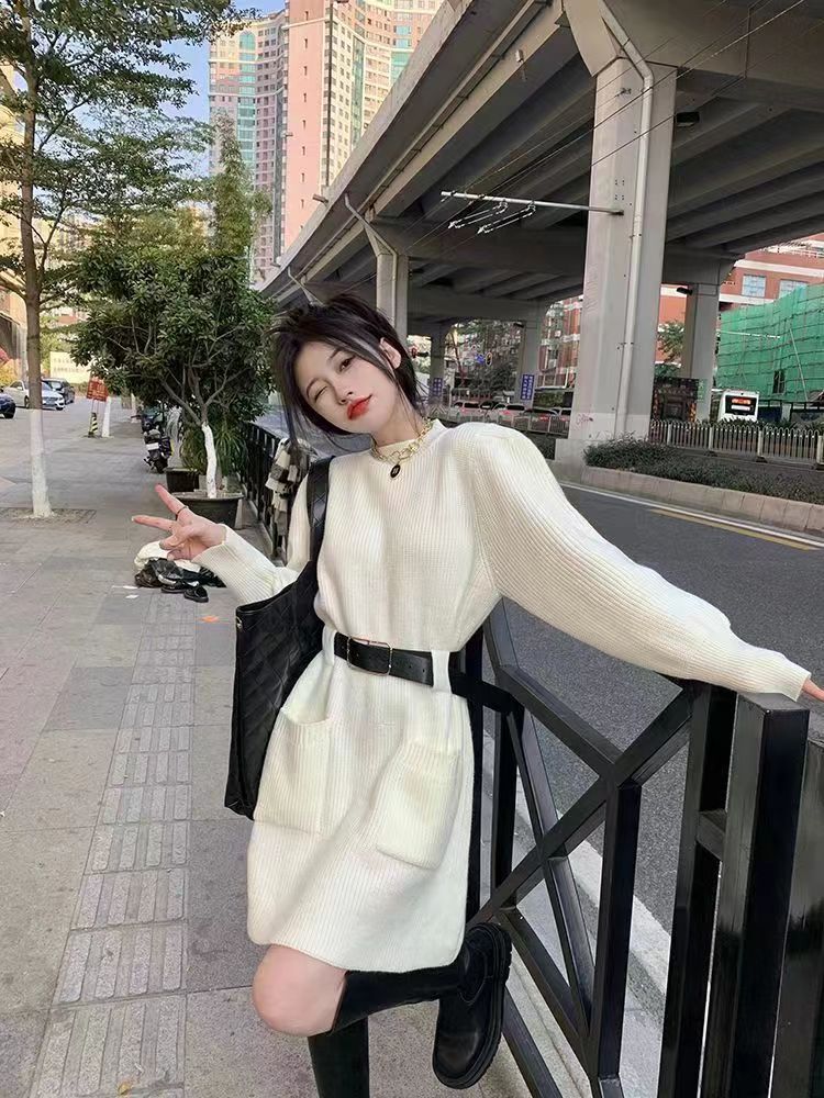RM28496#法式高级感小个子毛衣裙女秋冬加厚内搭宽松长袖针织打底连衣裙子