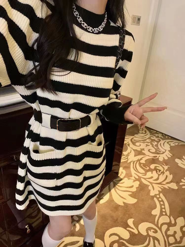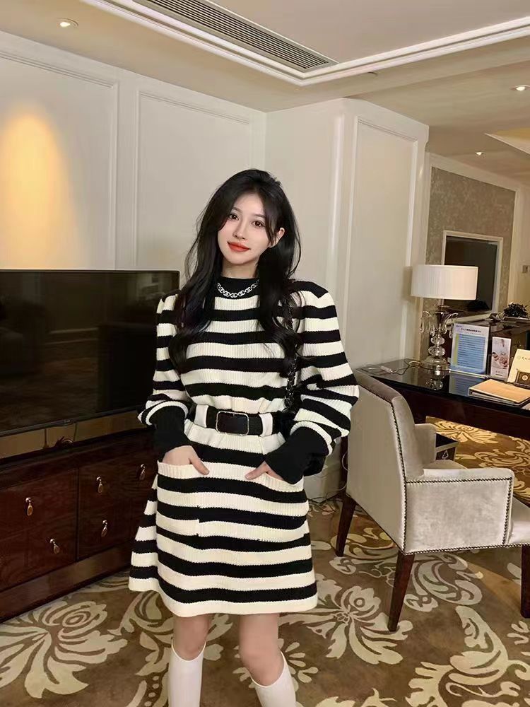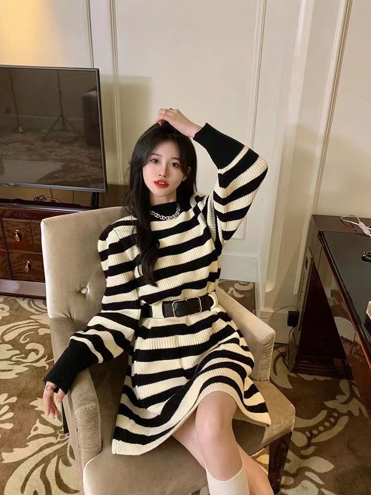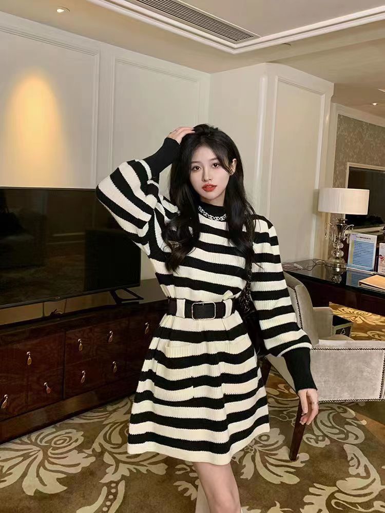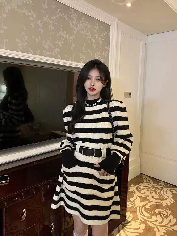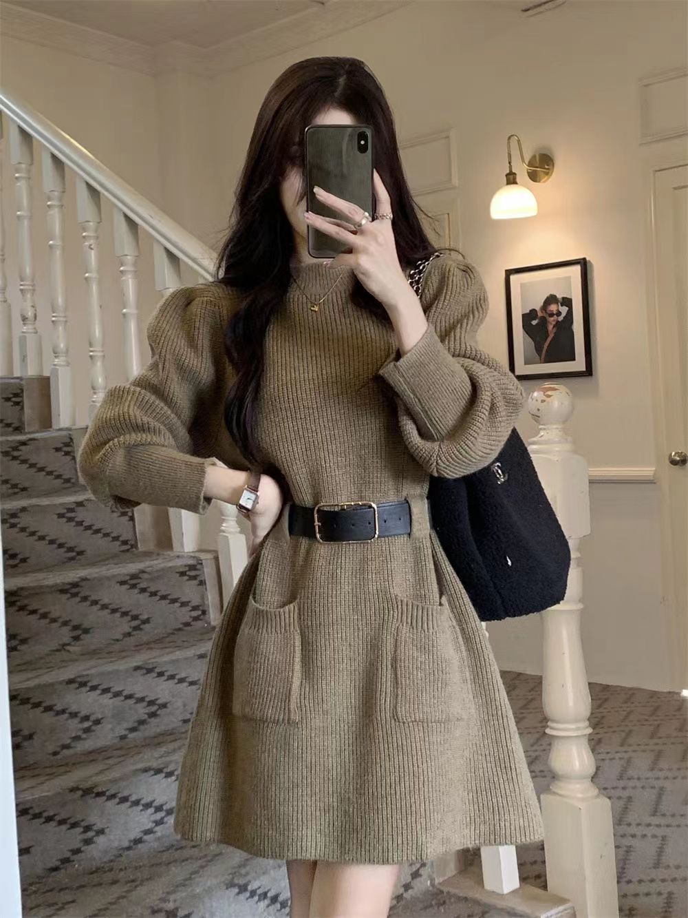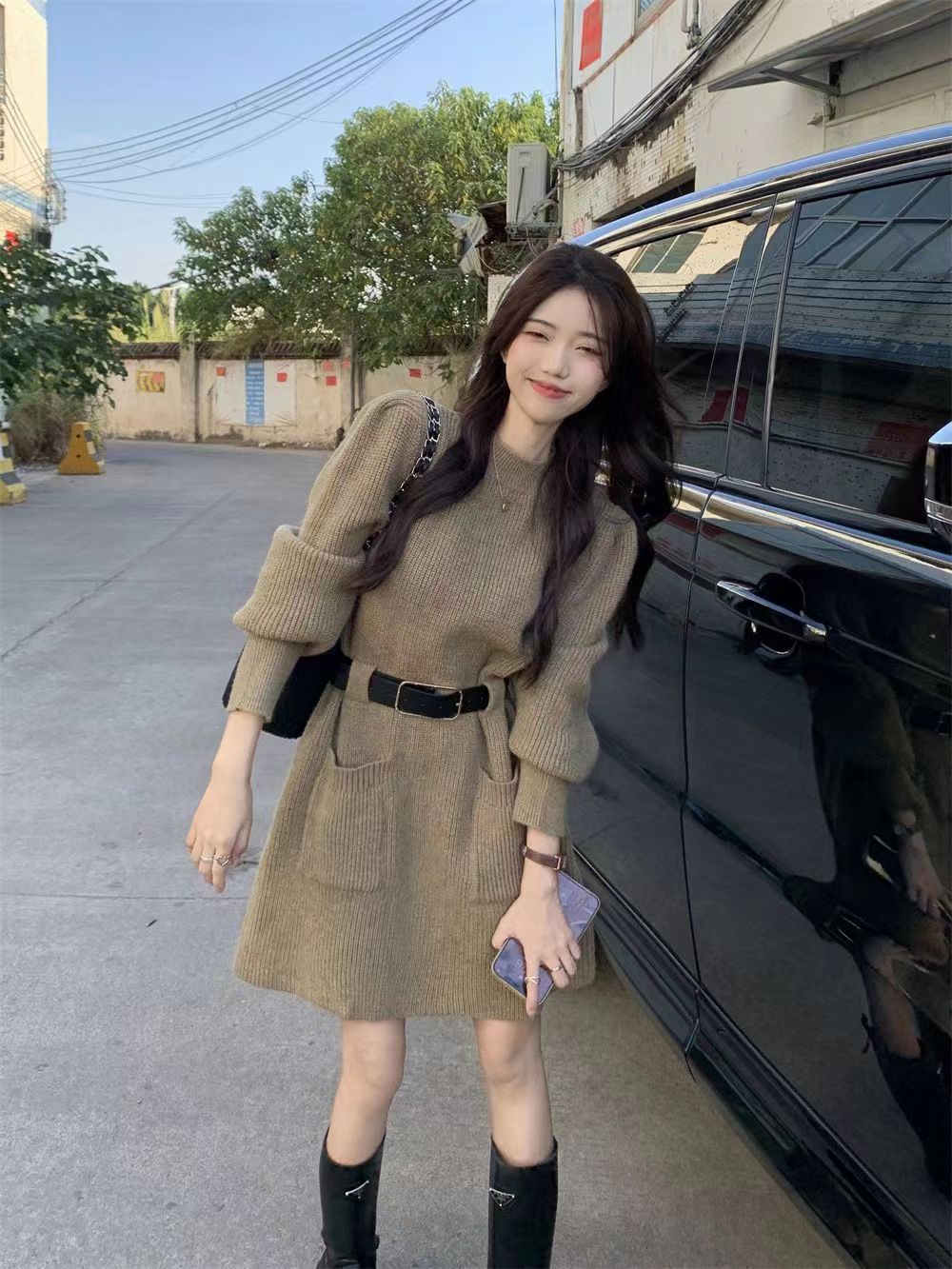 RM28496#法式高级感小个子毛衣裙女秋冬加厚内搭宽松长袖针织打底连衣裙子