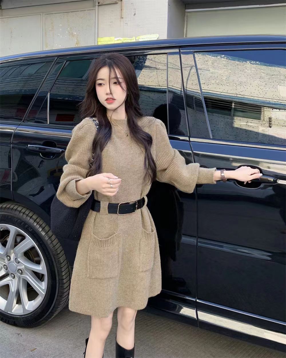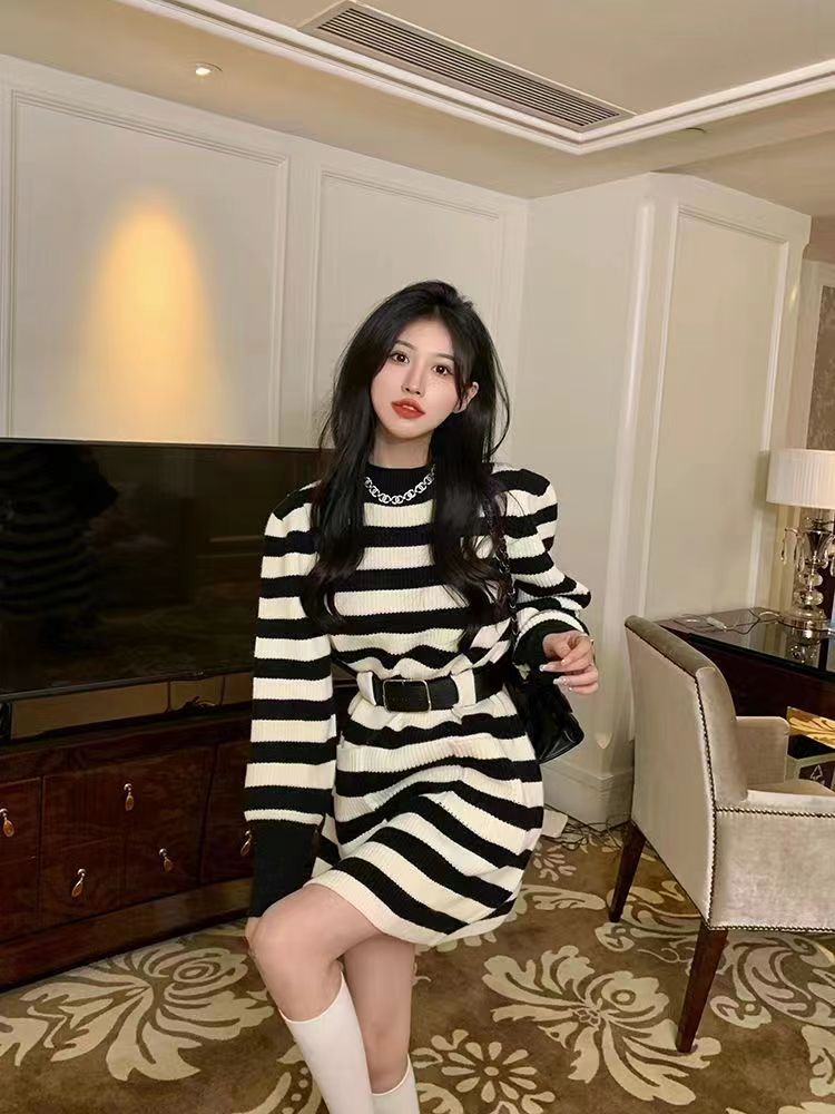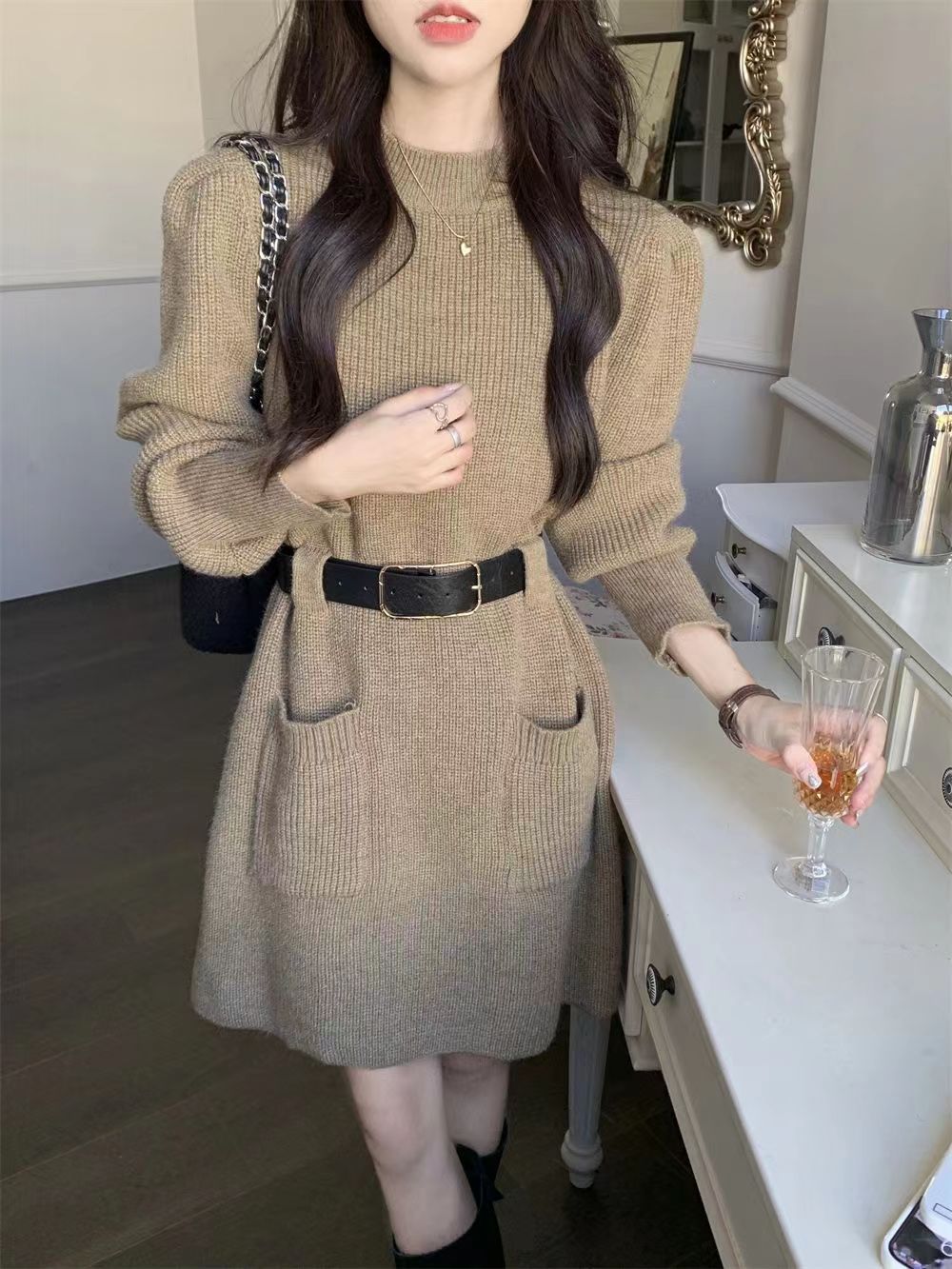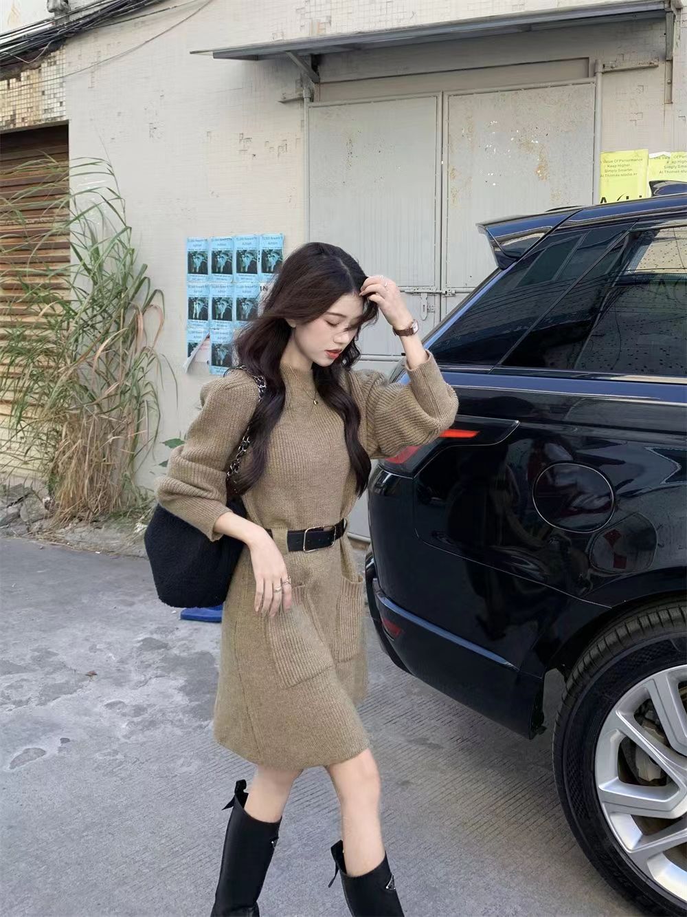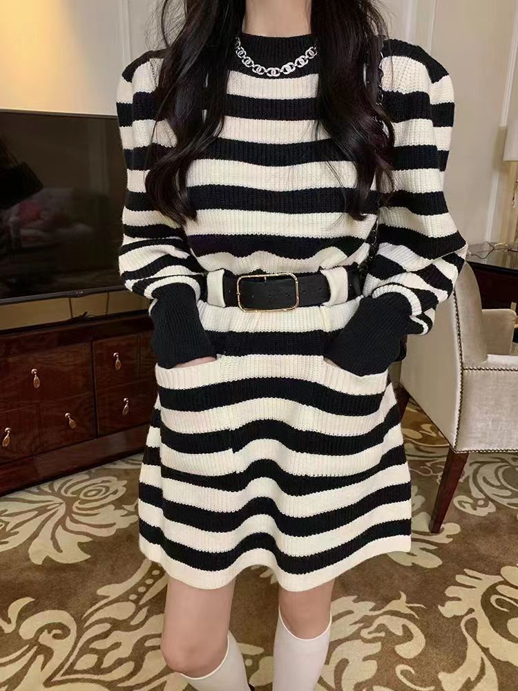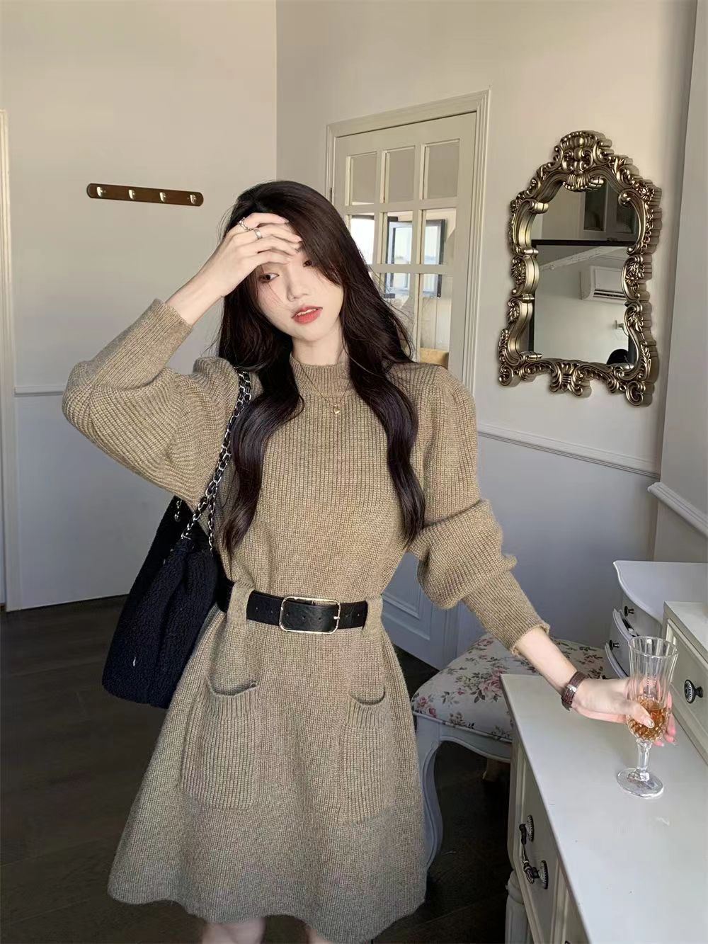 RM28496#法式高级感小个子毛衣裙女秋冬加厚内搭宽松长袖针织打底连衣裙子