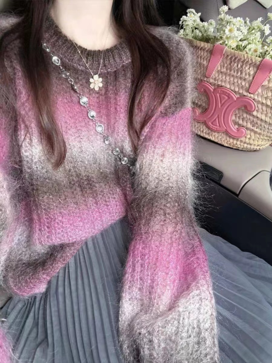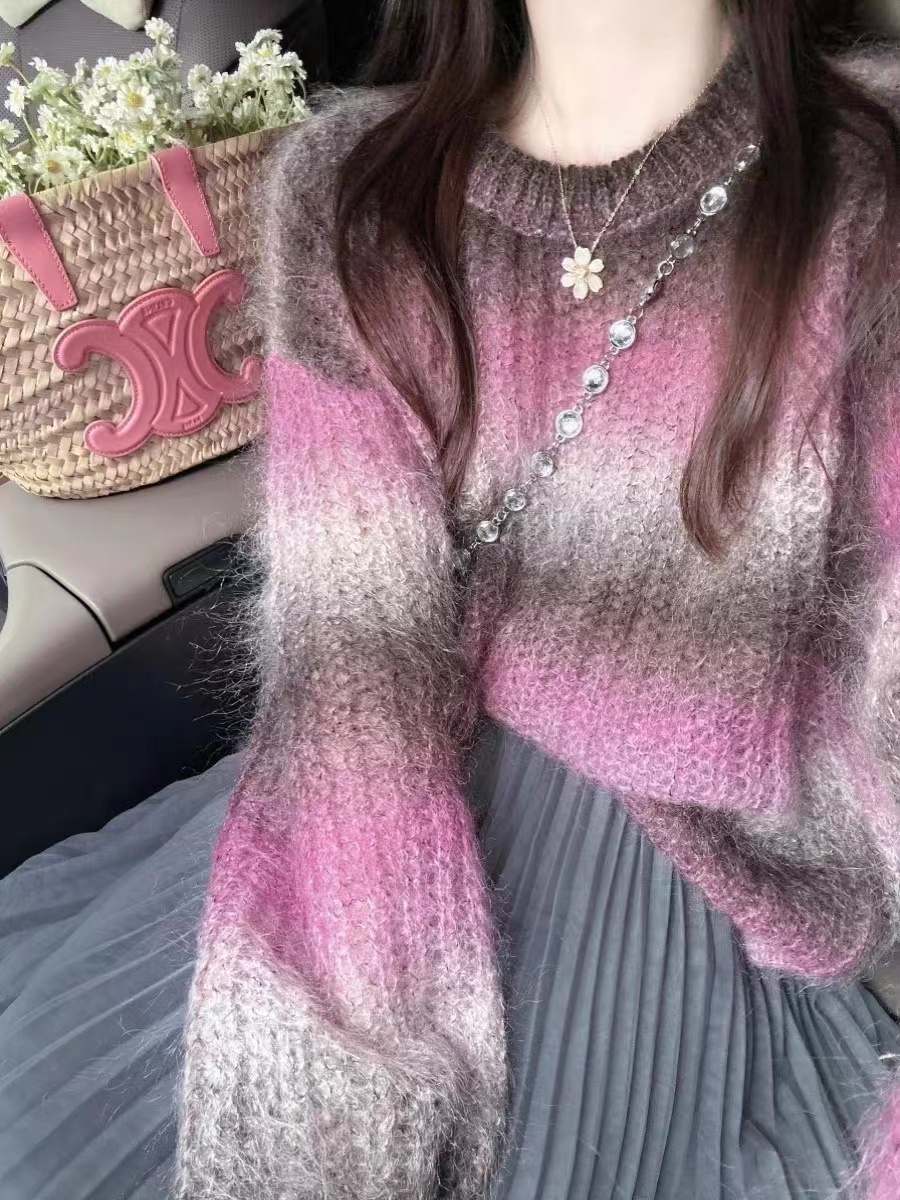 RM28501#温柔风渐变条纹法式针织衫女2023秋冬新款软糯氛围感慵懒宽松毛衣