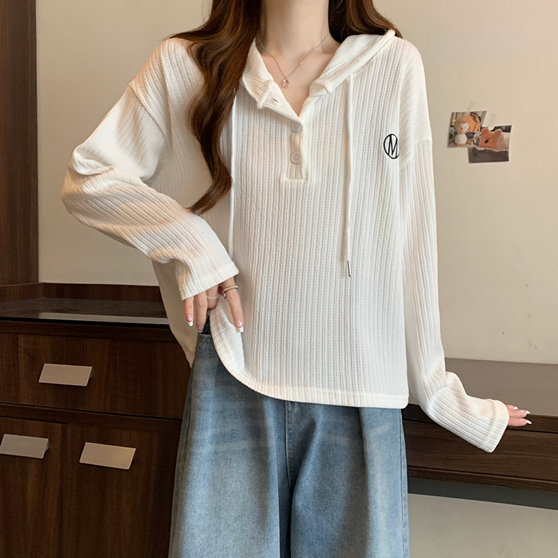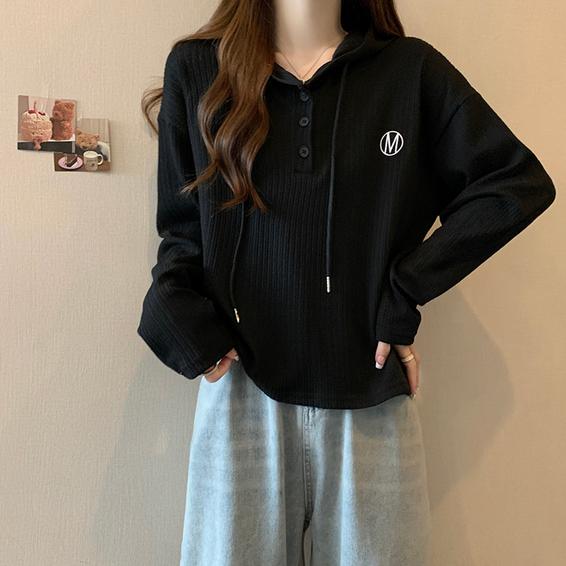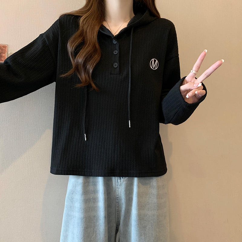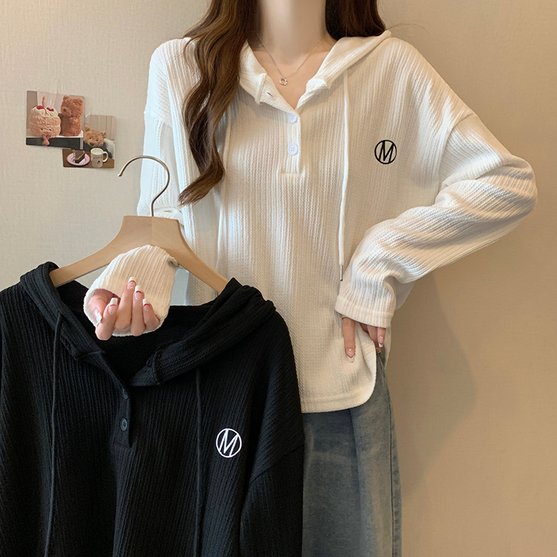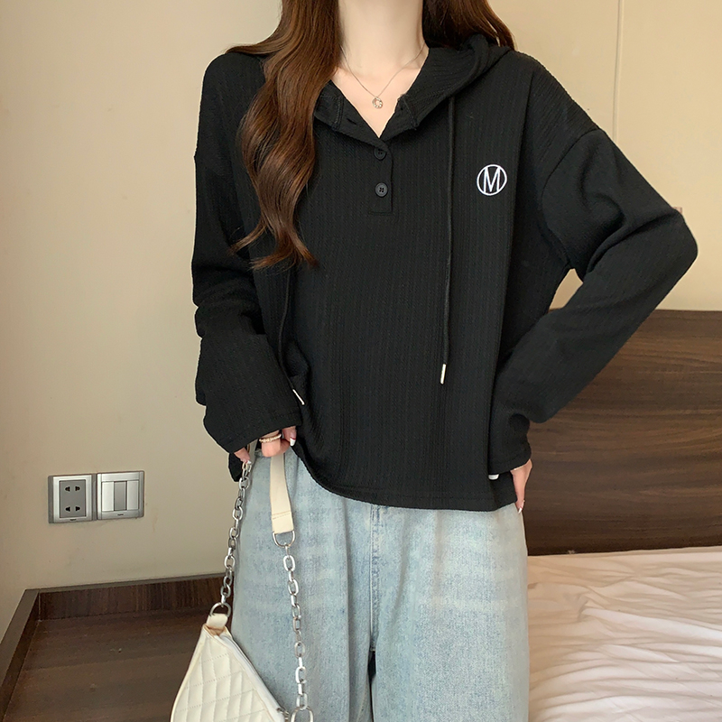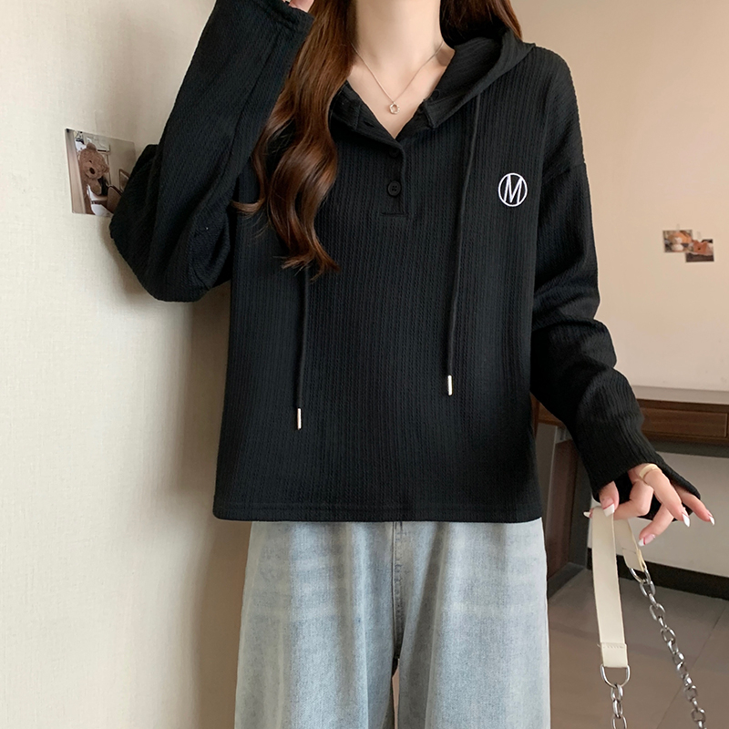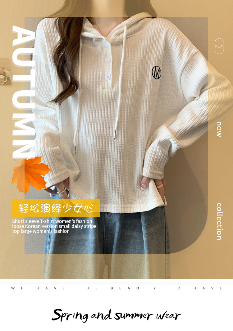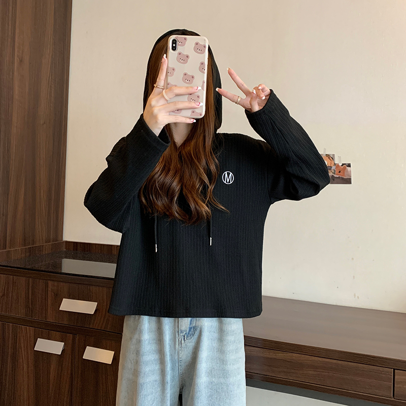 RM28515#短外套女春秋韩版短款修身刺绣连帽薄款长袖上衣