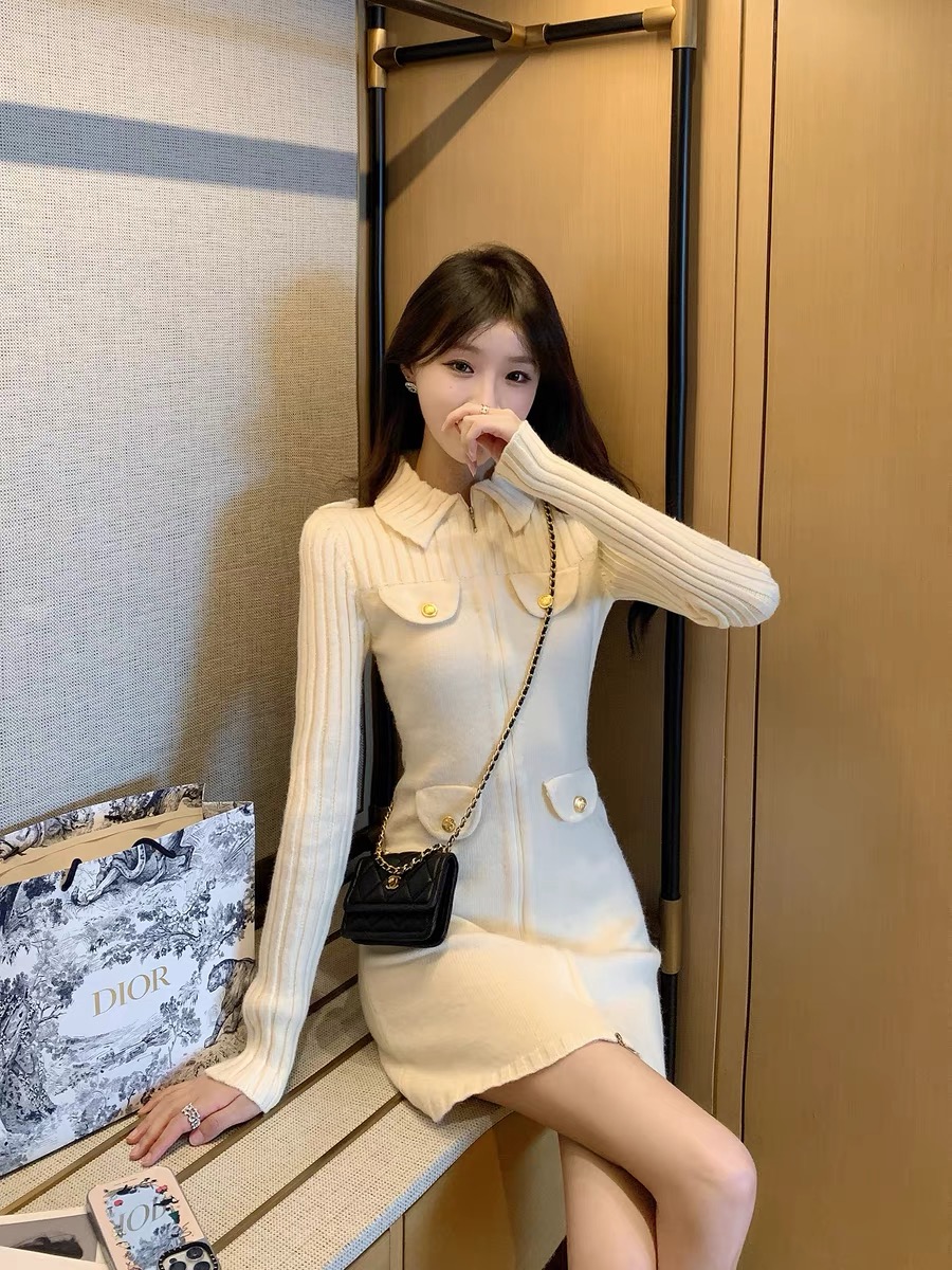 RM28536#小香风连衣裙秋装女款2023年新款高级感气质修身显瘦白色针织裙子