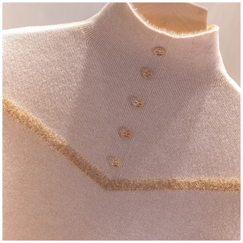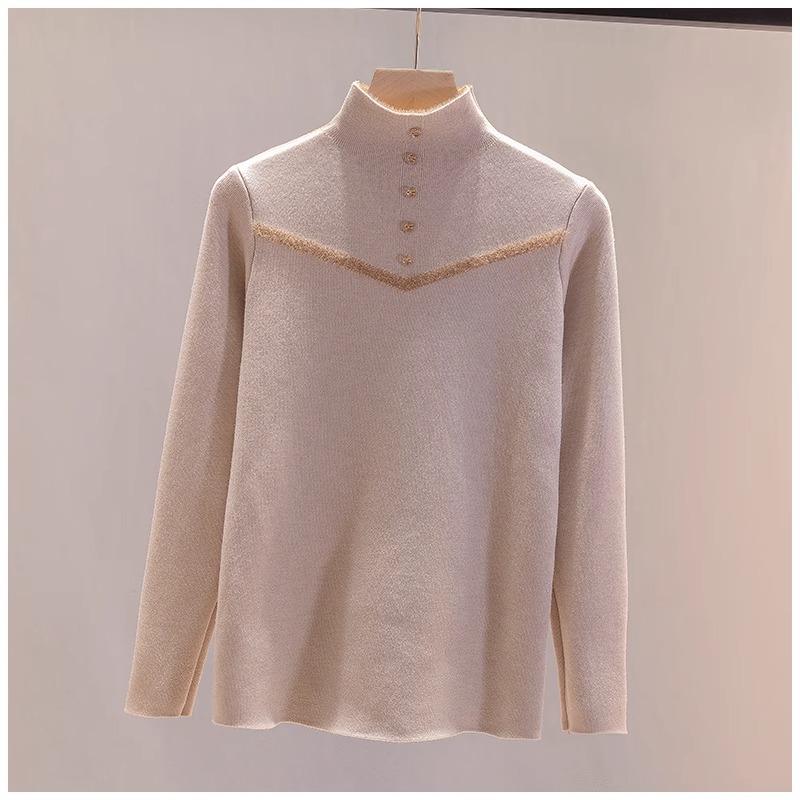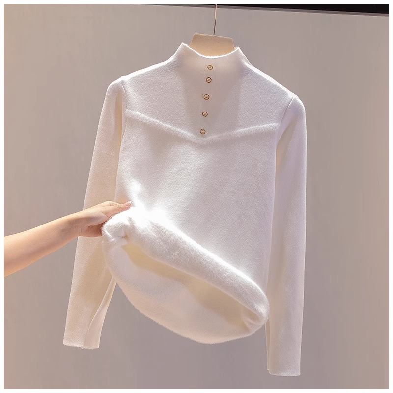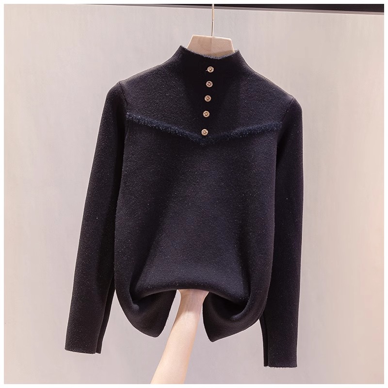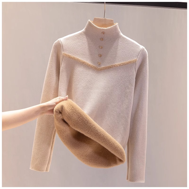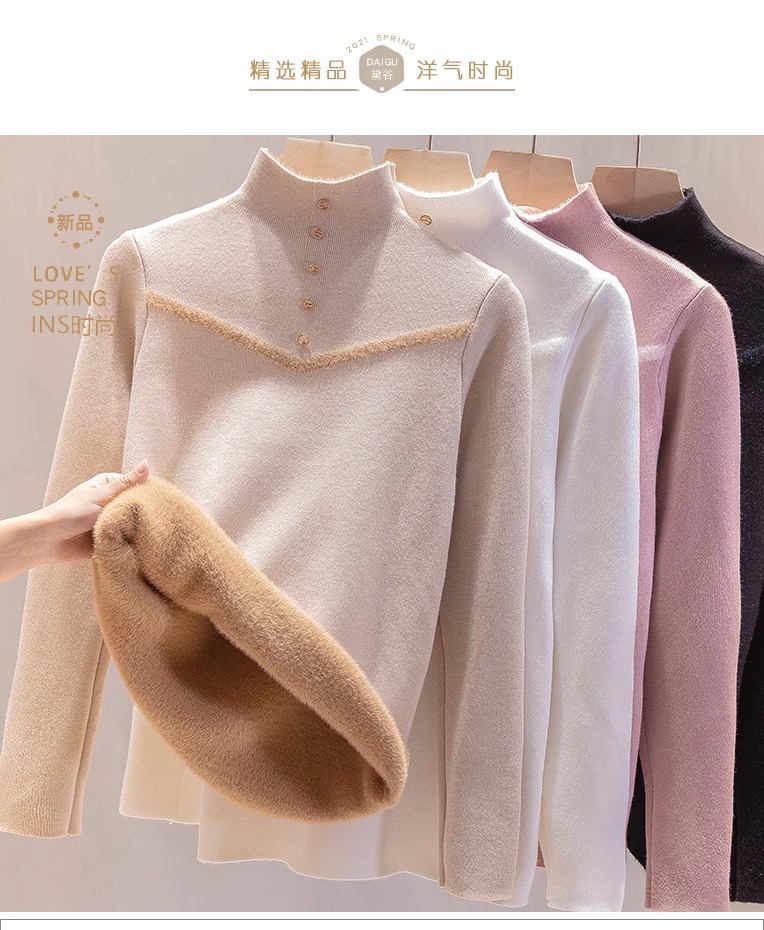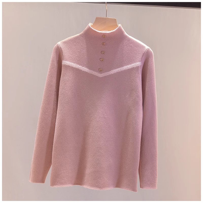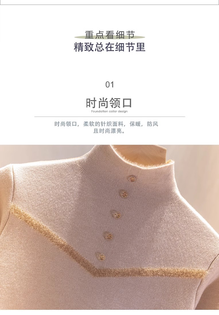 RM28562#一体绒毛衣女2023年新款加绒加厚半高领打底衫女秋冬针织内搭上衣
